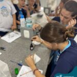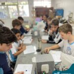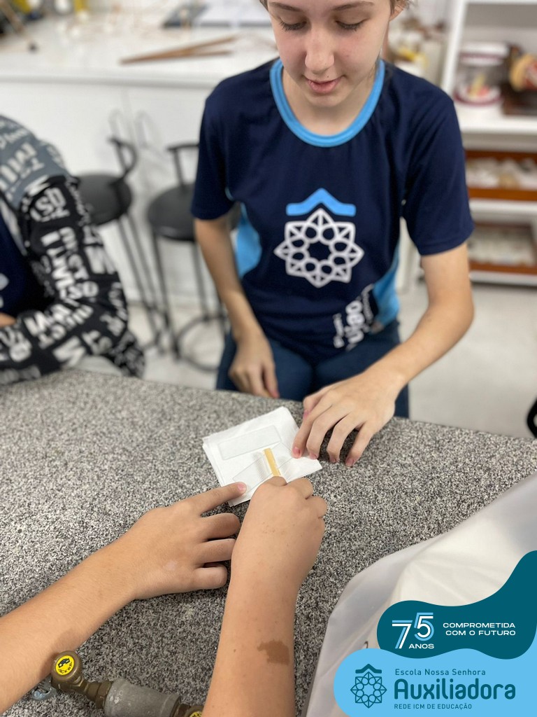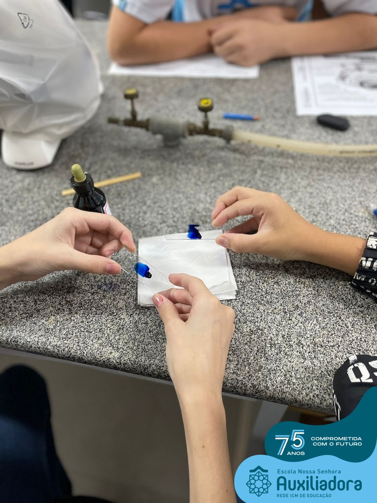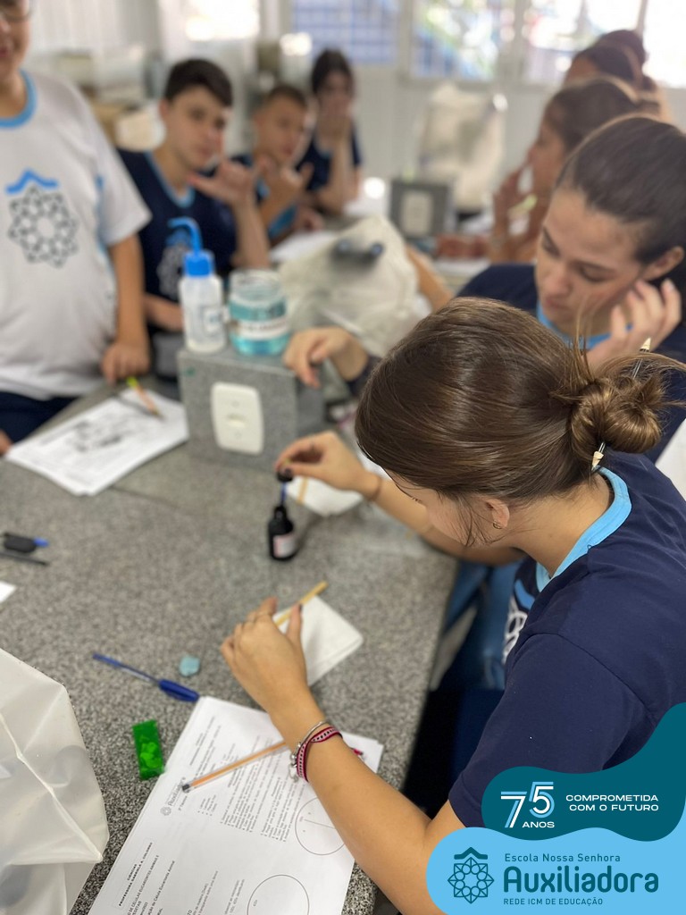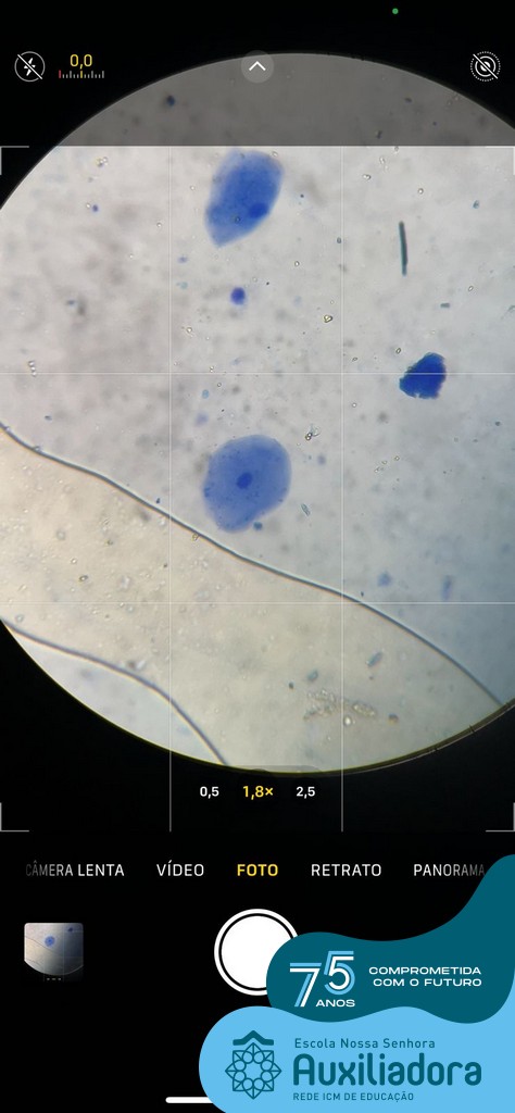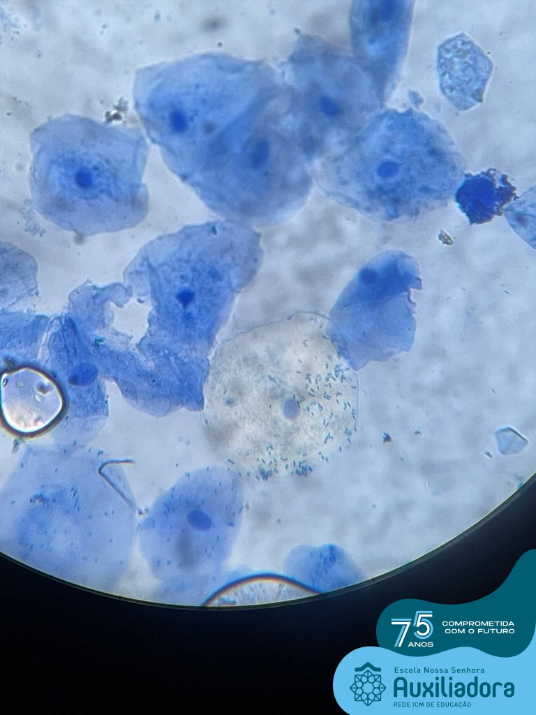A nossa ancestralidade em relação ao reino vegetal, são as células. Claro que, células vegetais são diferentes de células animais, no que tangem a presença de organelas que realizam a fotossíntese, isto é, plantas produzem seu próprio alimento, sendo autotróficas. Nós, animais, somos heterotróficos, buscamos a fonte de energia necessária na respiração e na alimentação. Com o objetivo de observar as diferenças de células eucariontes animais e vegetais, os 8ºs anos realizaram aula prática de visualização celular. Com a técnica de raspado da bochecha, coletamos células animais, e com uma película da cebola, visualizamos as células vegetais. Os vegetais possuem cloroplastos, responsáveis pela obtenção de energia do sol para a fotossíntese, além do formato retangular. Já as células animais, são mais arredondadas, e não possuem cloroplastos.