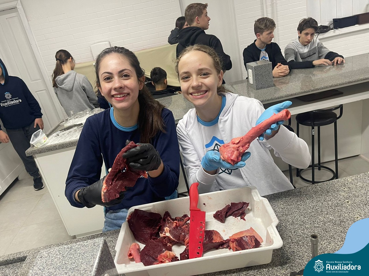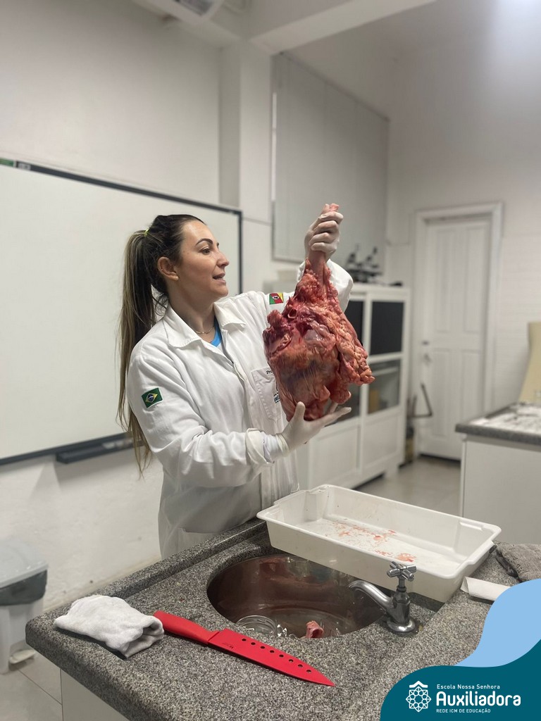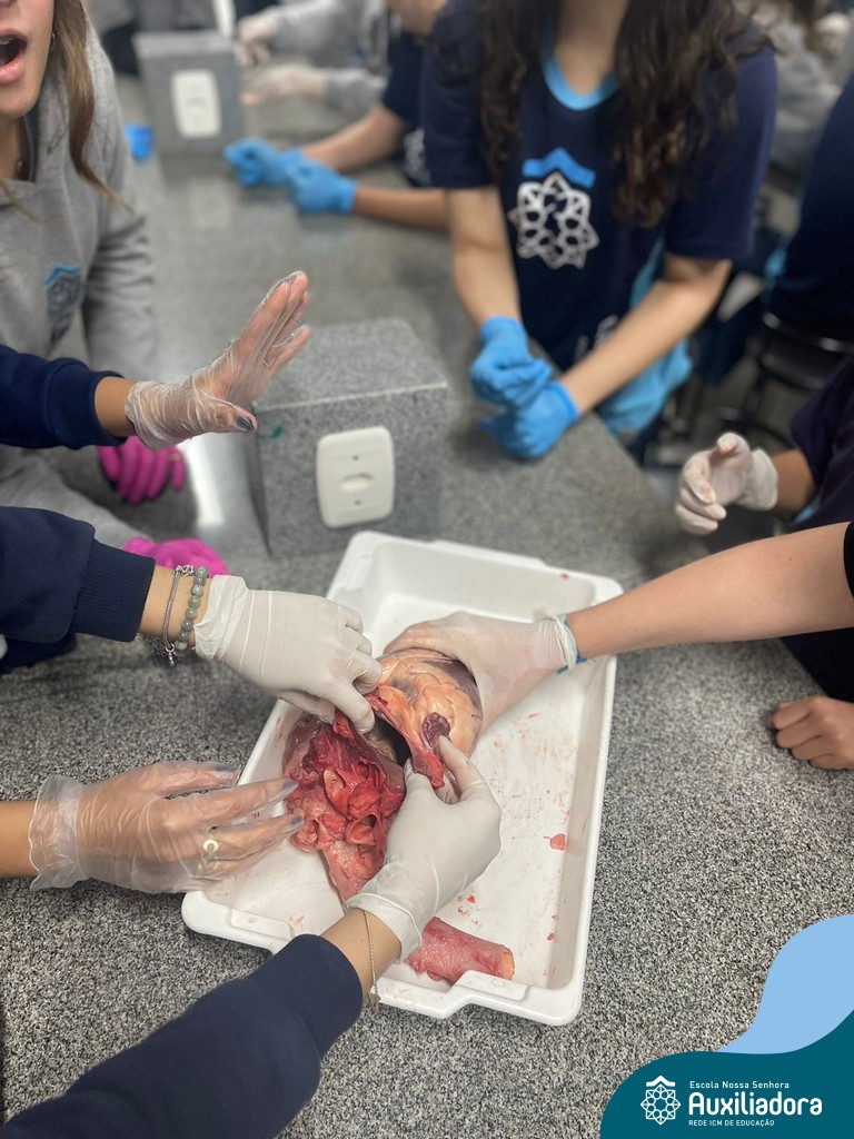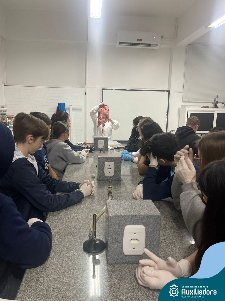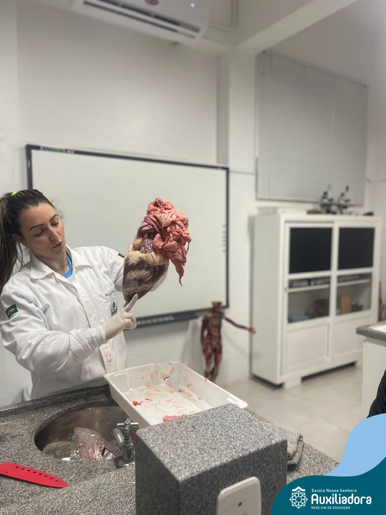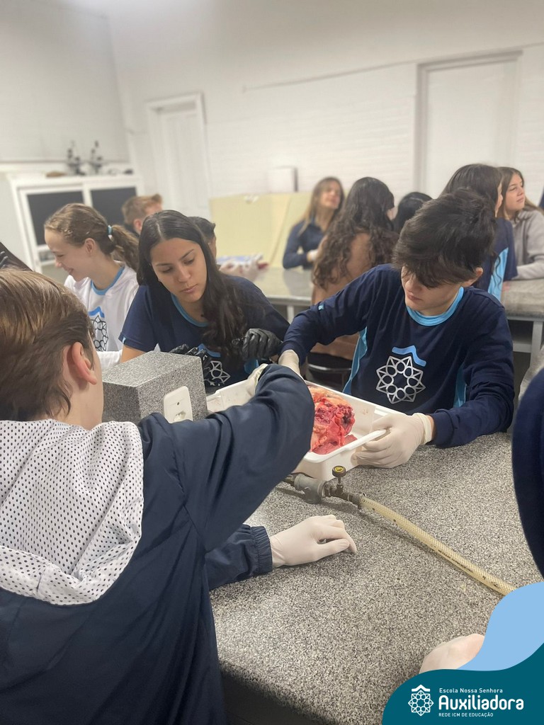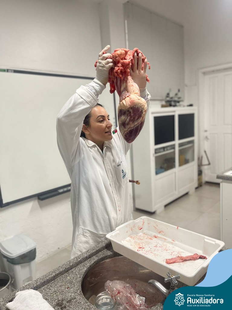 A aula prática é sempre uma experiência que desenvolve aptidões e conexões com a teoria estudada. Neste sentido, os 8ºs anos realizaram observação e manuseio de um coração bovino, que tem muitas semelhanças com o coração humano. Conhecendo a fisiologia e a organização da bomba que é responsável pela distribuição do sangue, em todo o ser vivo, puderam aprender que cada espécie tem suas particularidades. O coração deve ser cuidado! Bons alimentos, exercícios físicos, bom sono e também, exames médicos periódicos, são essenciais!