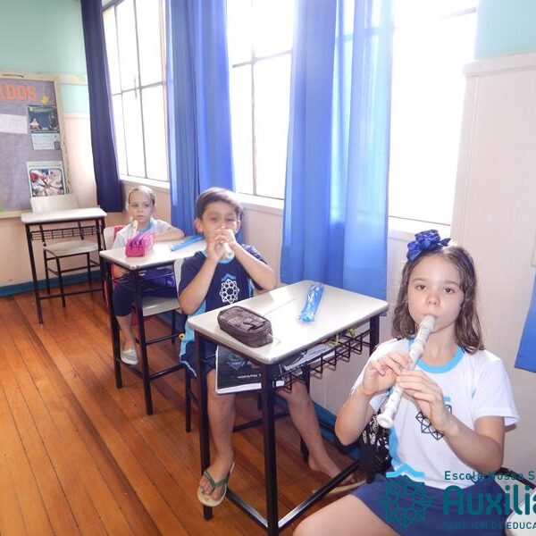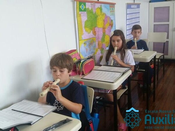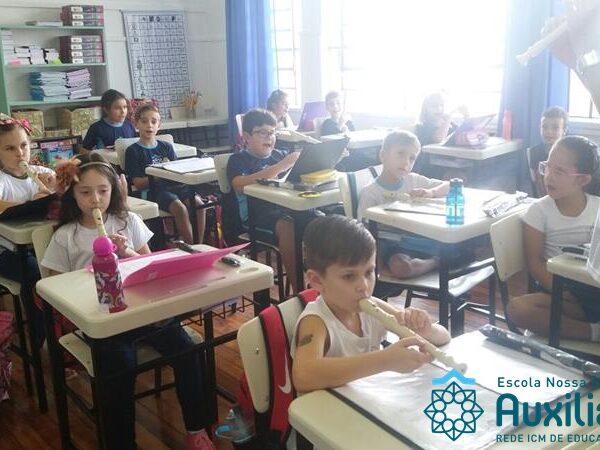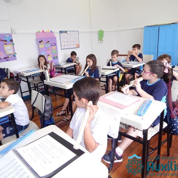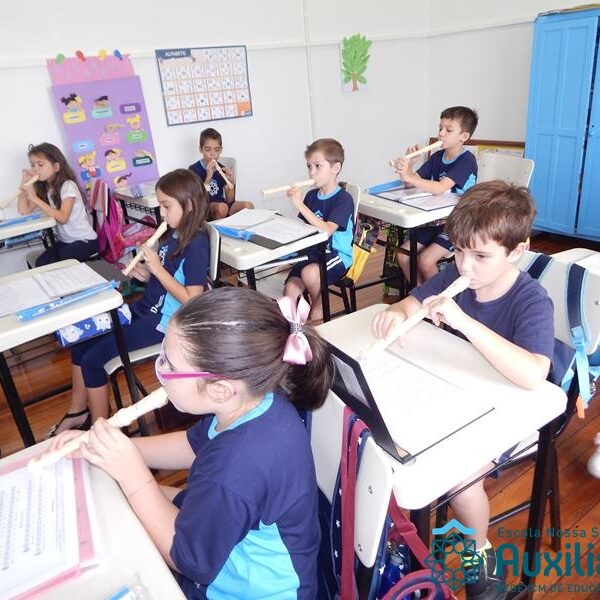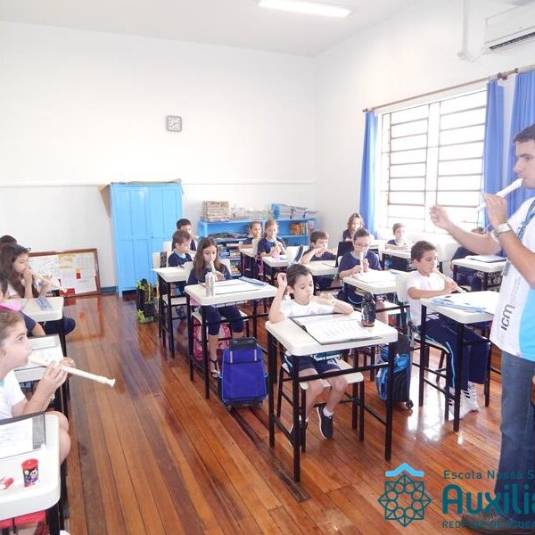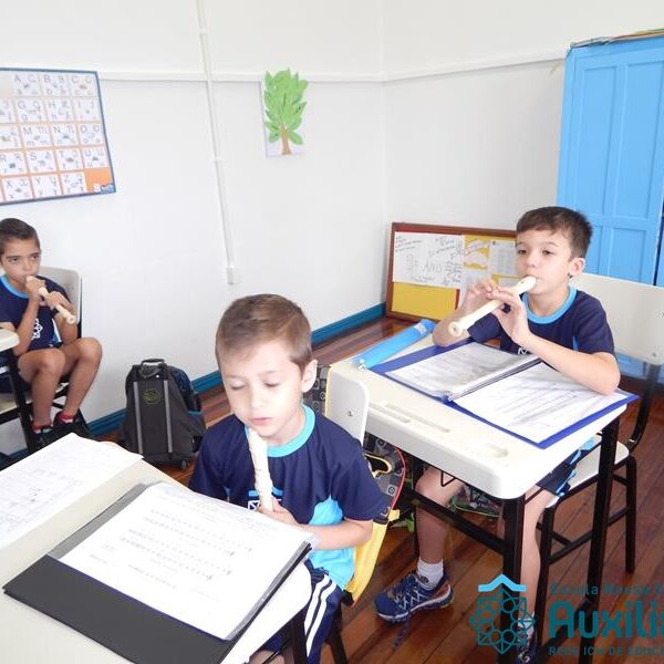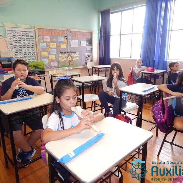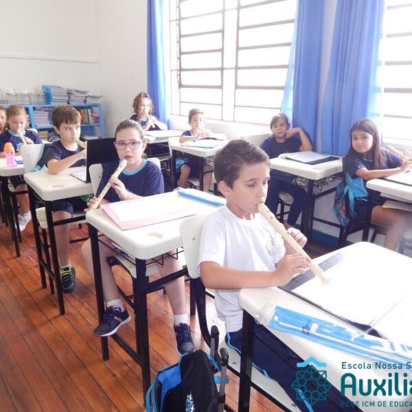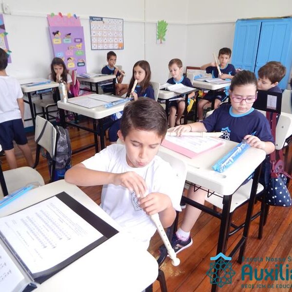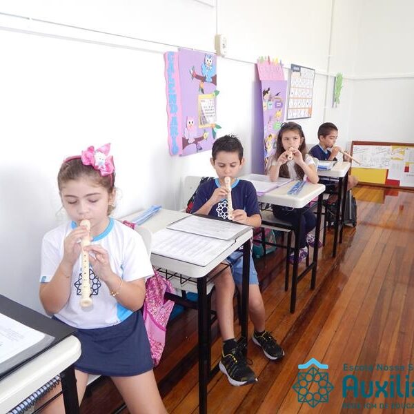 As aulas de música neste ano tem uma novidade… As aulas serão acompanhadas de um instrumento complementar que vai auxiliar as aulas de música durante o ano. 1 ano: Canto 2 ano: Flauta Doce 3 ano: Flauta Doce 4 ano: Percussão 5 ano: Percussão