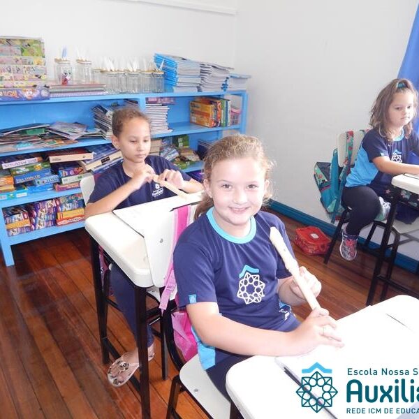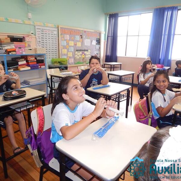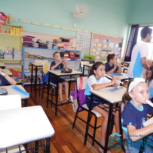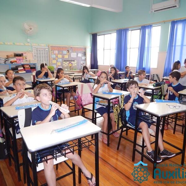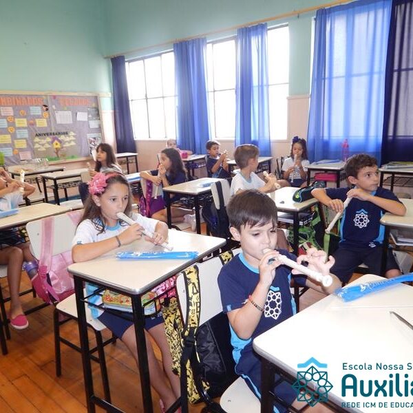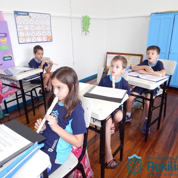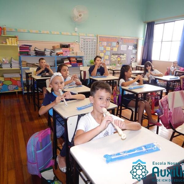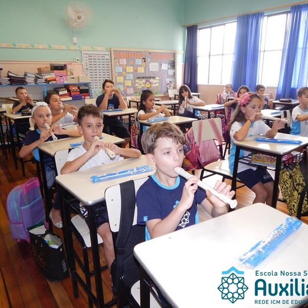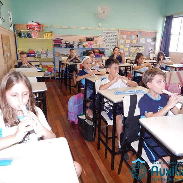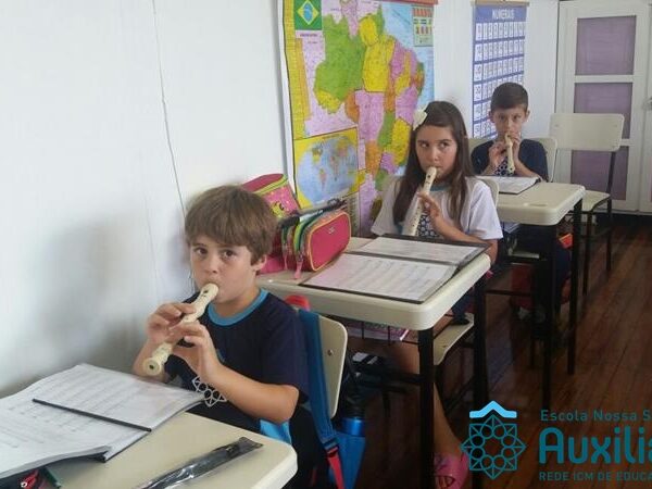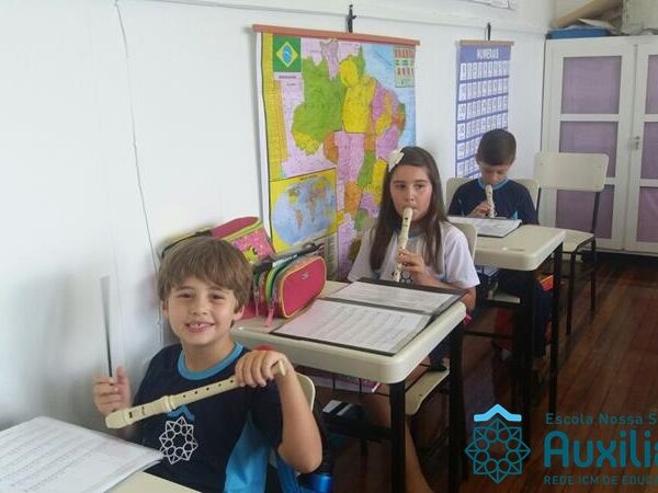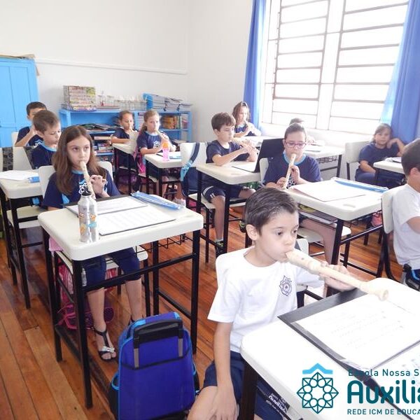 As aulas de música neste ano tem uma novidade… As aulas serão acompanhadas de um instrumento complementar que vai auxiliar as aulas de música durante o ano. 1 ano: Canto 2 ano: Flauta Doce 3 ano: Flauta Doce 4 ano: Percussão 5 ano: Percussão