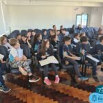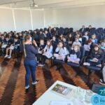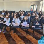 Na tarde de quinta-feira, dia 25 de agosto, a professora Gabriela Colombo esteve presente no auditório da escola, com as turmas de 2º ano 21 e 22, para um bate-papo sobre o tratamento e distribuição da água no município de Frederico Westphalen.