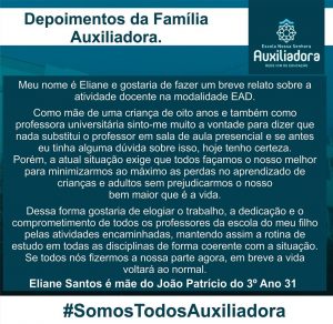 🗣 COMPARTILHAMOS UM DEPOIMENTO DE INTEGRANTES DA FAMÍLIA AUXILIADORA, SOBRE AS AULAS DOMICILIARES! 🏠📚