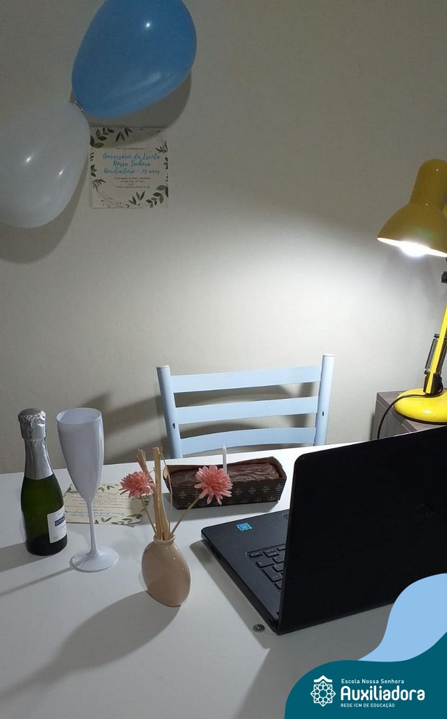 Cantamos o parabéns, sopramos as velinhas e brindamos … cada um na sua casa compartilhando um sentimento de união e amor por esta Escola. 😍