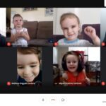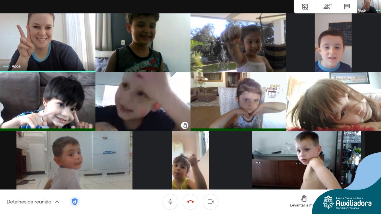 A prof Thays solicitava um objeto de determinada cor ou letra do alfabeto e as crianças tinham determinado tempo para encontrar o que havia sido solicitado.
