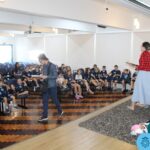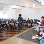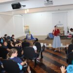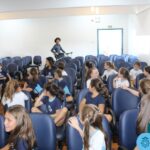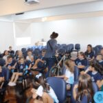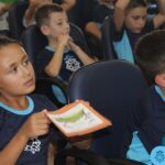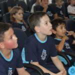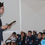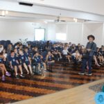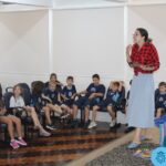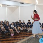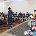 As turmas reuniram-se no auditório da escola para prestigiar a história A CALIGRAFIA DE DONA SOFIA, do autor André Neves. Através do enredo, as crianças encantaram-se com os personagens e aumentaram, ainda mais, a expectativa pela leitura e escrita cursiva, ouvindo as dicas e segredos de escrever bem.