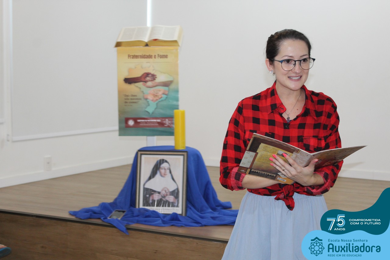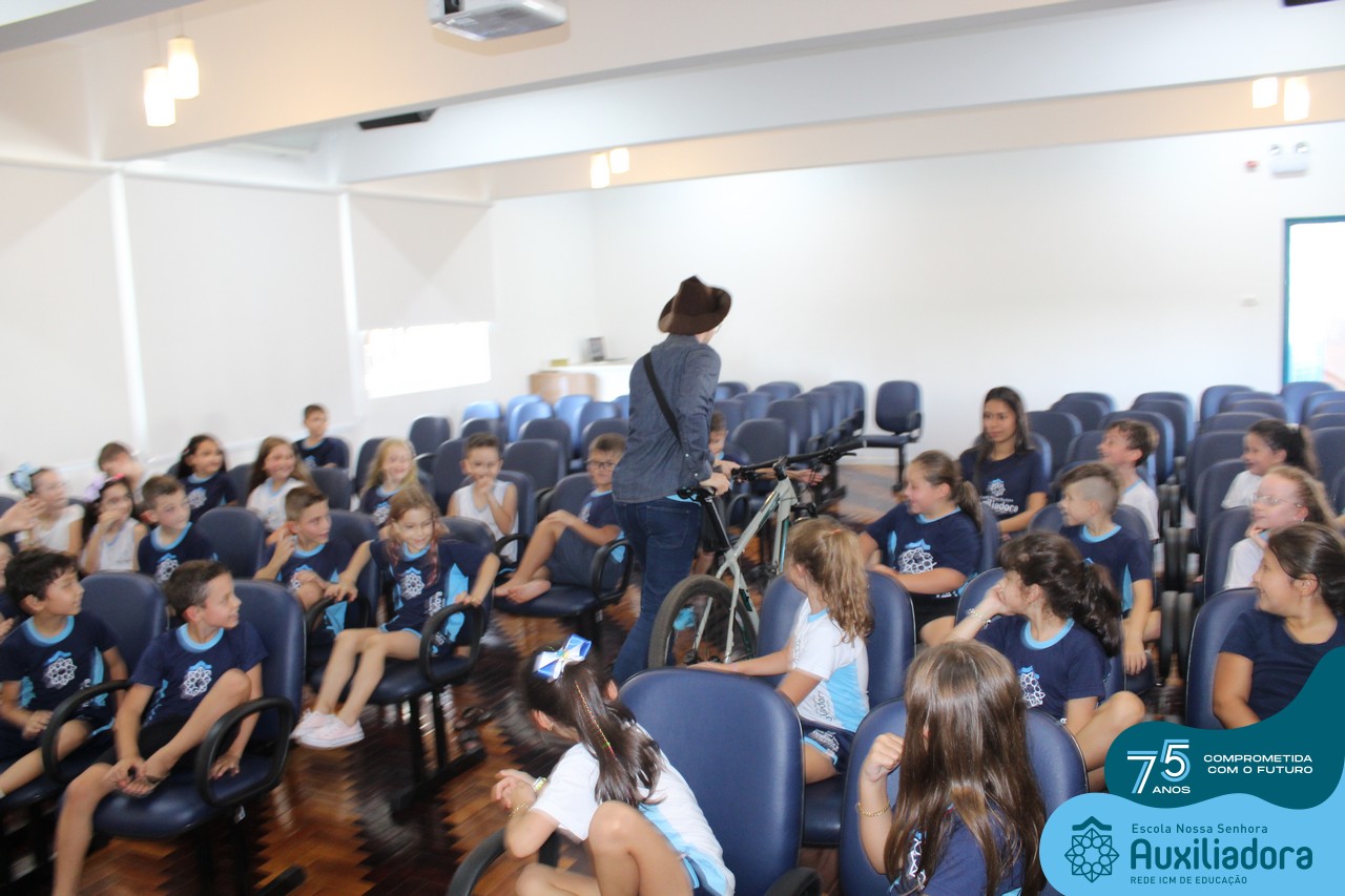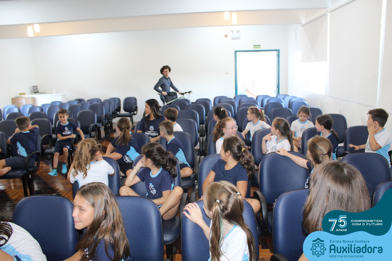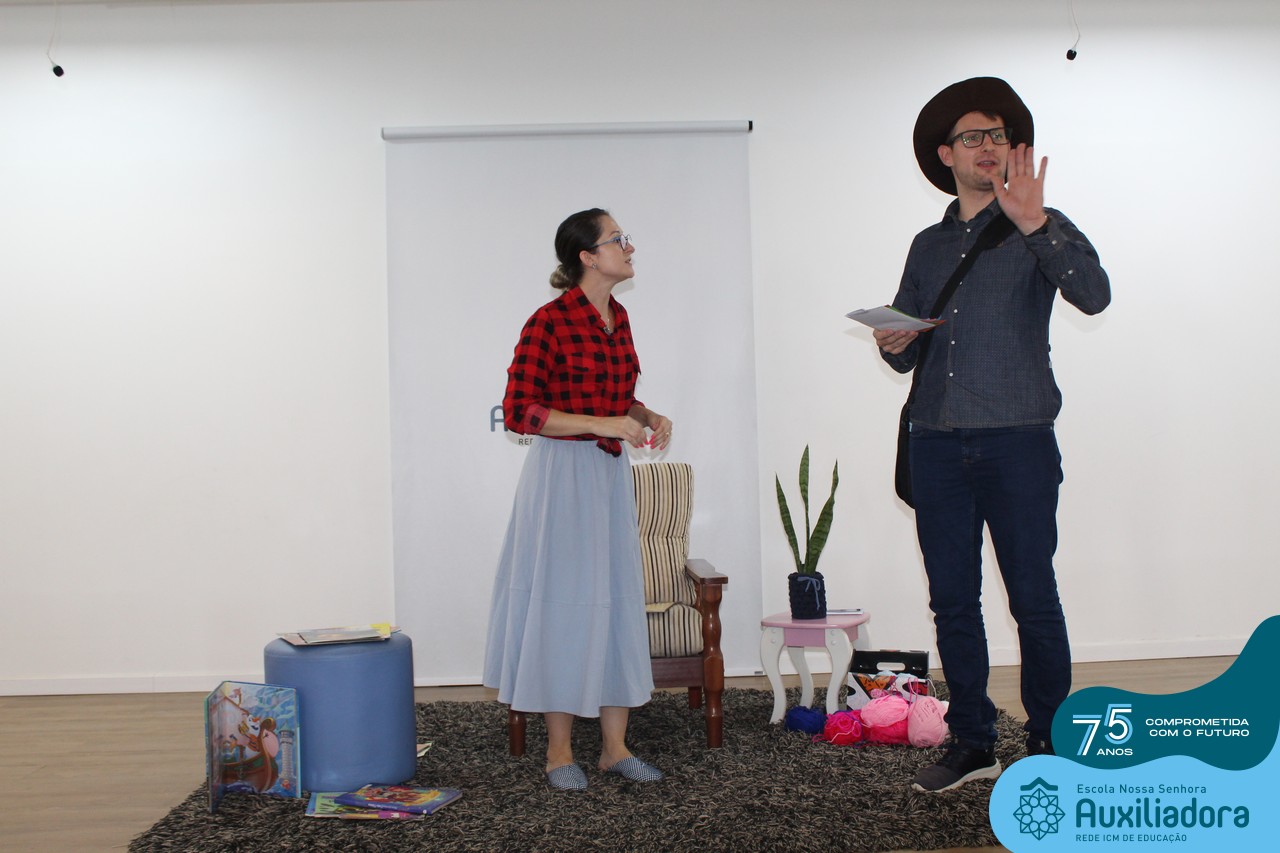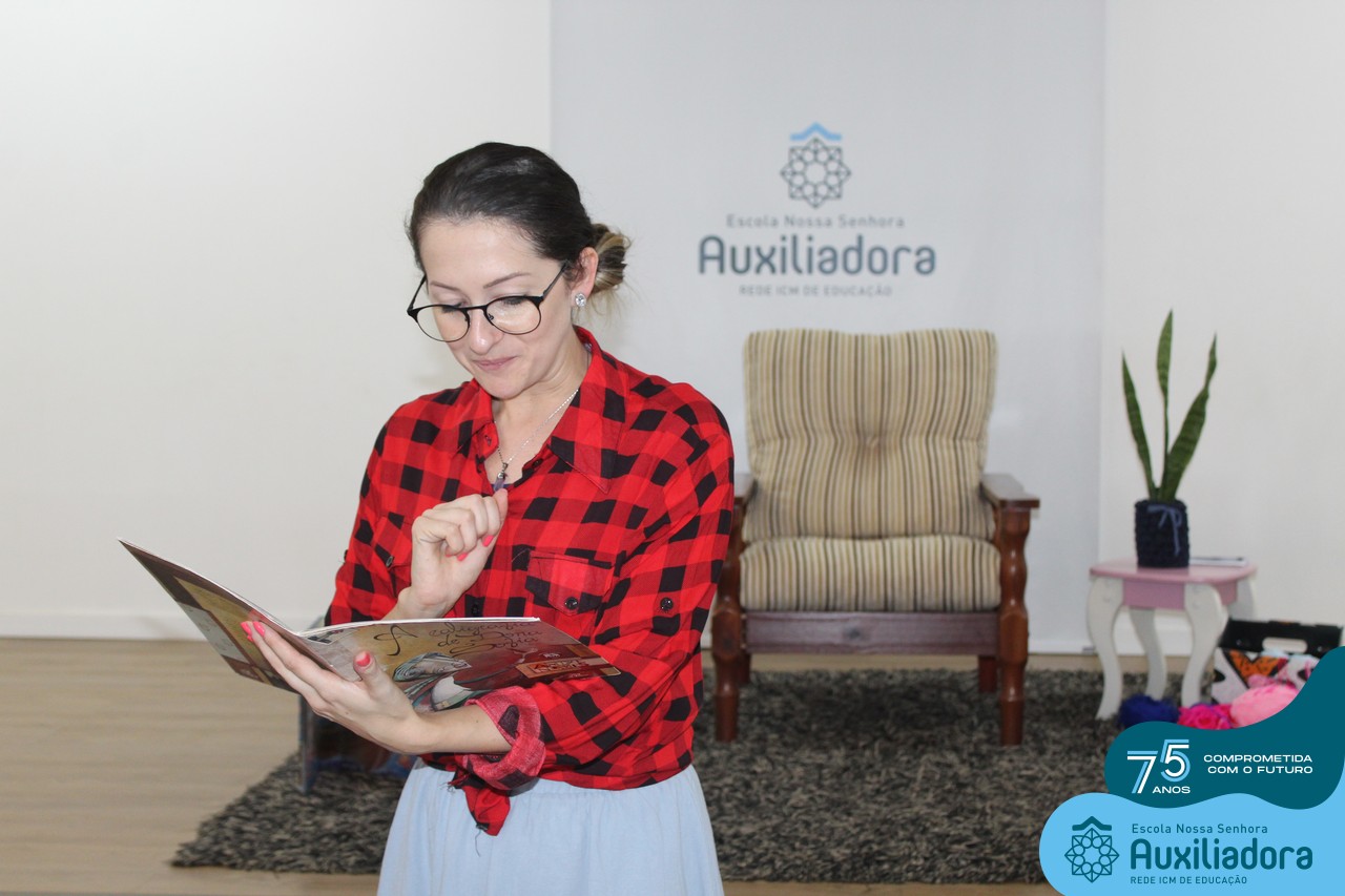 As turmas reuniram-se no auditório da escola para prestigiar a história A CALIGRAFIA DE DONA SOFIA, do autor André Neves. Através do enredo, as crianças encantaram-se com os personagens e aumentaram, ainda mais, a expectativa pela leitura e escrita cursiva, ouvindo as dicas e segredos de escrever bem.