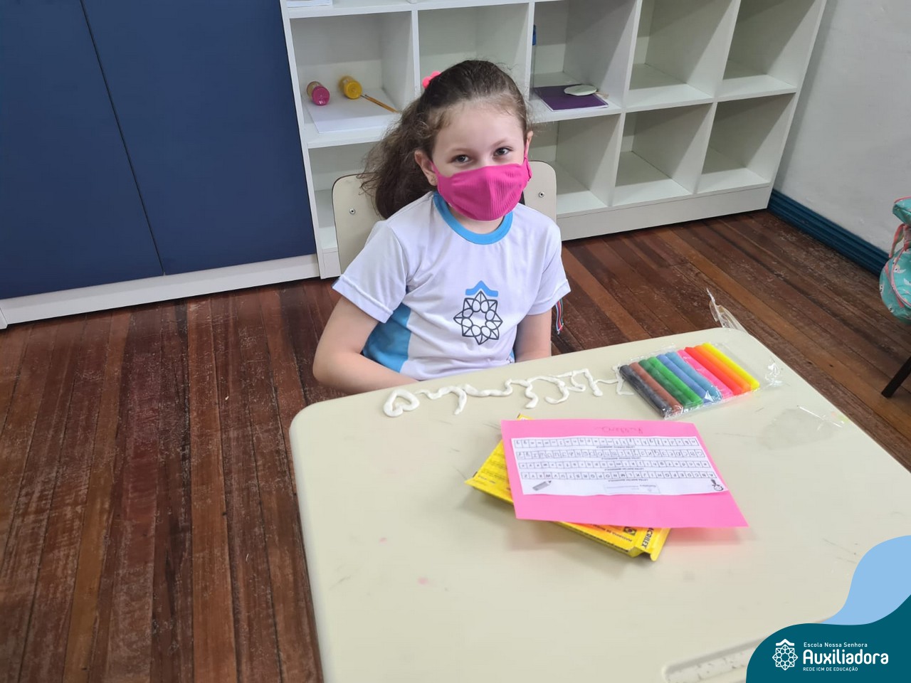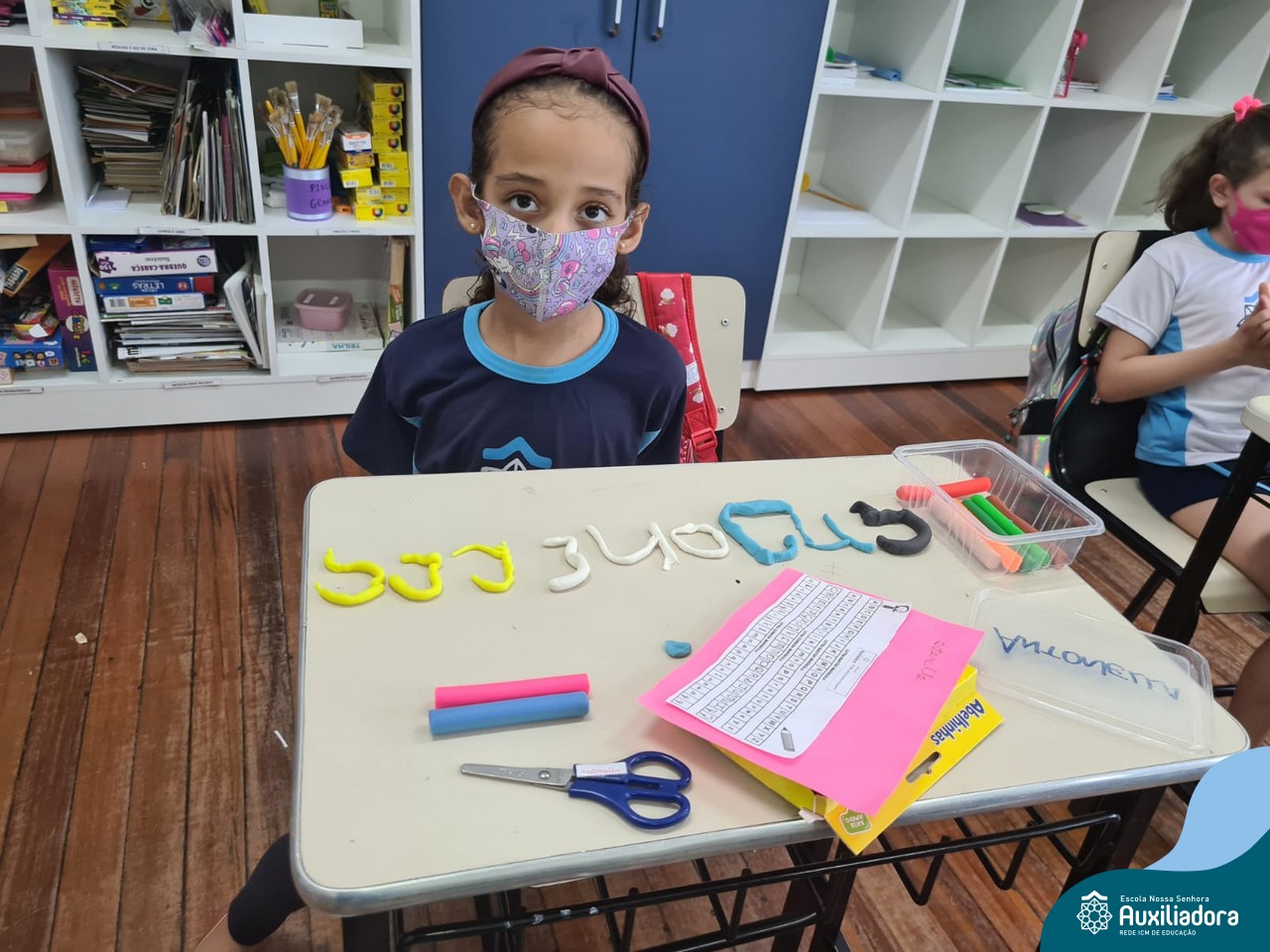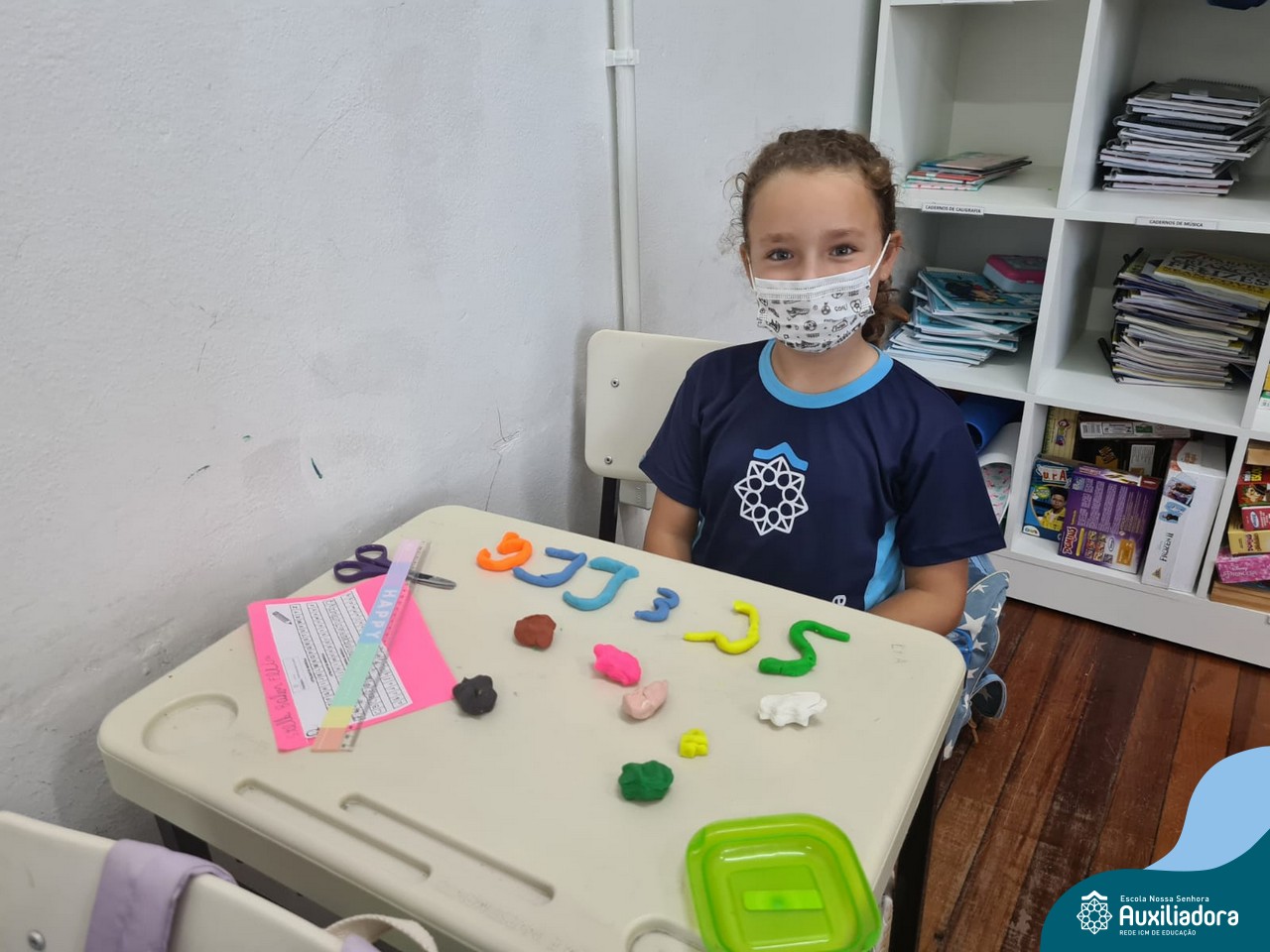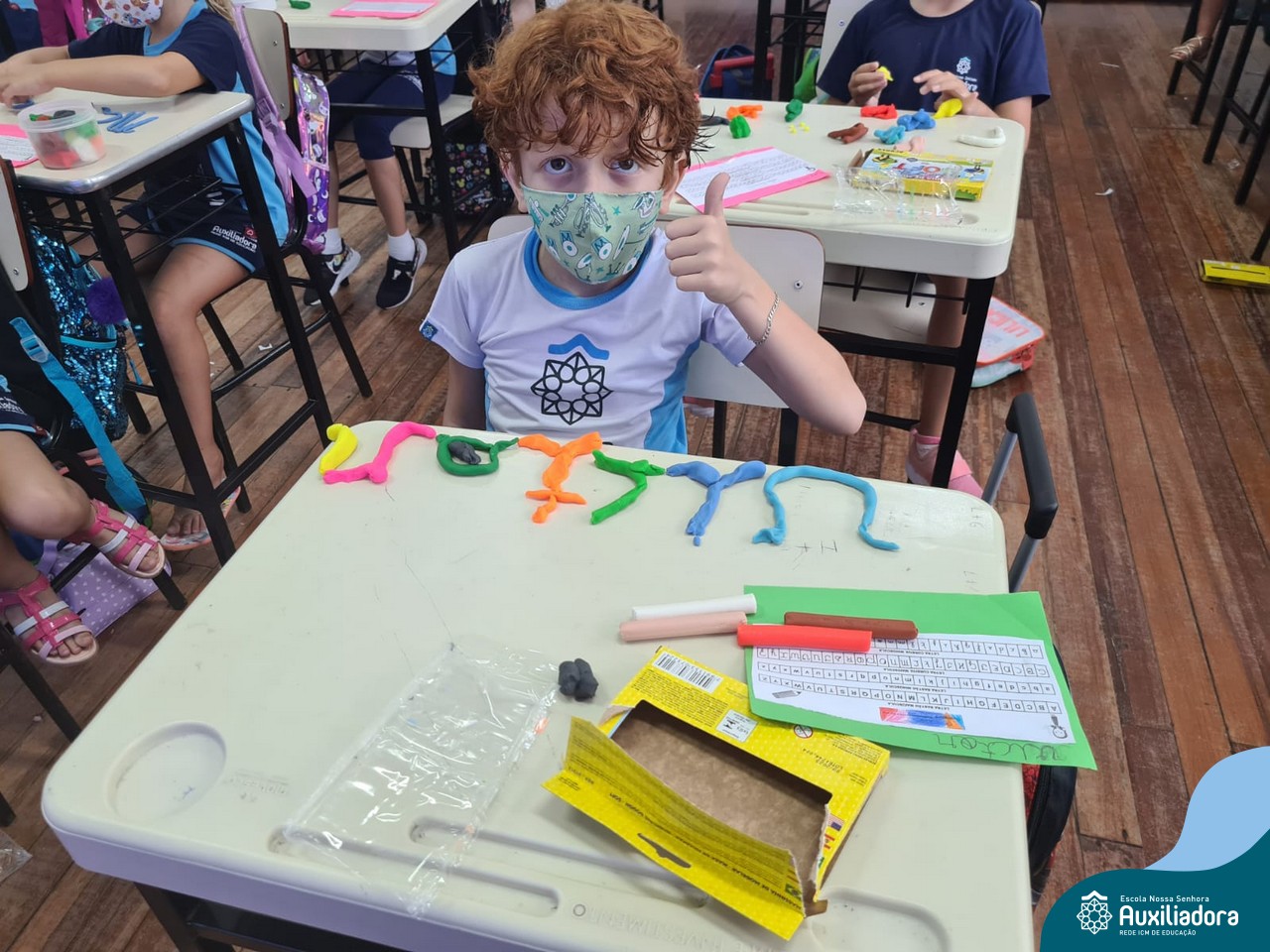 Nesta semana, as turmas do 2º ano se familiarizaram com a letra cursiva. Entre as atividades, as crianças modelaram o traçado da letra usando massinha de modelar para este primeiro contato. Assim, foi muito mais fácil e divertido.