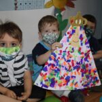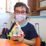 As crianças com sua graça e ternura, elevaram as capelinhas feitas por elas para serem bentas.