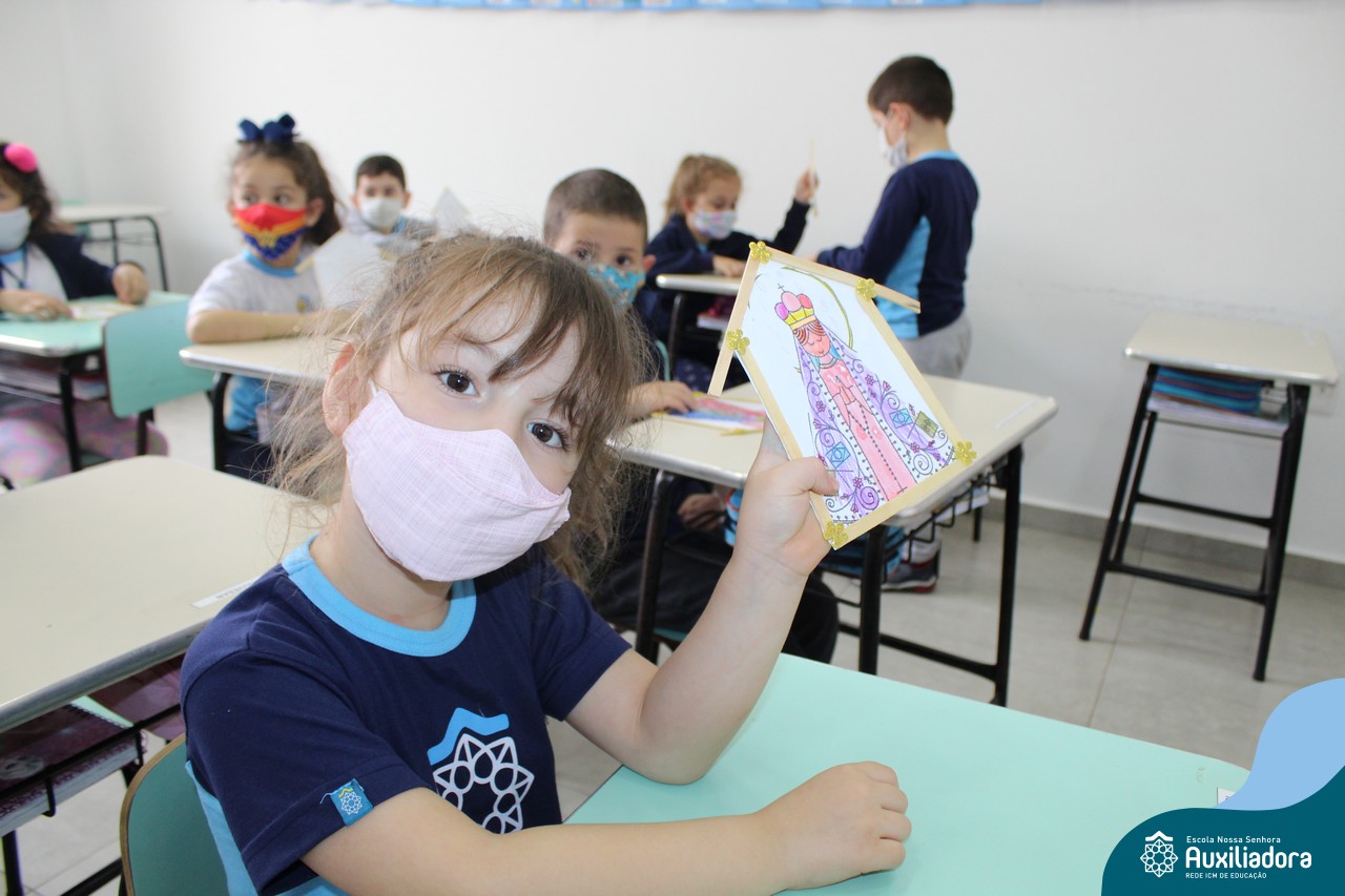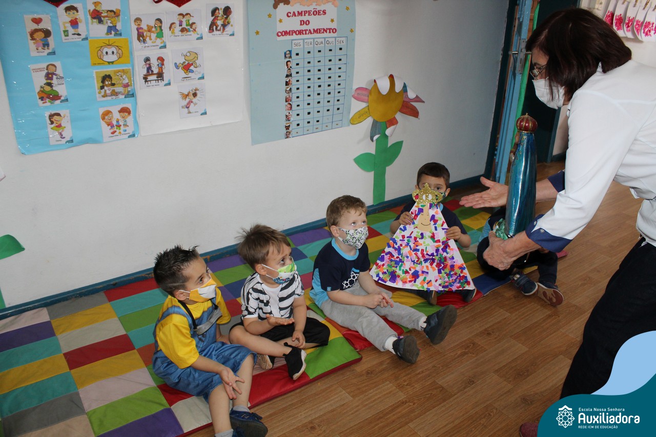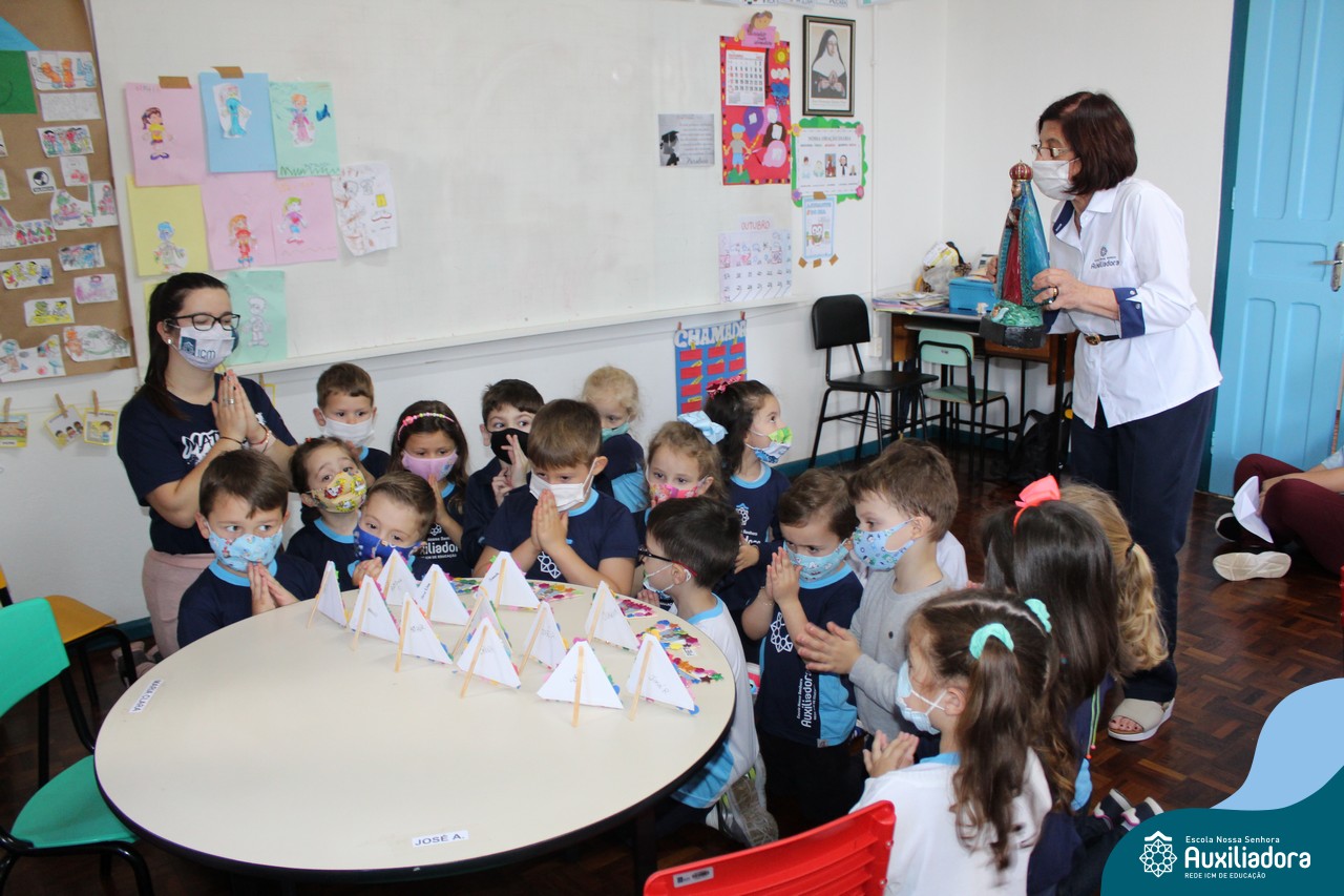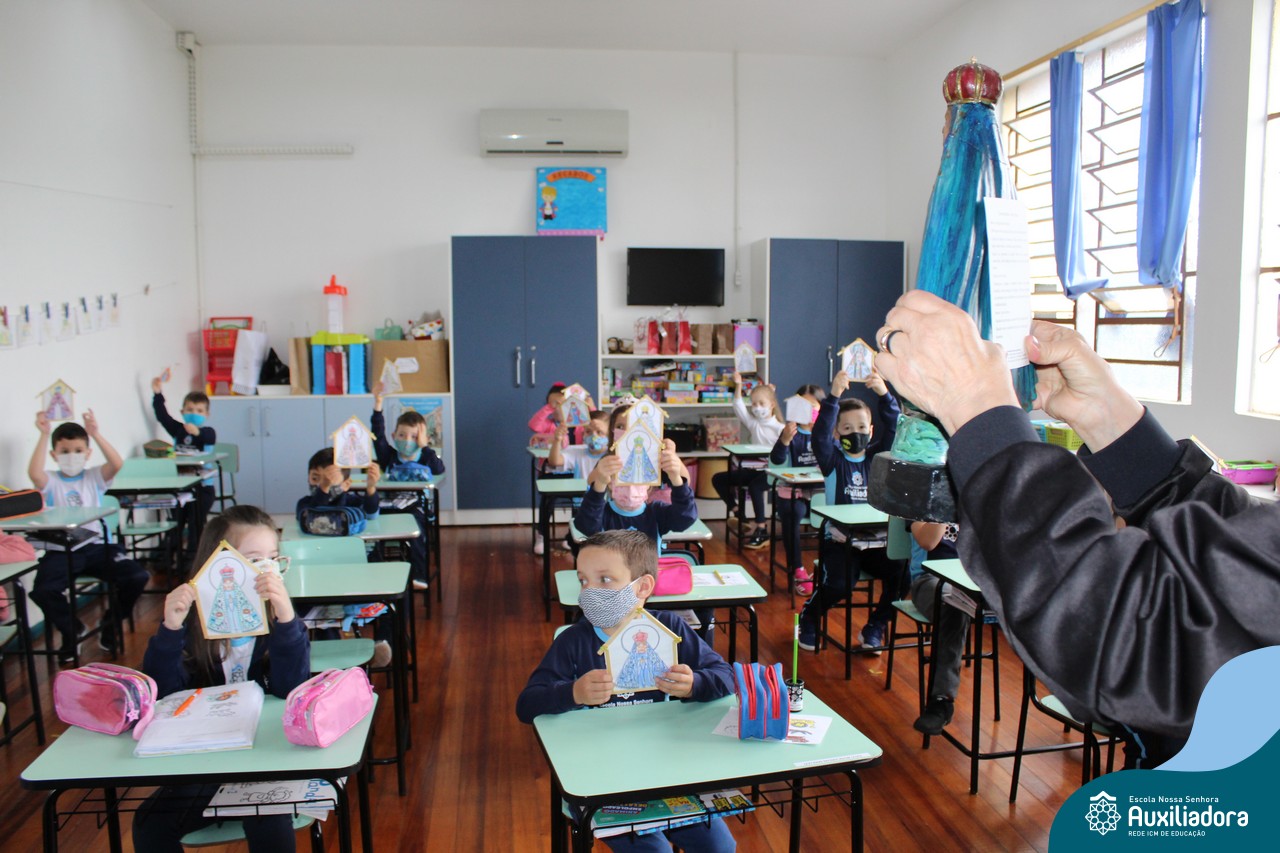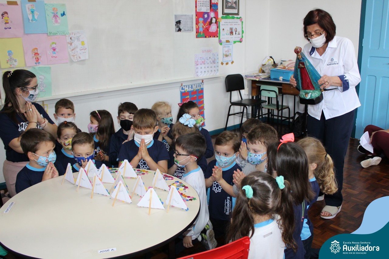 Foi levada a imagem de Nossa Senhora Aparecida em cada sala de aula e dada a bênção de Deus por intercessão de Nossa Senhora Aparecida, Padroeira do Brasil, para todas as crianças, seus familiares e pedindo mais paz e vida para o mundo inteiro.