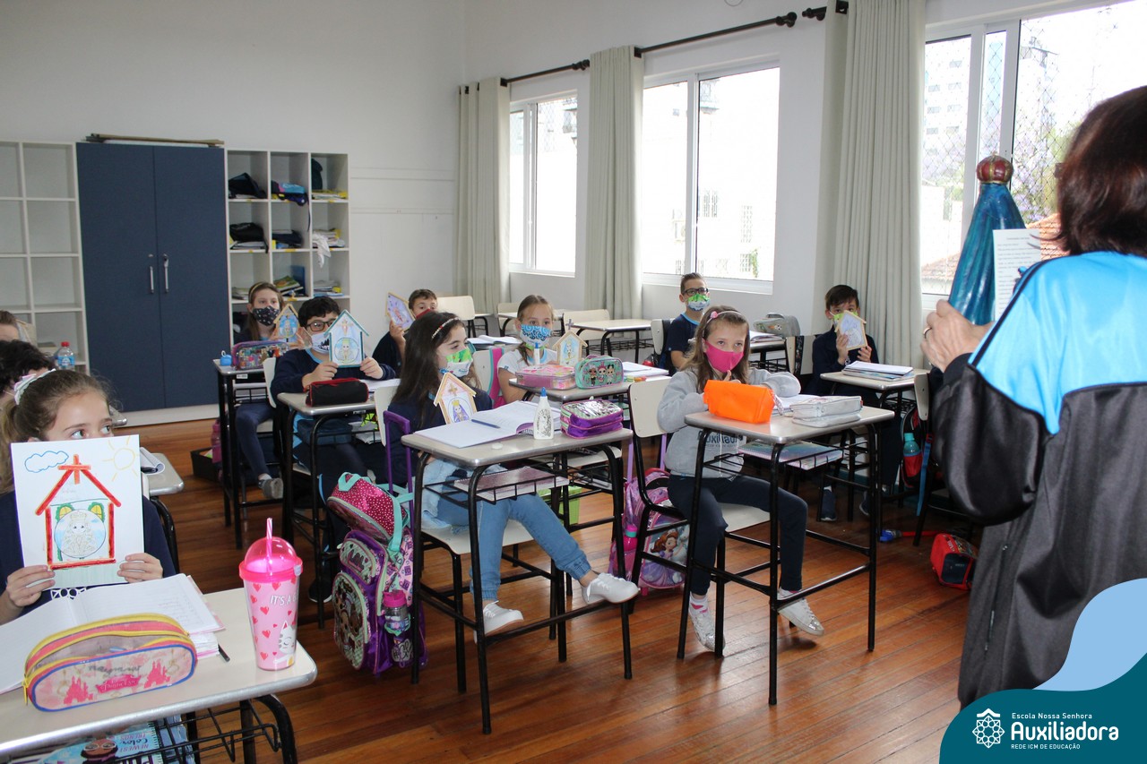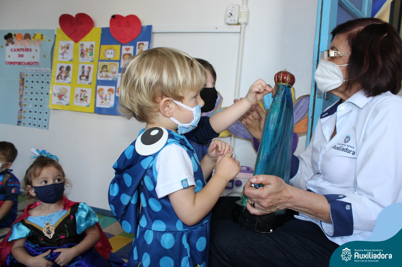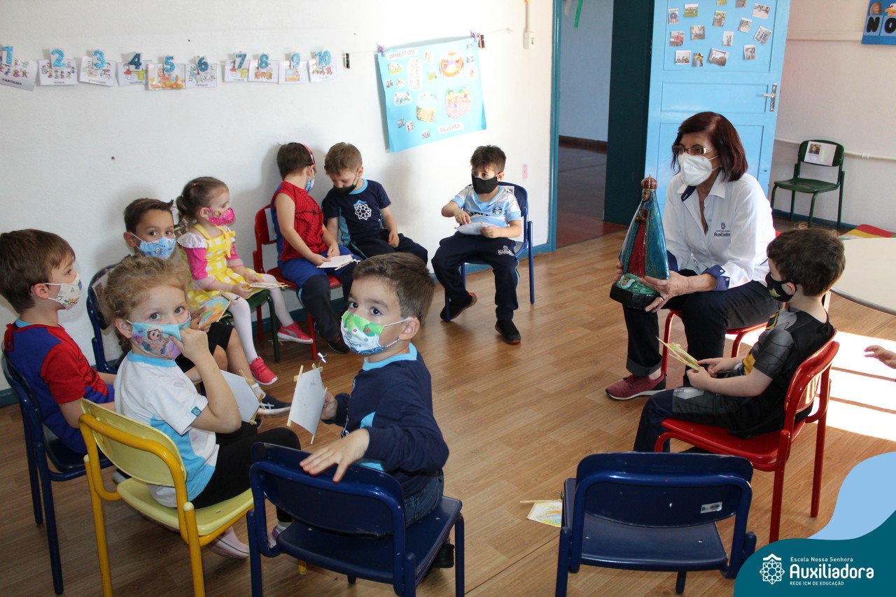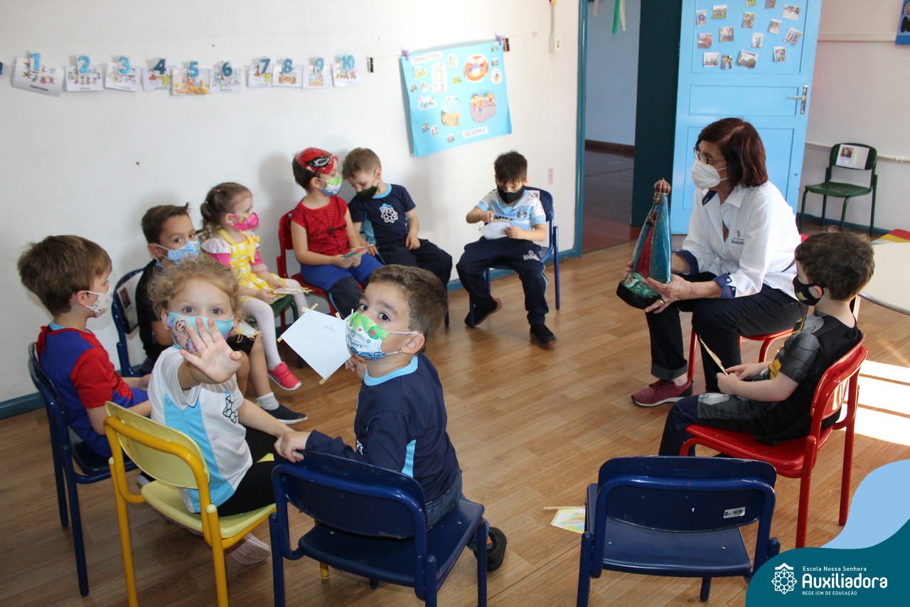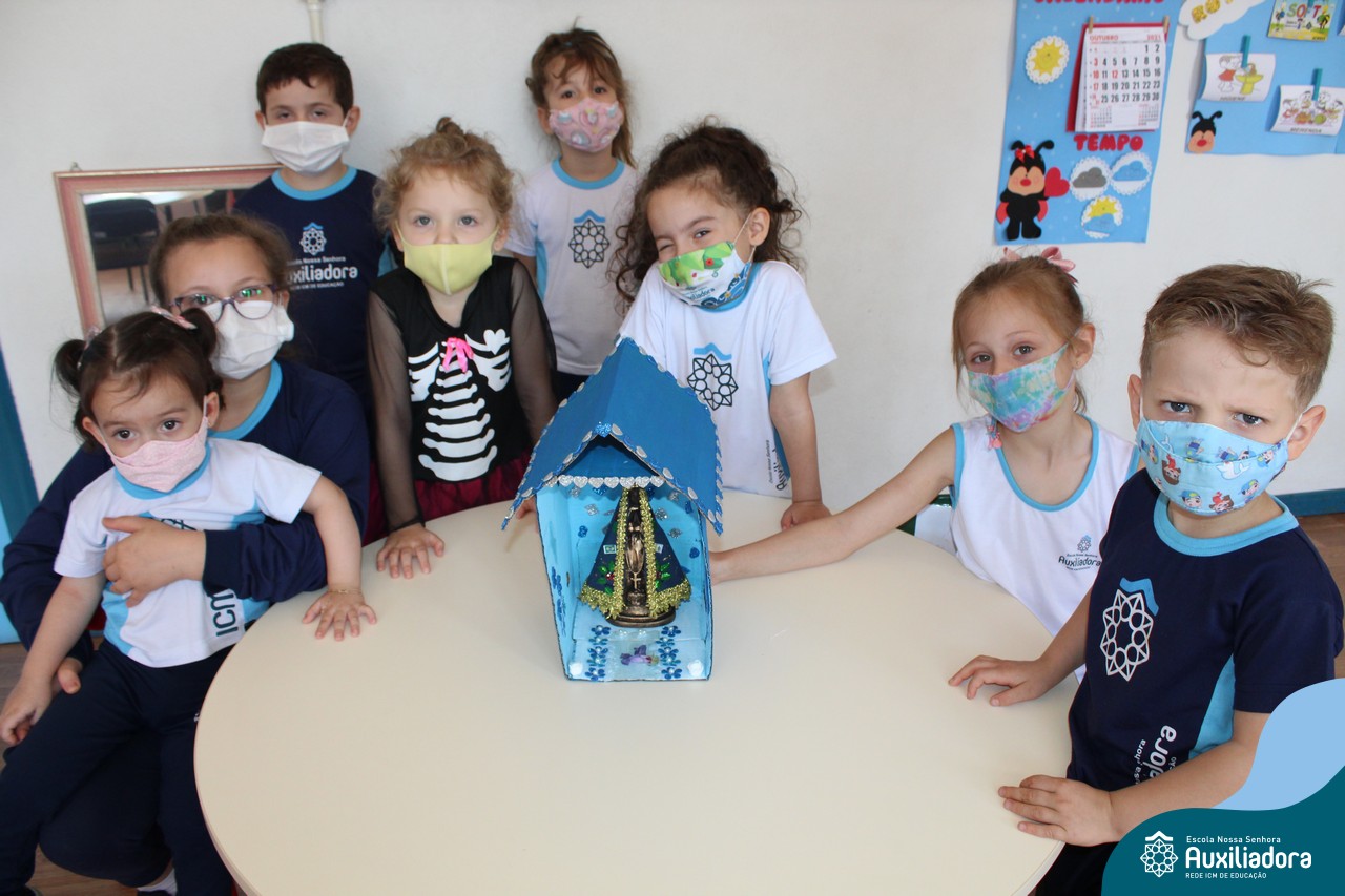 Foi levada a imagem de Nossa Senhora Aparecida em cada sala de aula e dada a bênção de Deus por intercessão de Nossa Senhora Aparecida, Padroeira do Brasil, para todas as crianças, seus familiares e pedindo mais paz e vida para o mundo inteiro.