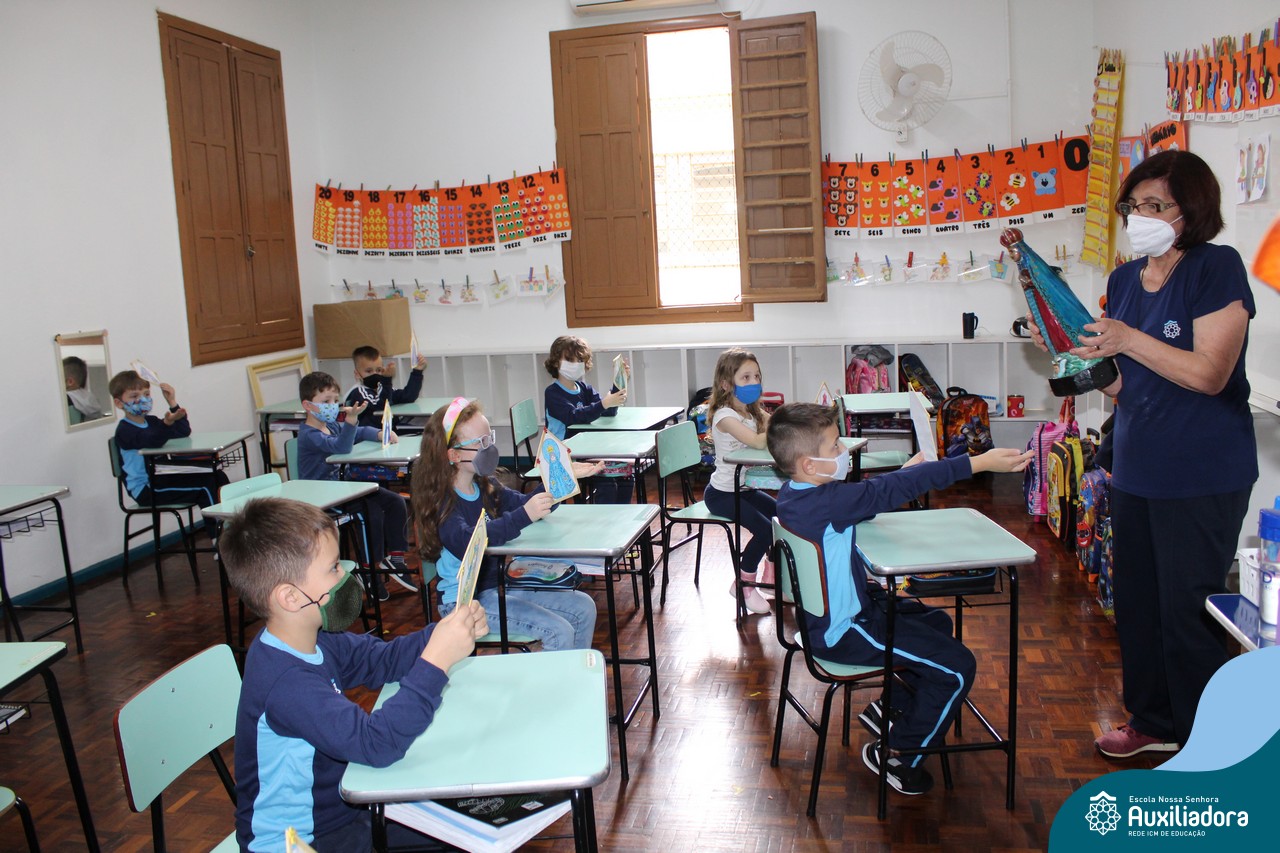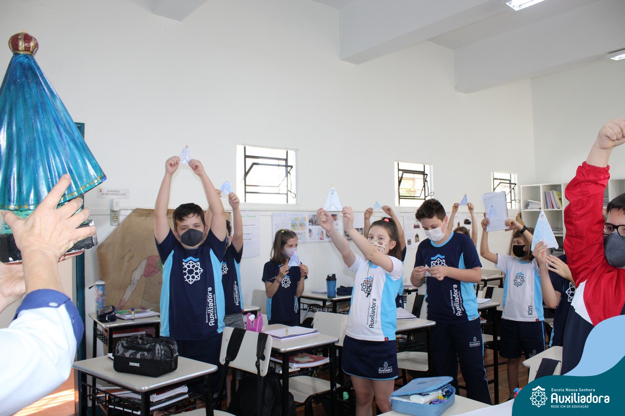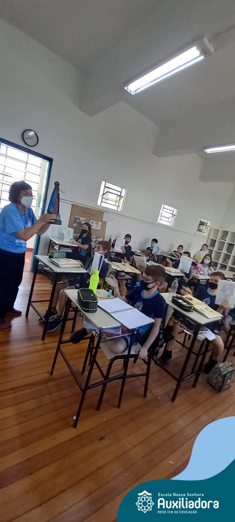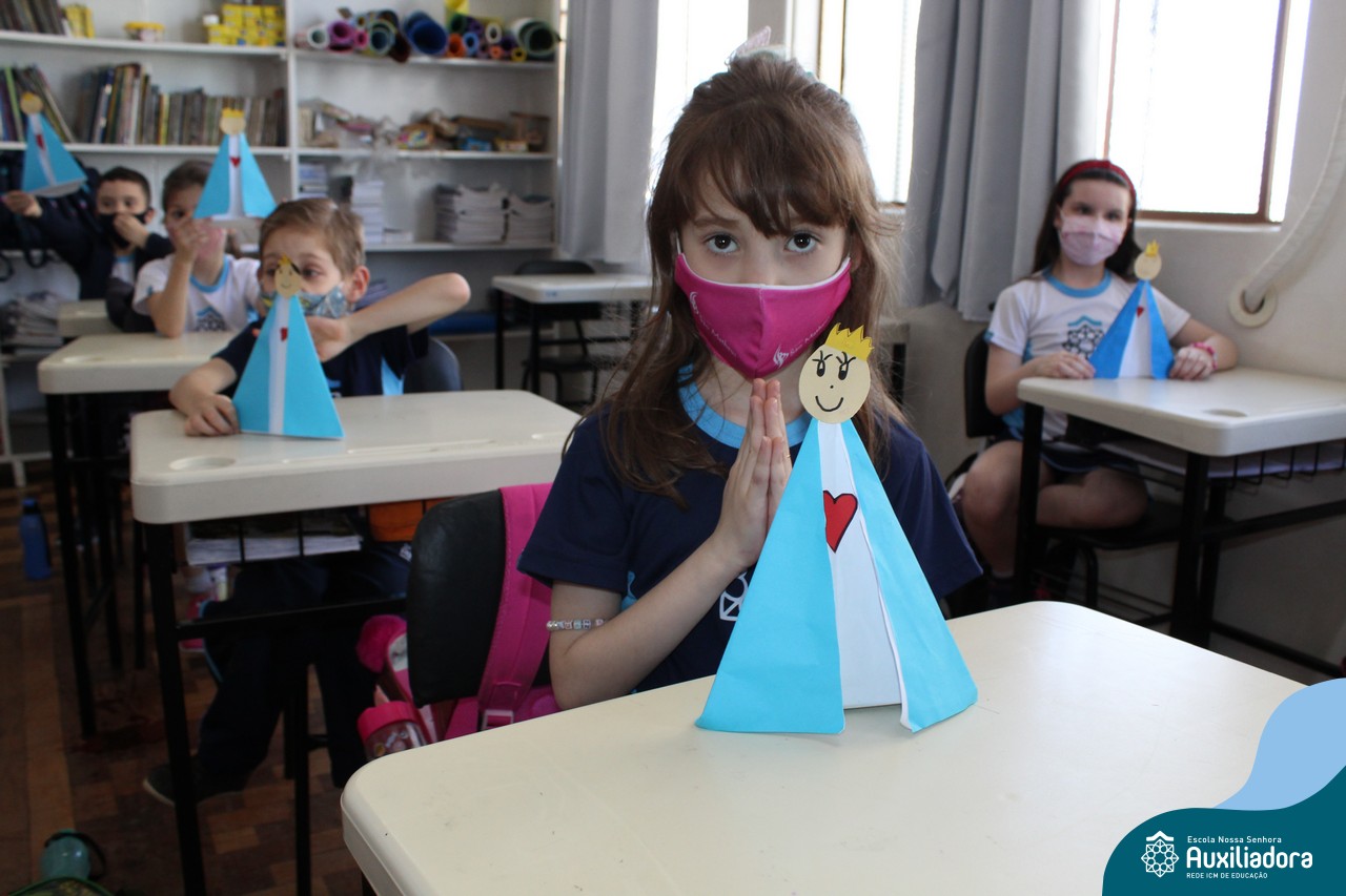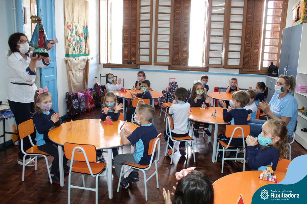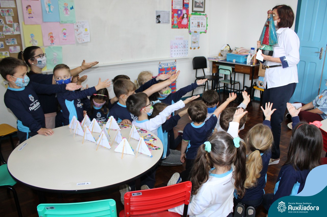 Foi levada a imagem de Nossa Senhora Aparecida em cada sala de aula e dada a bênção de Deus por intercessão de Nossa Senhora Aparecida, Padroeira do Brasil, para todas as crianças, seus familiares e pedindo mais paz e vida para o mundo inteiro.