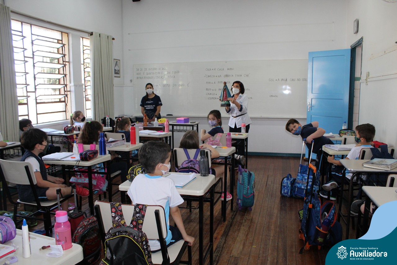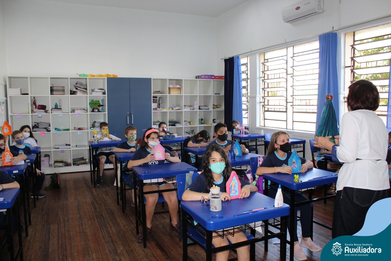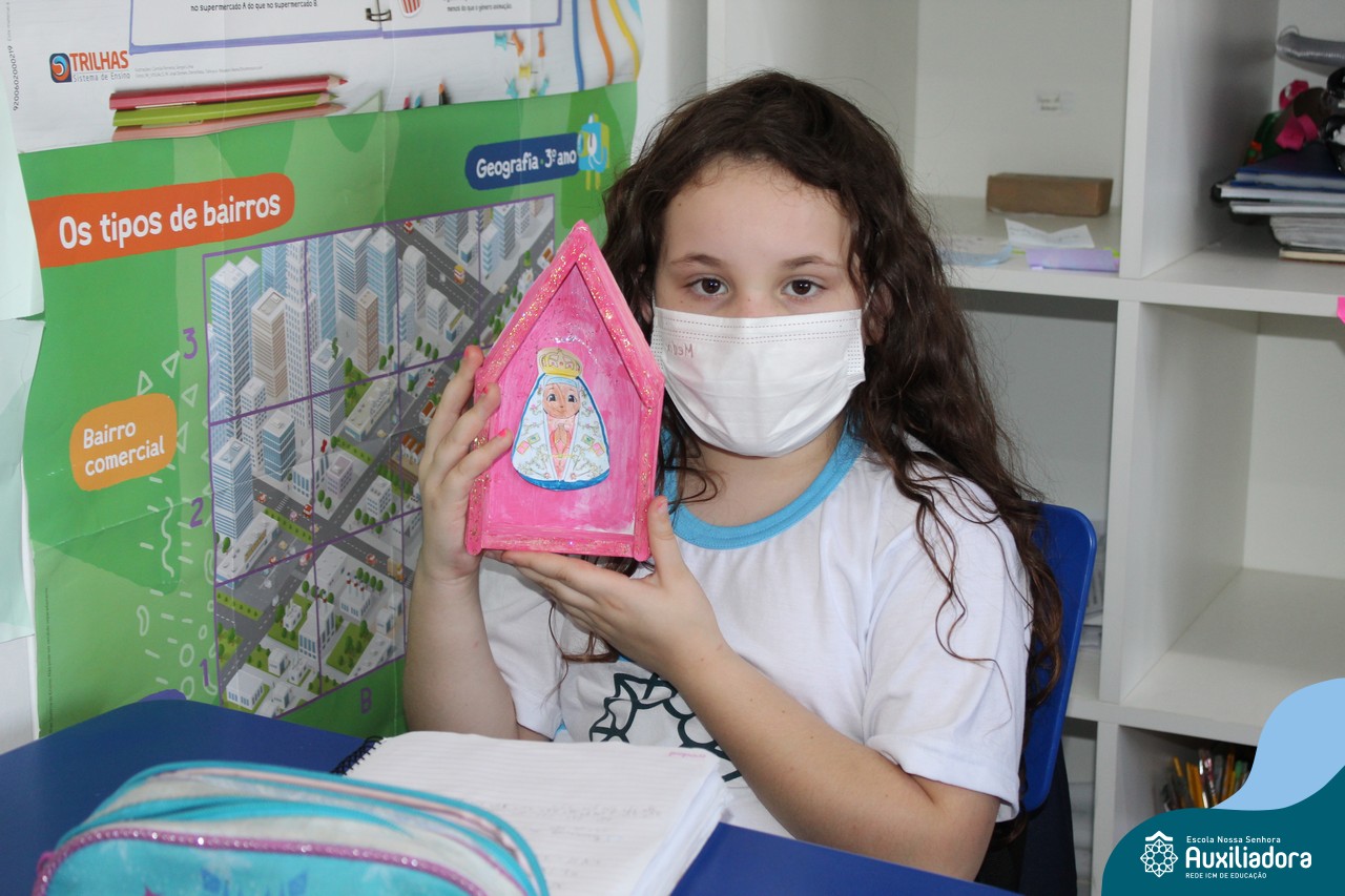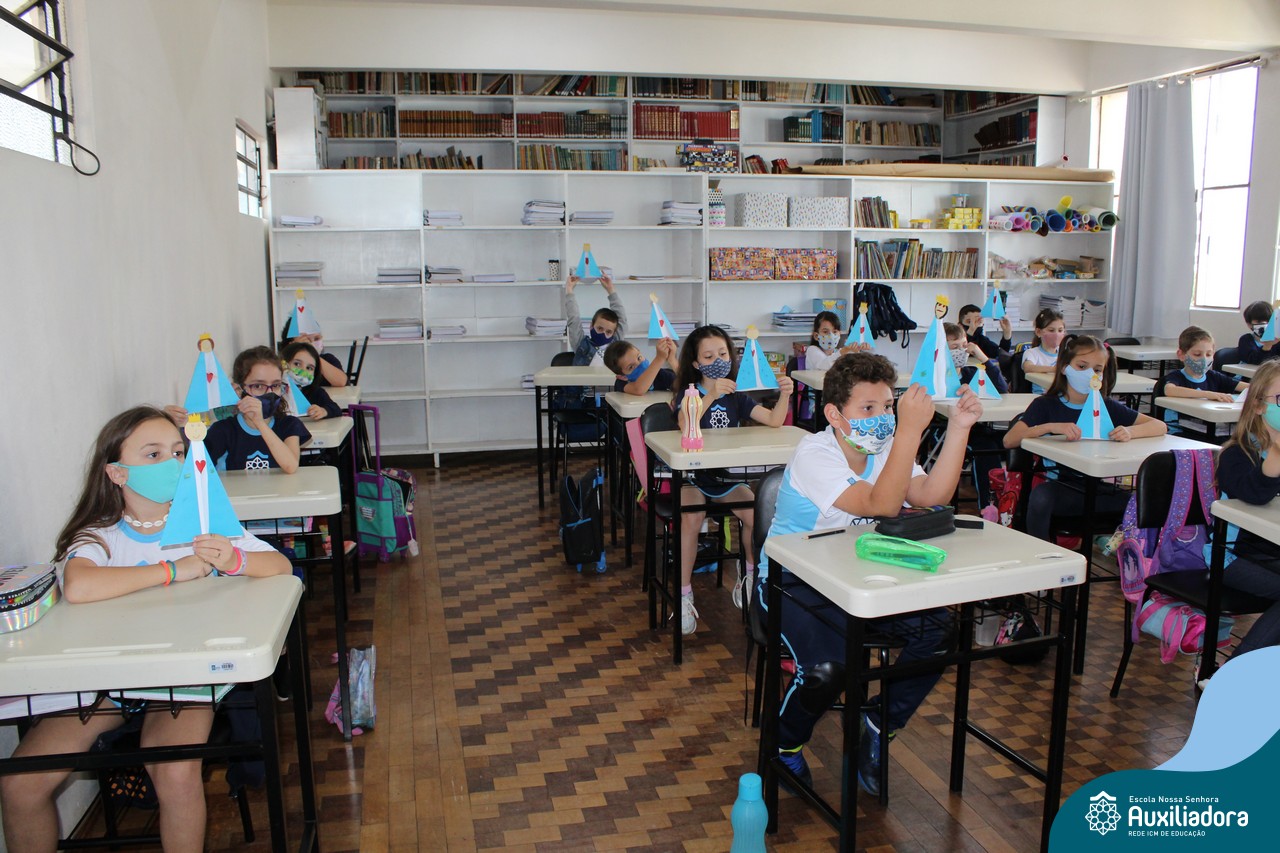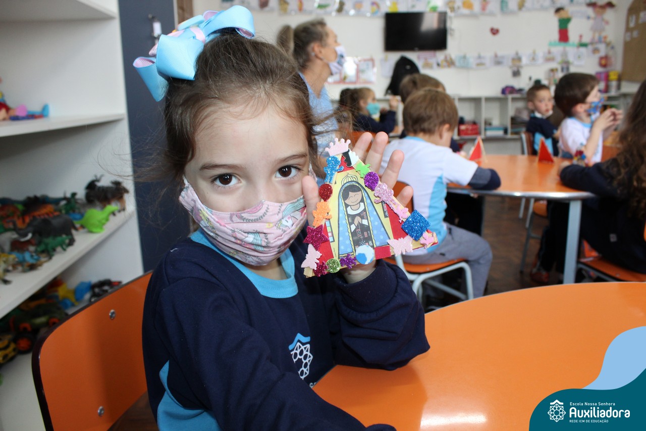 Foi levada a imagem de Nossa Senhora Aparecida em cada sala de aula e dada a bênção de Deus por intercessão de Nossa Senhora Aparecida, Padroeira do Brasil, para todas as crianças, seus familiares e pedindo mais paz e vida para o mundo inteiro.