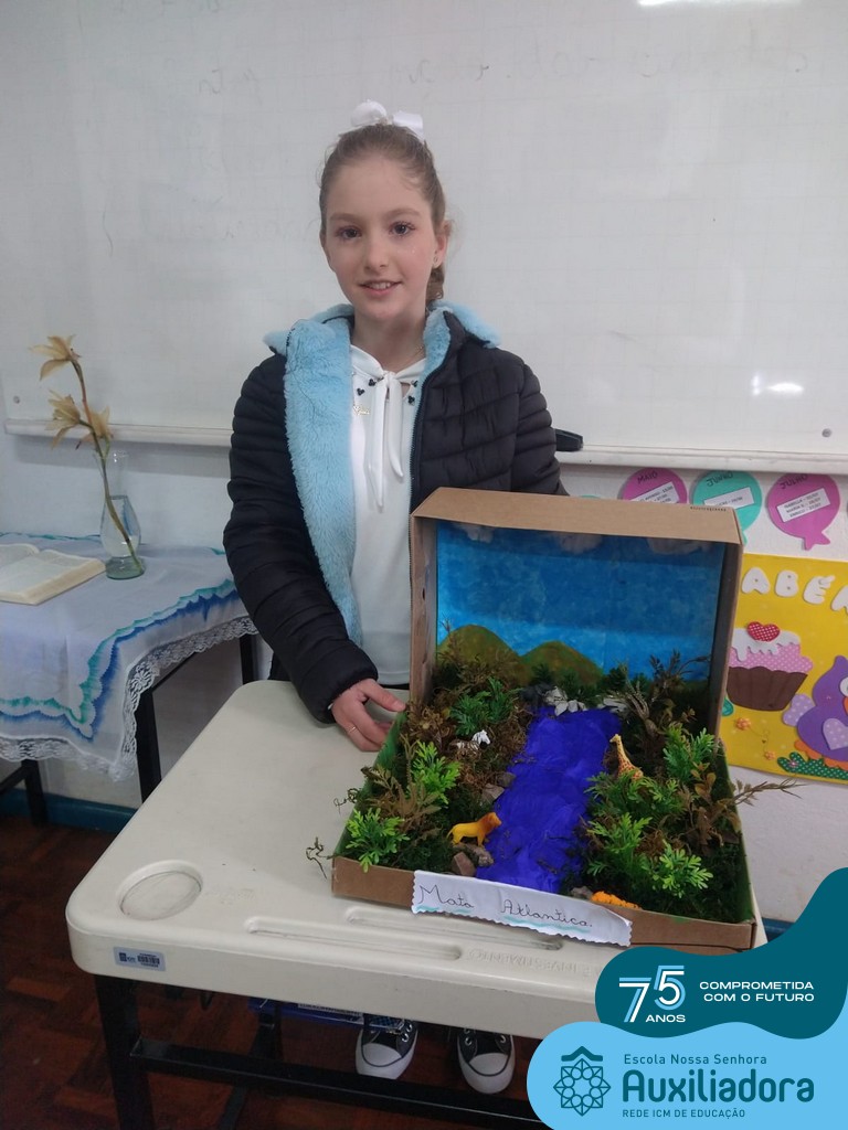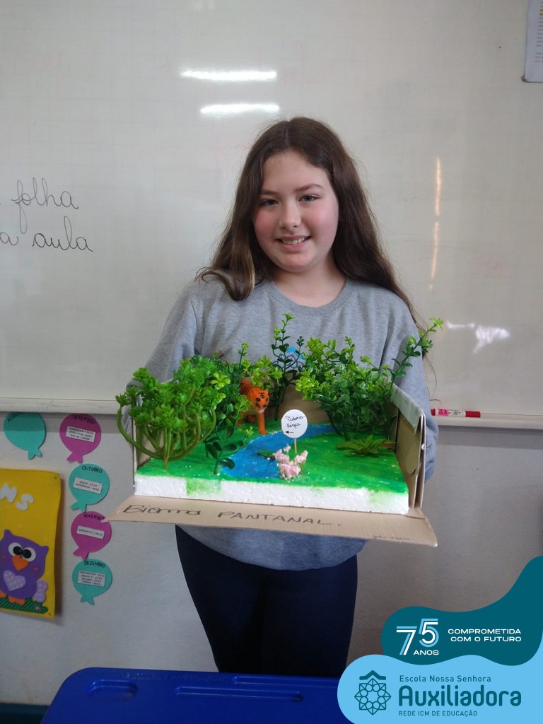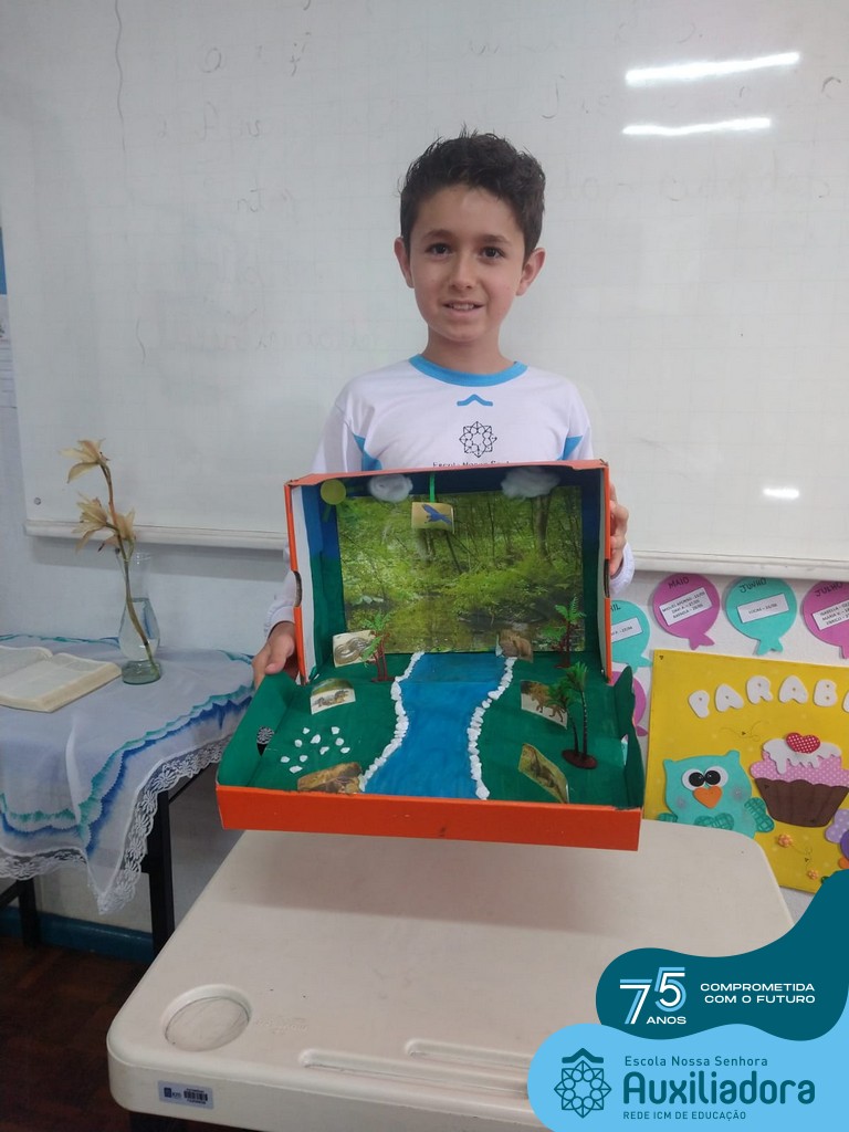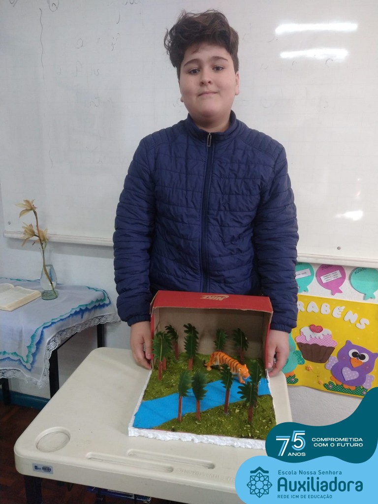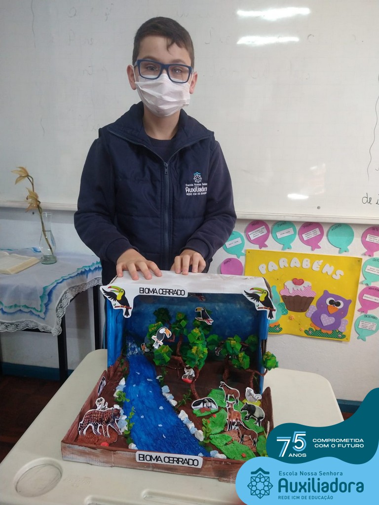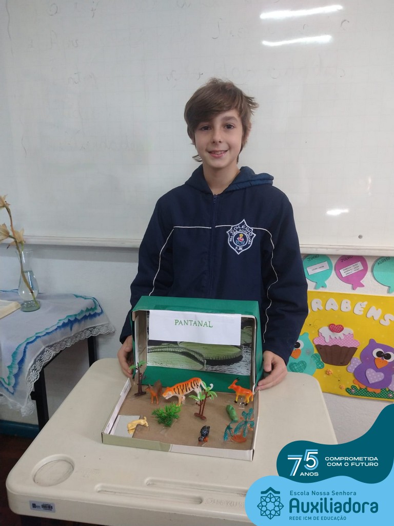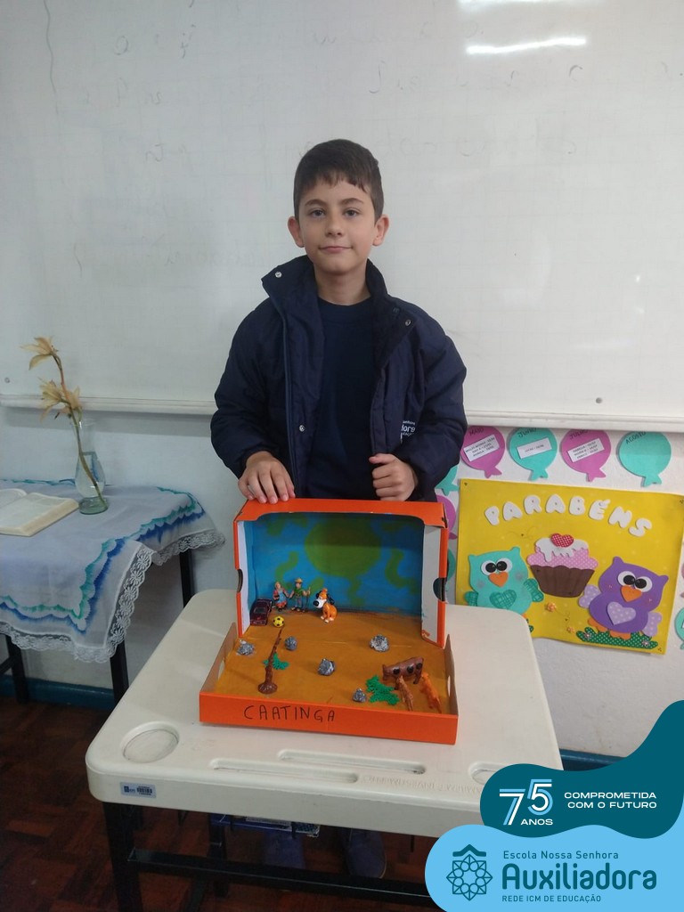 As turmas de 5º Ano estudaram os biomas brasileiros e depois de conhecer as características específicas de cada um deles, construíram em caixas um dos seis biomas do Brasil.