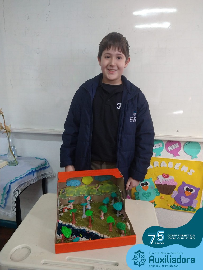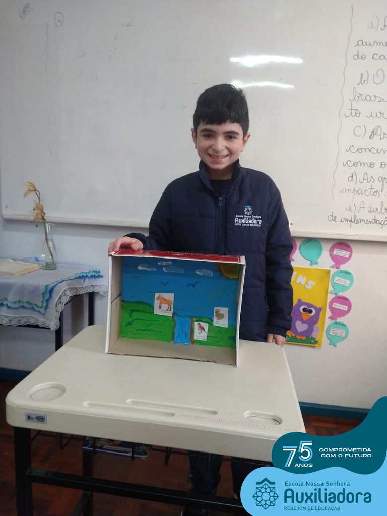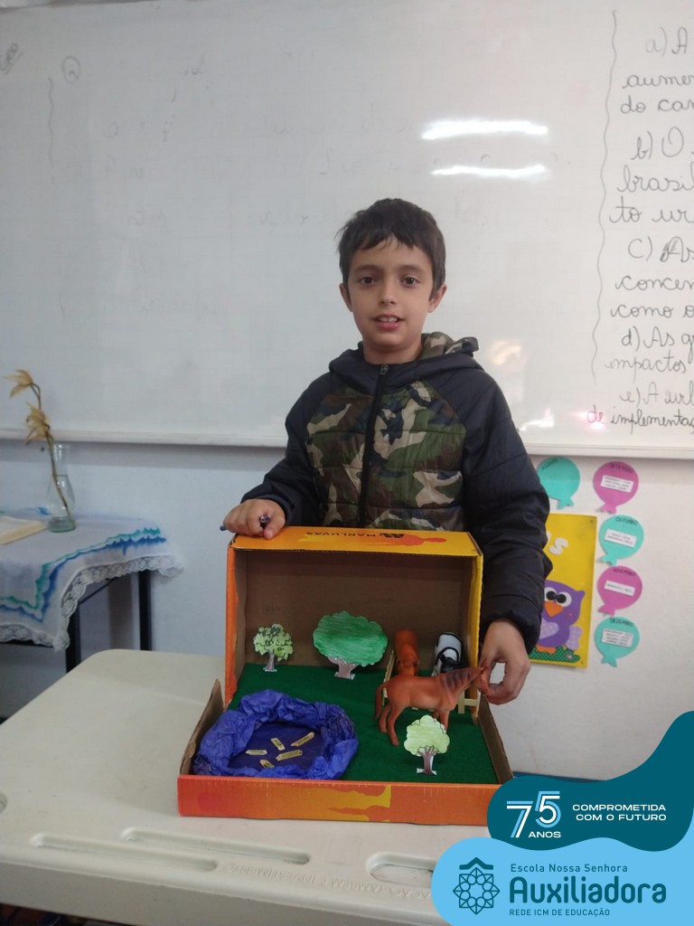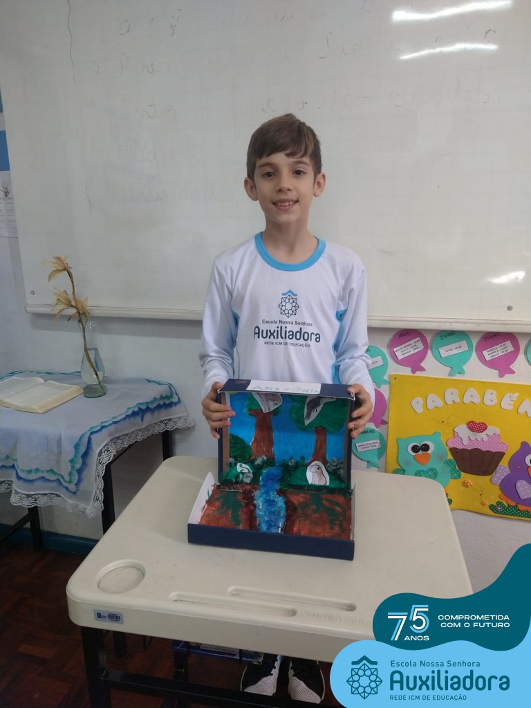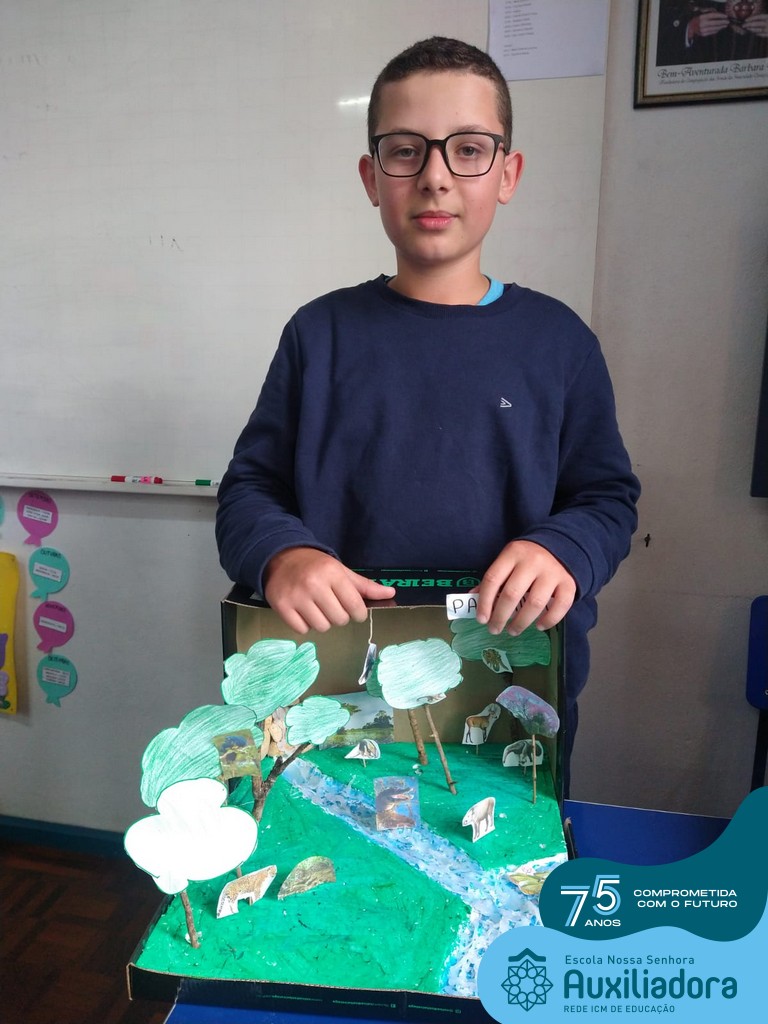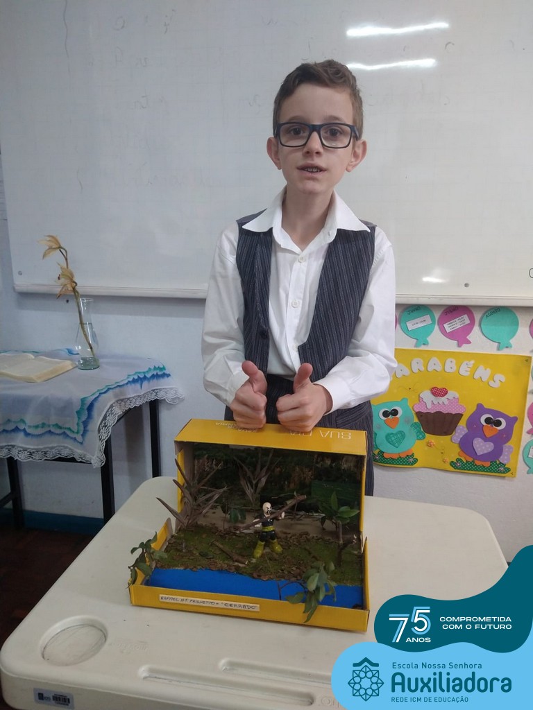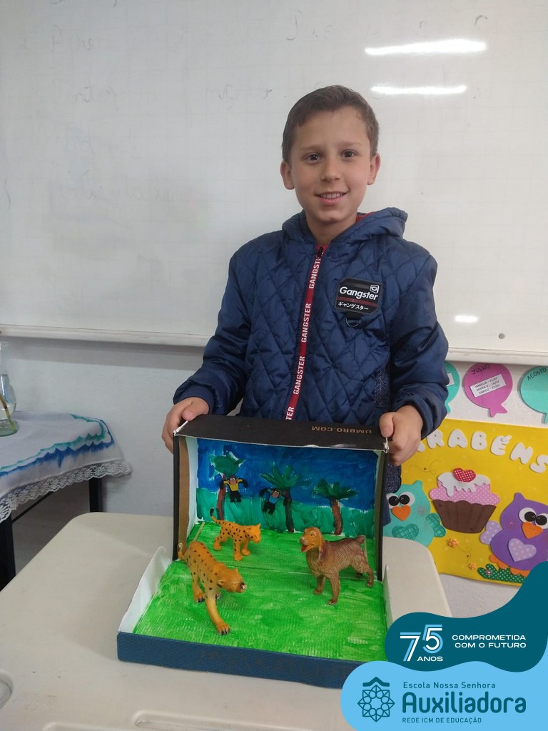 As turmas de 5º Ano estudaram os biomas brasileiros e depois de conhecer as características específicas de cada um deles, construíram em caixas um dos seis biomas do Brasil.