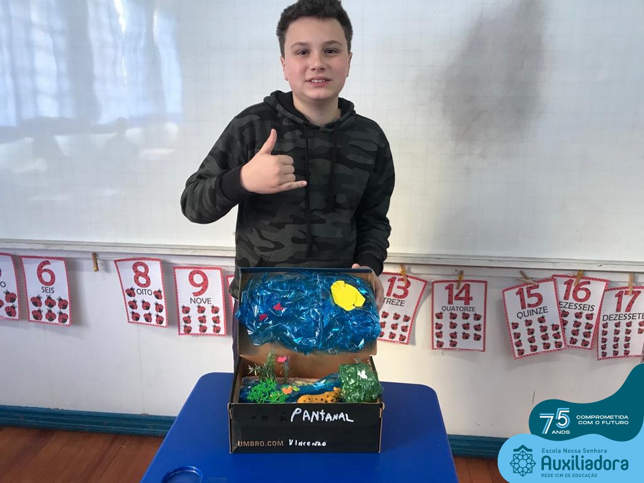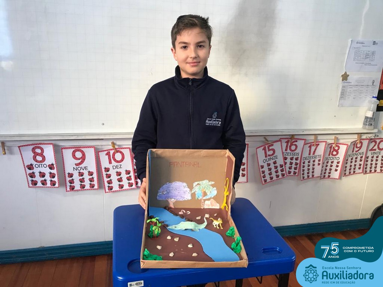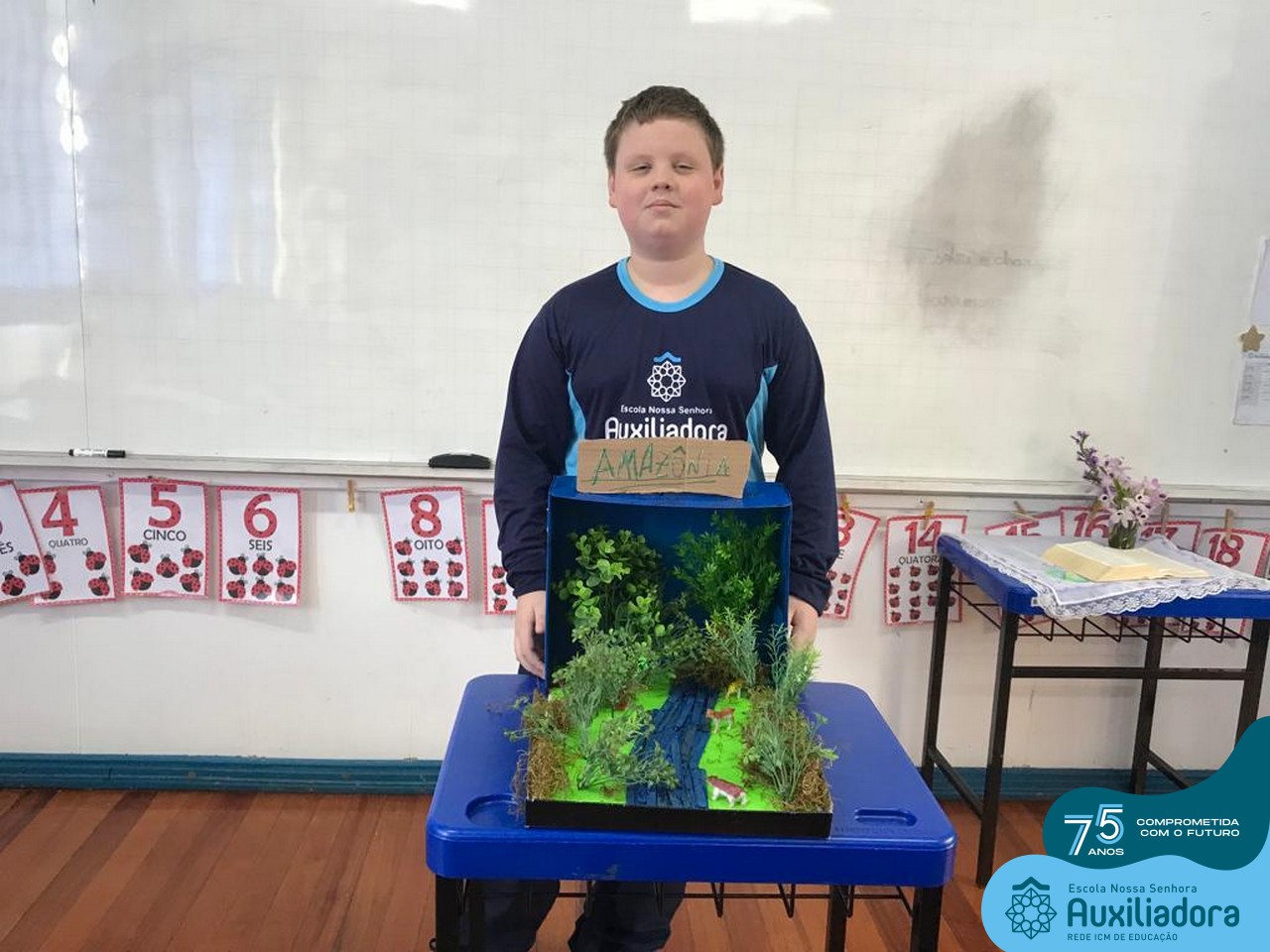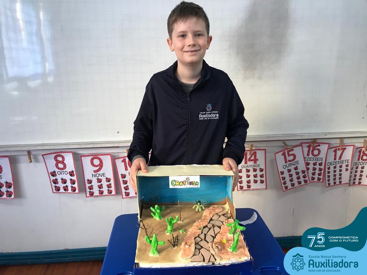 As turmas de 5º Ano estudaram os biomas brasileiros e depois de conhecer as características específicas de cada um deles, construíram em caixas um dos seis biomas do Brasil.