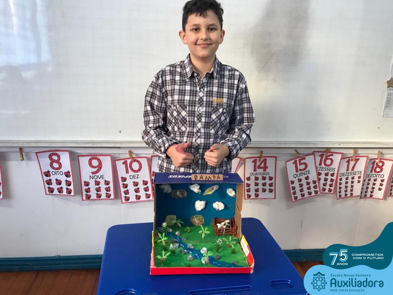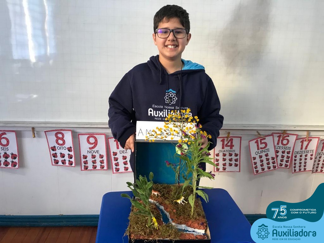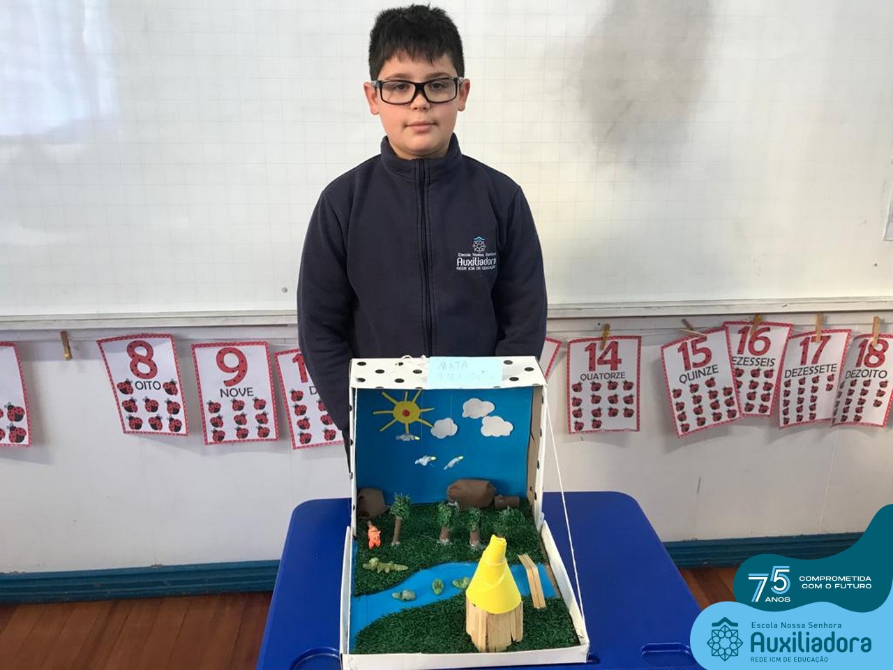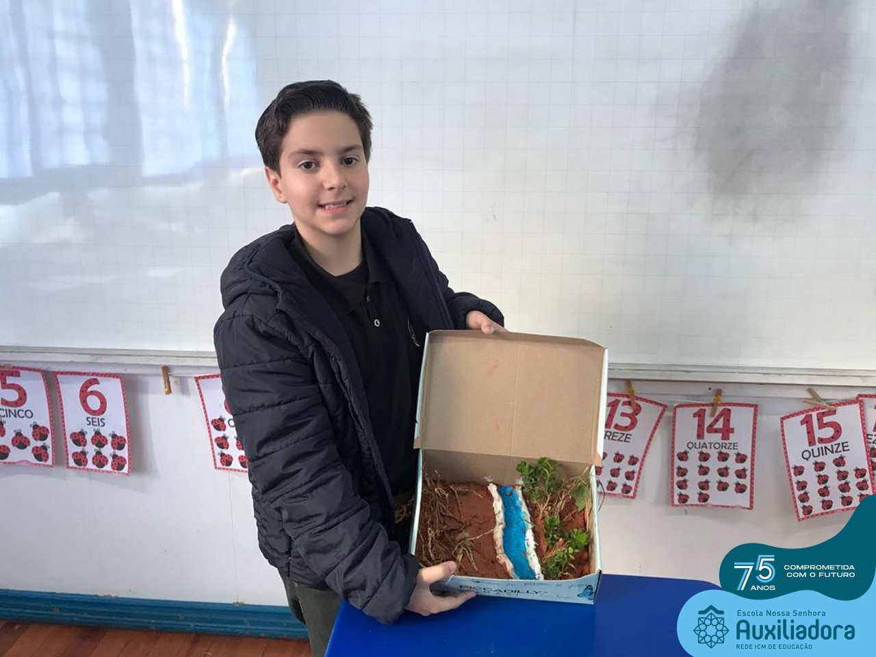 As turmas de 5º Ano estudaram os biomas brasileiros e depois de conhecer as características específicas de cada um deles, construíram em caixas um dos seis biomas do Brasil.