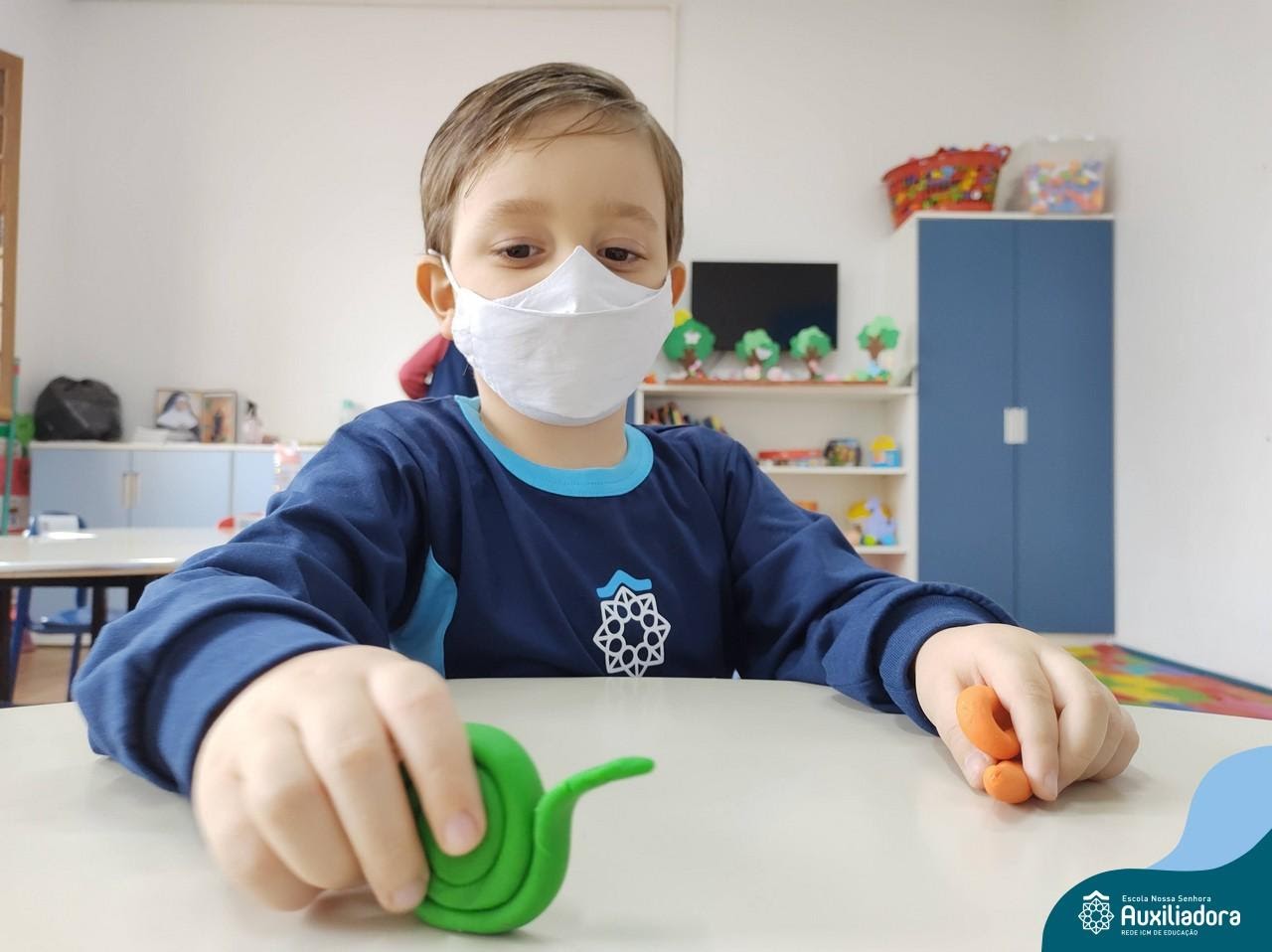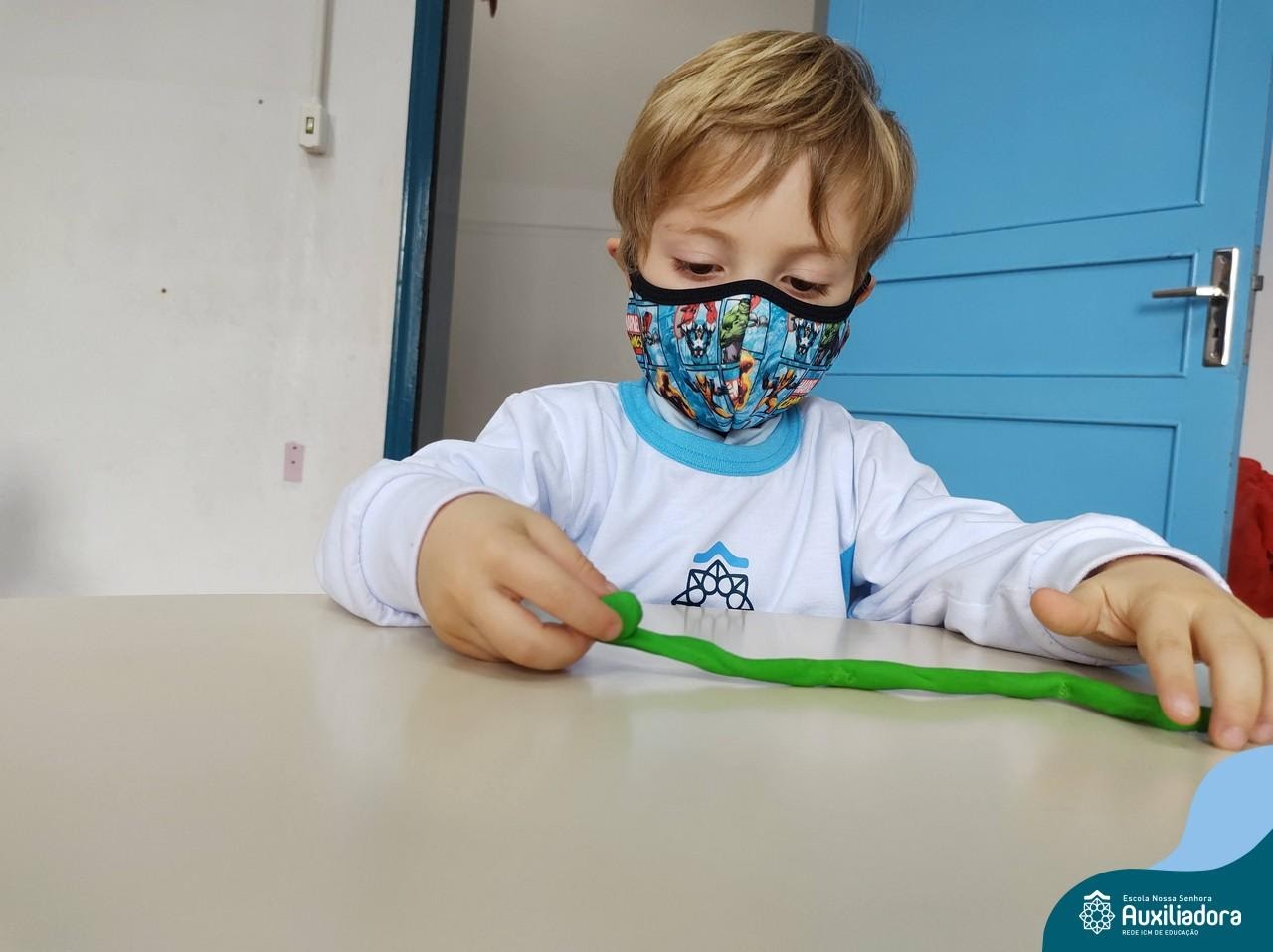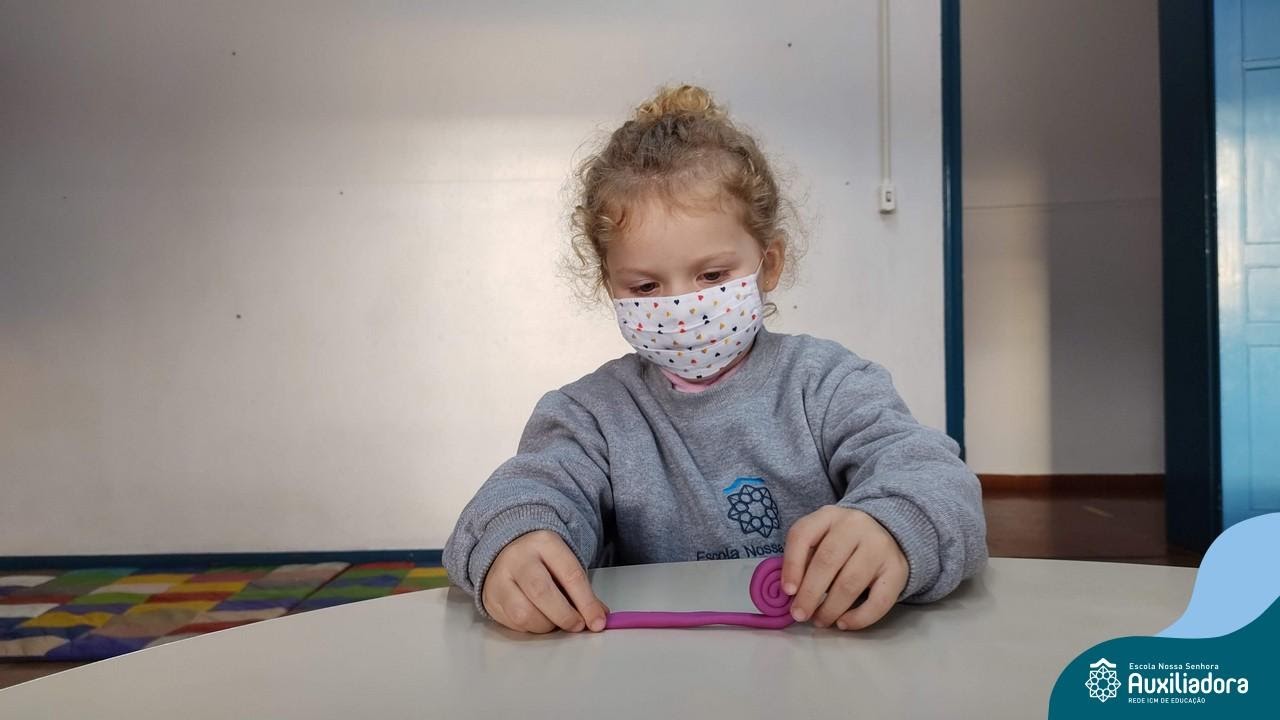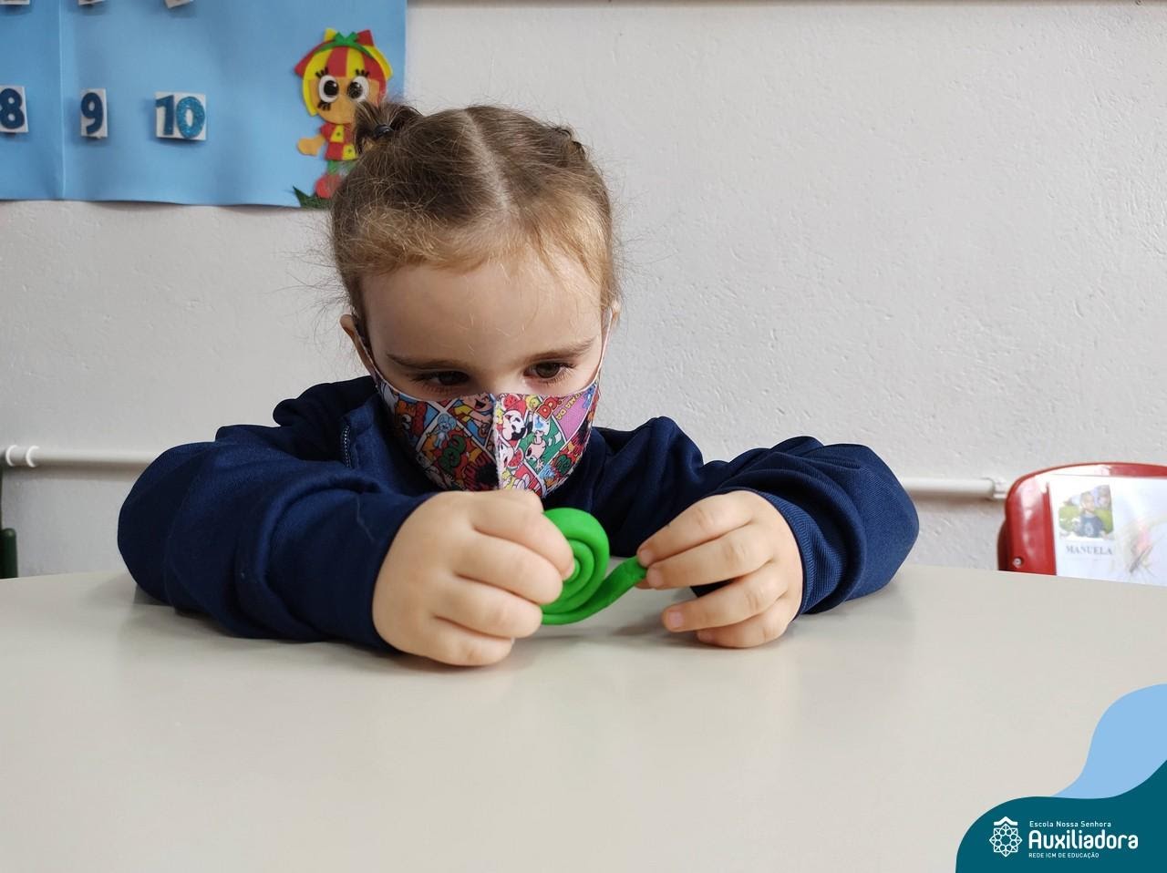O manuseio da massinha de modelar tem como objetivo desenvolver a coordenação motora fina, a criatividade, concentração, oralidade, apresentar e descobrir novas formas, cores, texturas, sensações e movimentos, desenvolvendo também a socialização dos pequenos.