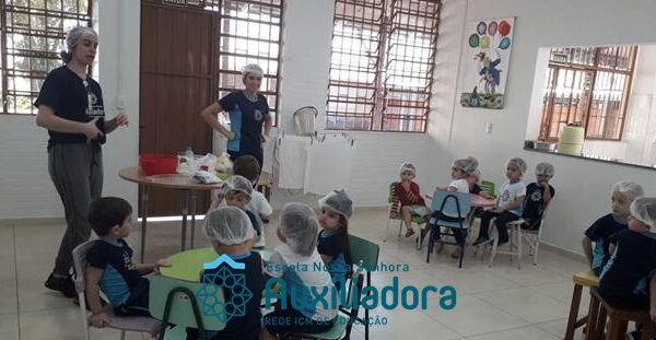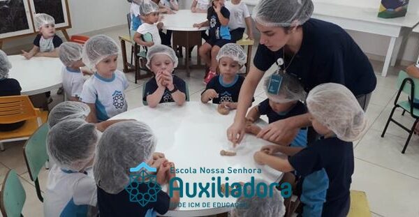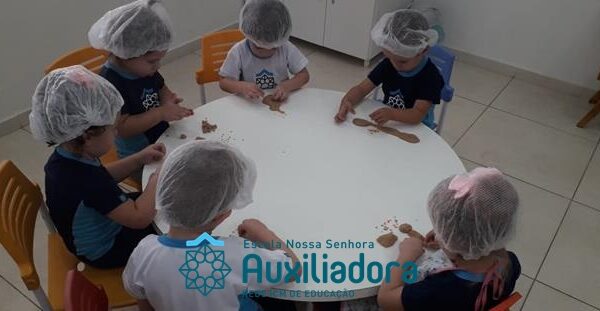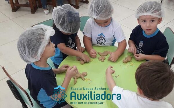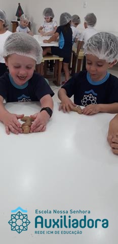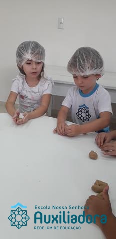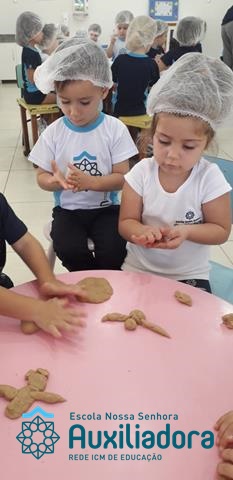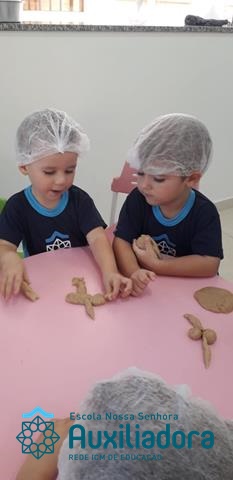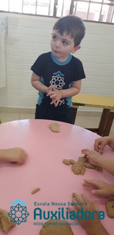 As crianças do Maternal 2 se divertiram modelando o seu boneco de massa e conhecendo a receita com a qual o mesmo foi construído. 👩🏫Profe Ana Paula e 👩🏫Profe Tais. Diversão e aprendizado andam juntos durante as aulas no Auxiliadora. 😍