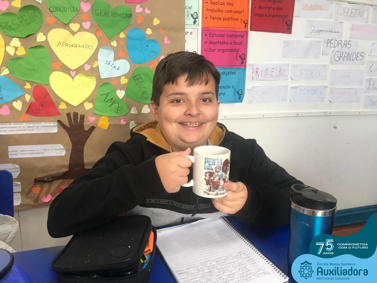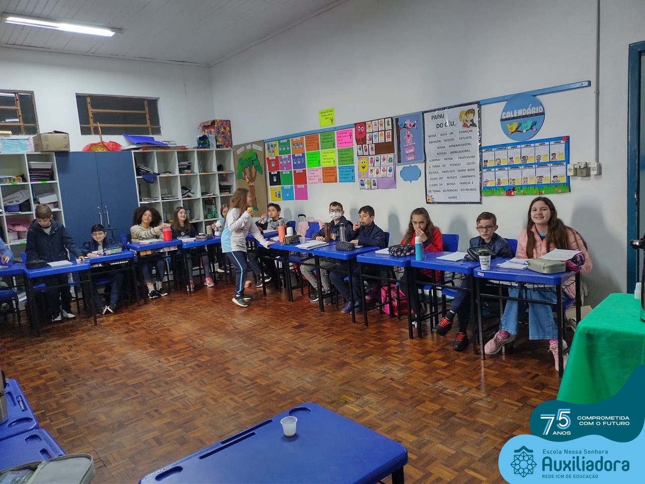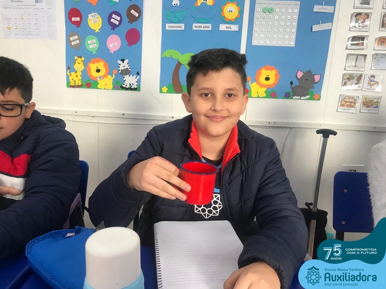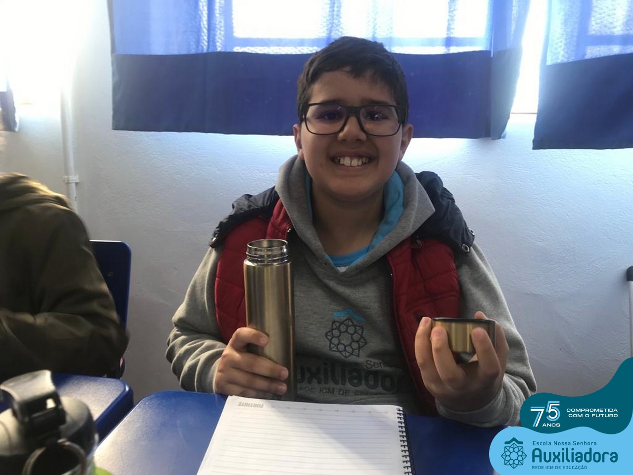 Na segunda-feira os alunos do 5 ano participaram do Café Filosófico, que é um momento em que os alunos falam sobre as problemáticas sociais e elencam soluções para estes enquanto tomam um café!