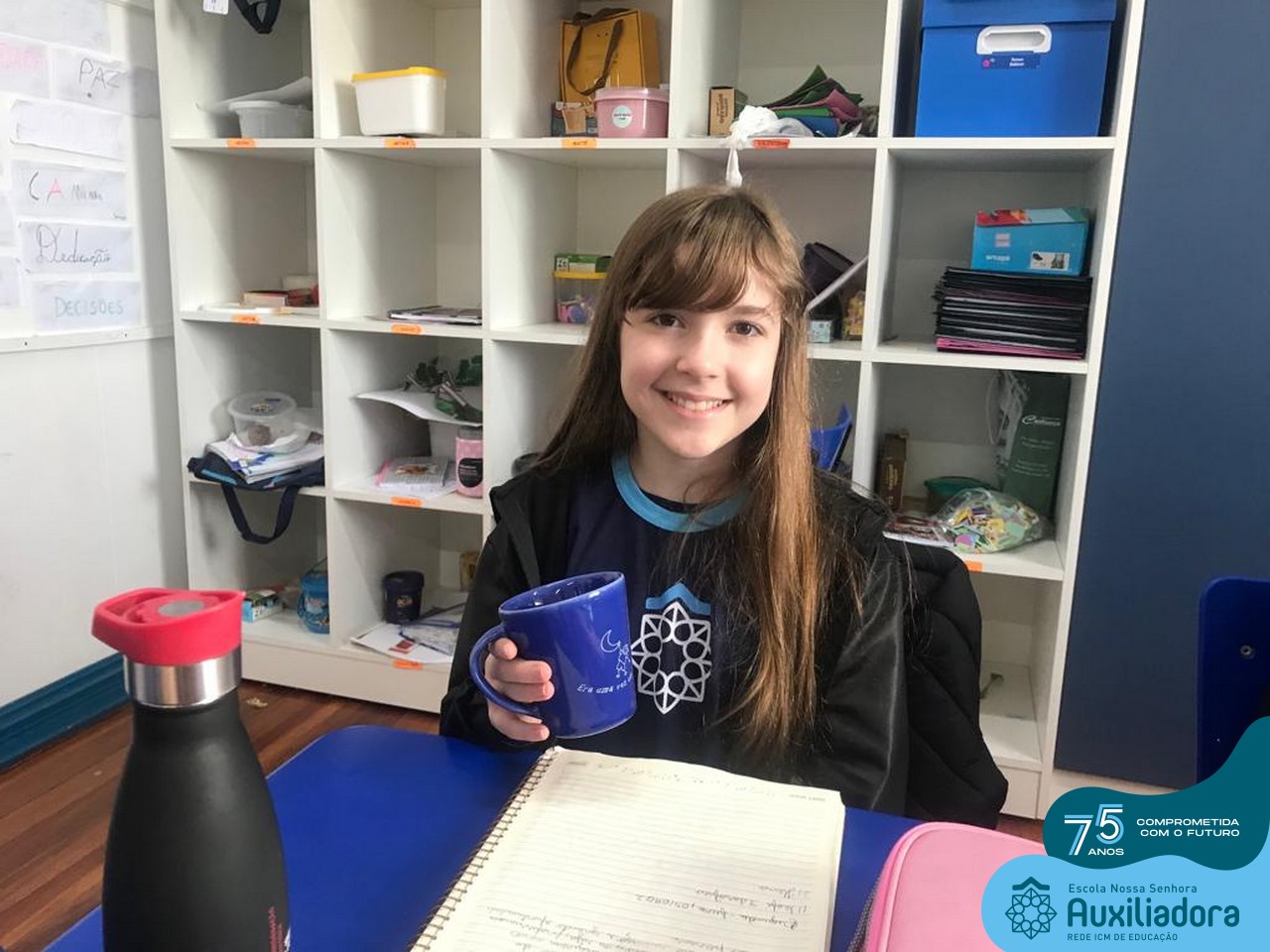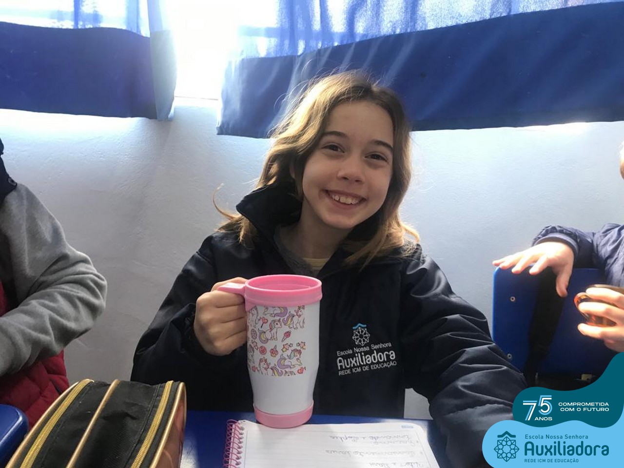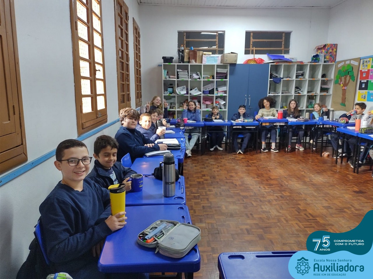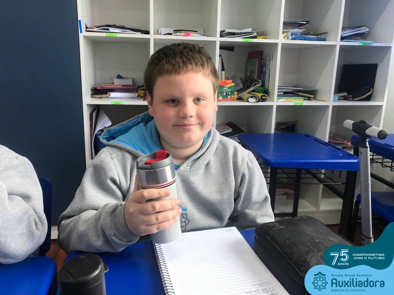 Na segunda-feira os alunos do 5 ano participaram do Café Filosófico, que é um momento em que os alunos falam sobre as problemáticas sociais e elencam soluções para estes enquanto tomam um café!