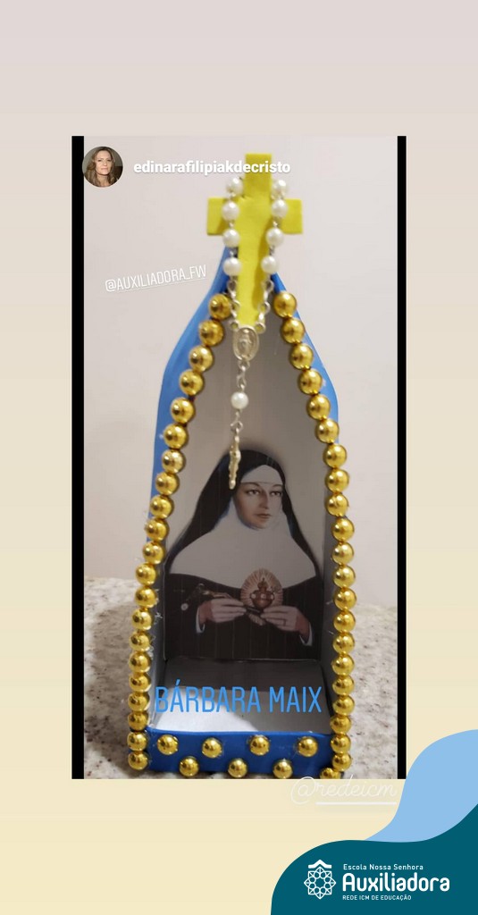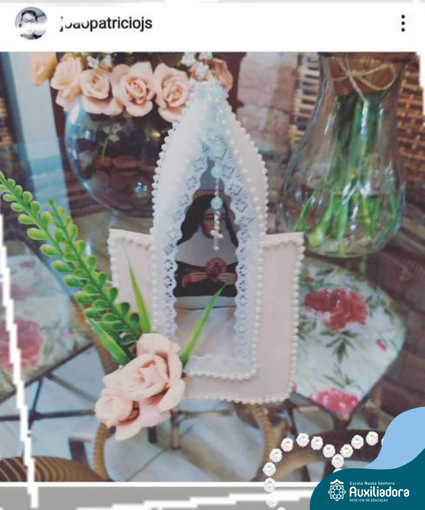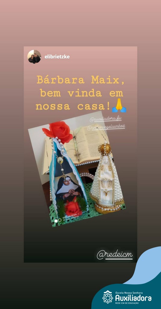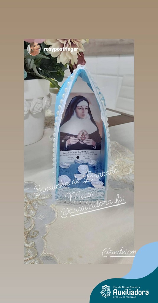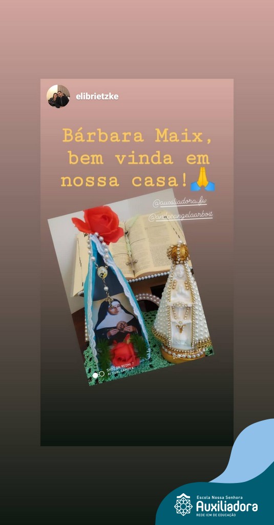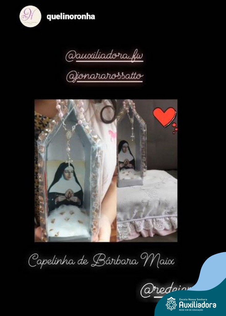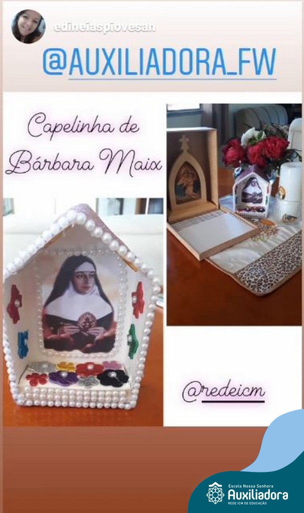 Estamos participando com nosso trabalho pastoral relembrando a Capelinha de Bárbara Maix que todo ano visitava as casas das famílias de nossos alunos. 🏠🧕