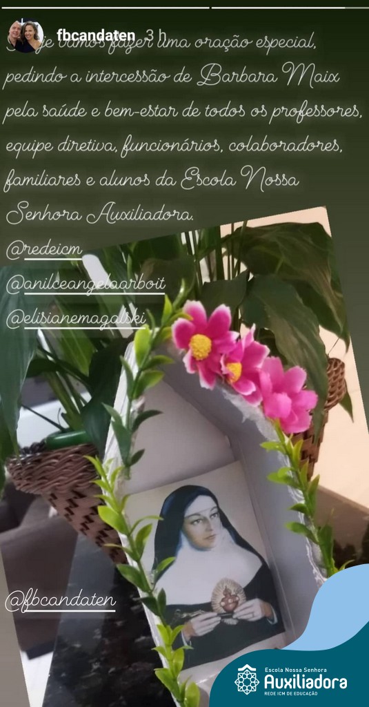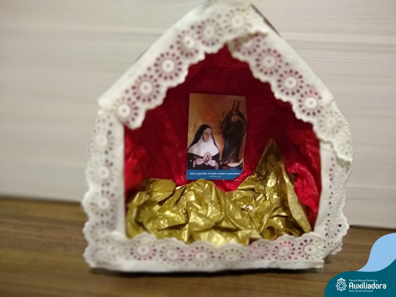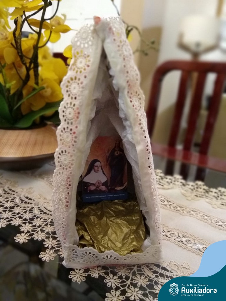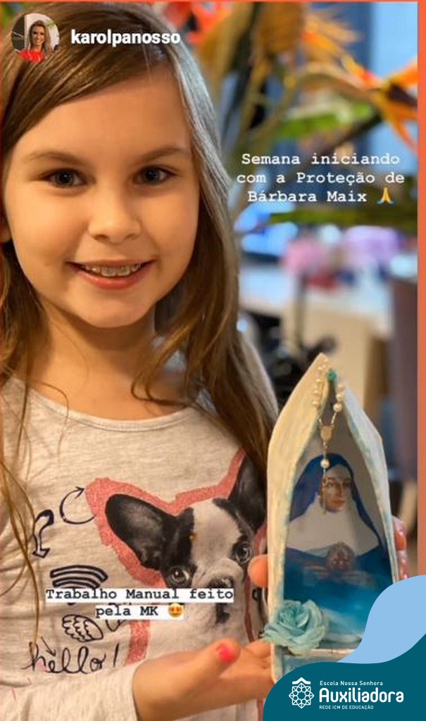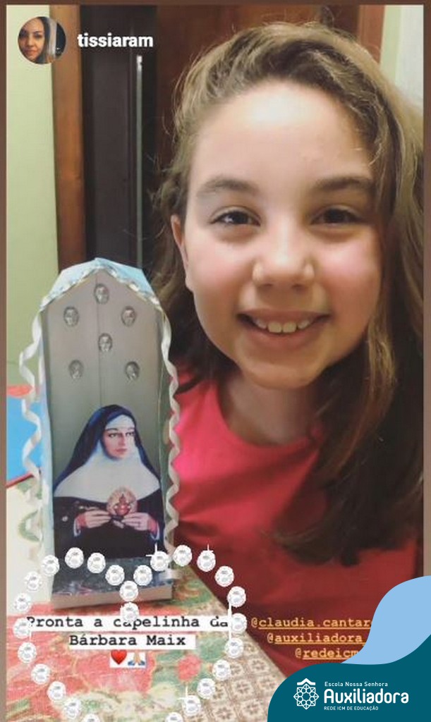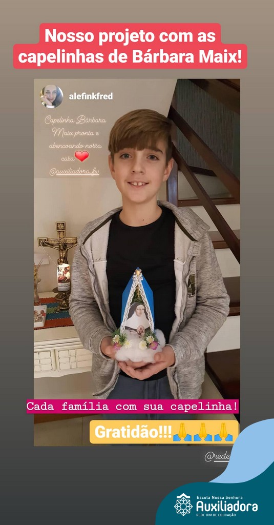 Estamos participando com nosso trabalho pastoral relembrando a Capelinha de Bárbara Maix que todo ano visitava as casas das famílias de nossos alunos. 🏠🧕