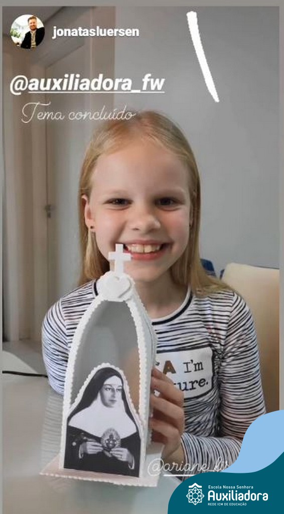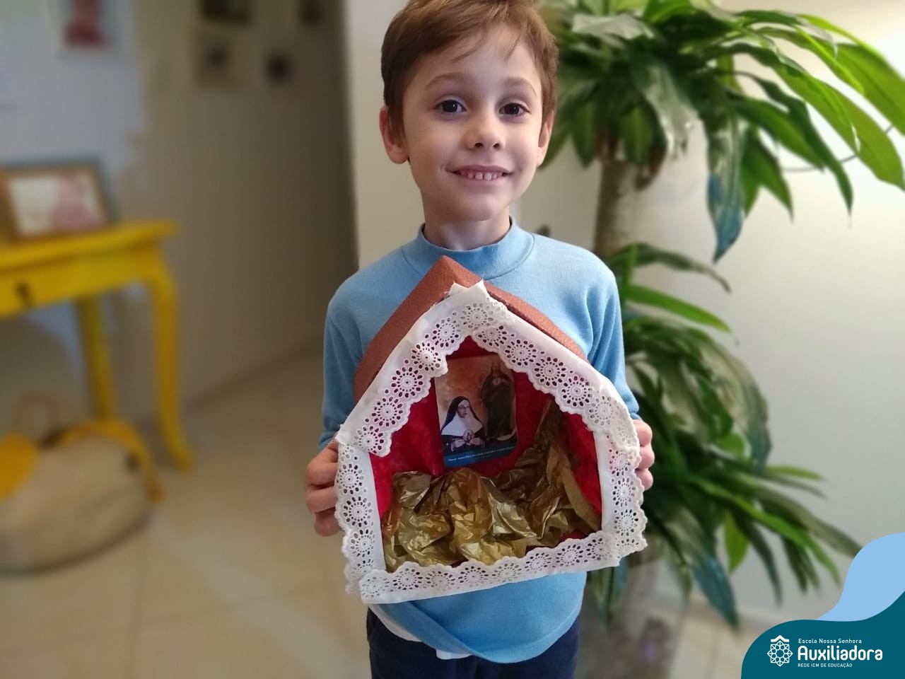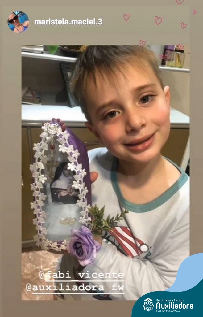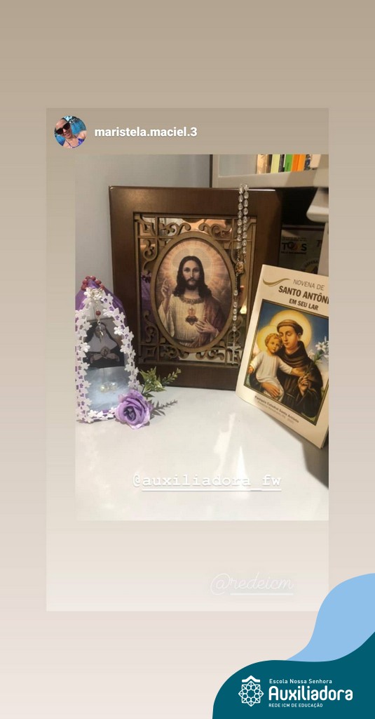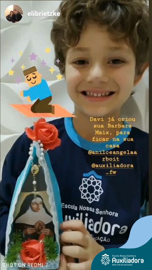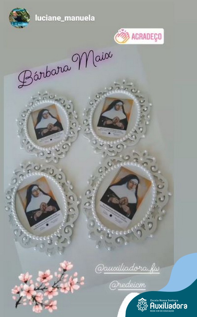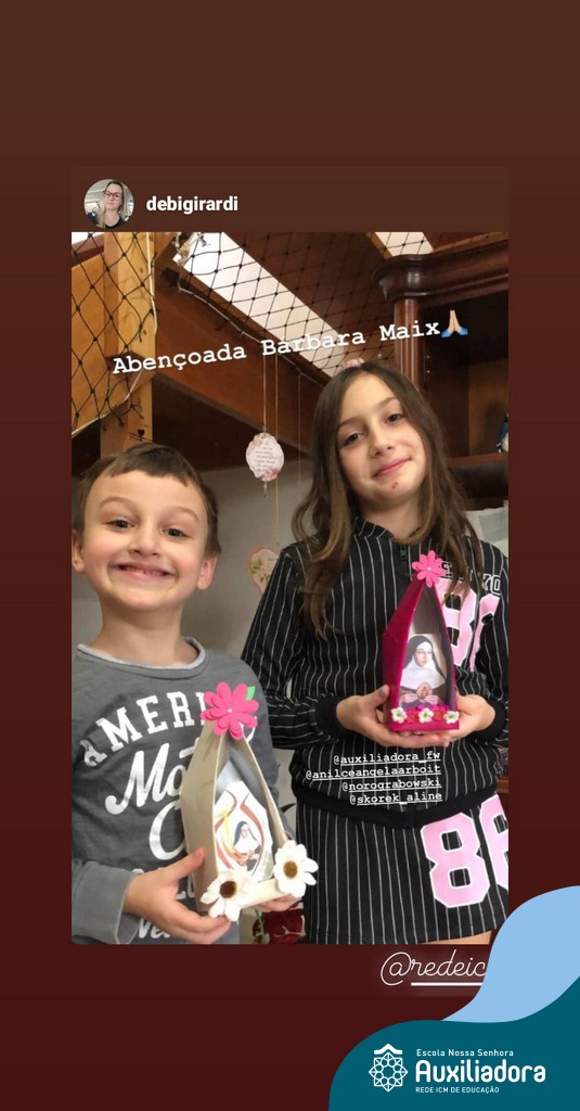 Estamos participando com nosso trabalho pastoral relembrando a Capelinha de Bárbara Maix que todo ano visitava as casas das famílias de nossos alunos. 🏠🧕
