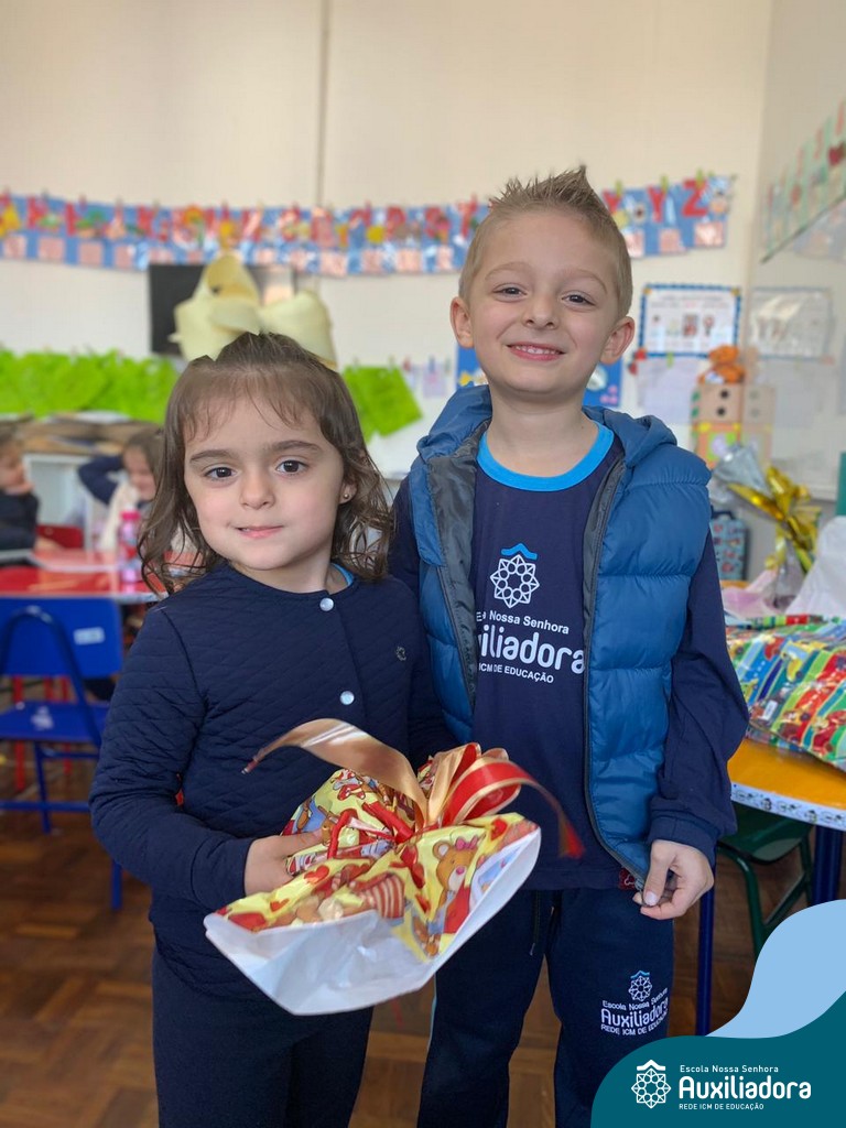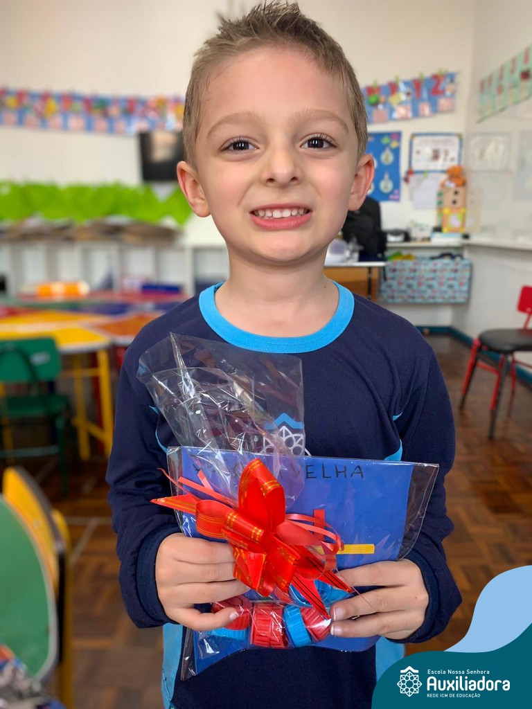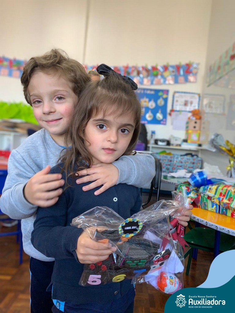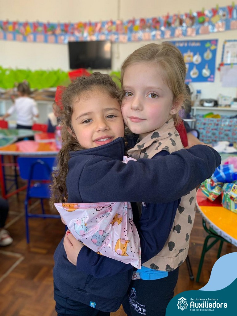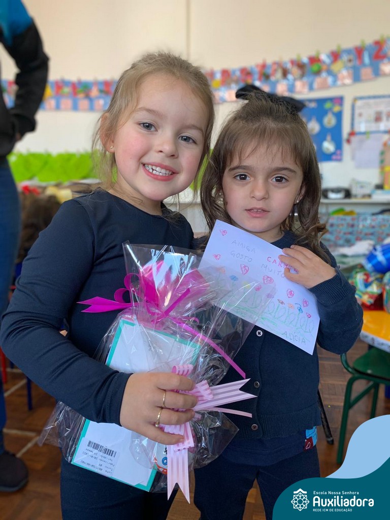 Neste dia do Amigo a turma do Pré 1 celebrou a amizade com uma deliciosa confraternização e também com a revelação de um divertido amigo secreto. Desta vez os presentes foram confeccionados pelos próprios alunos e famílias.