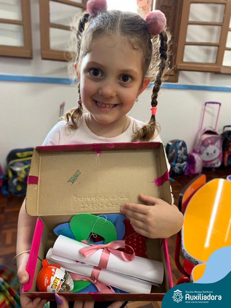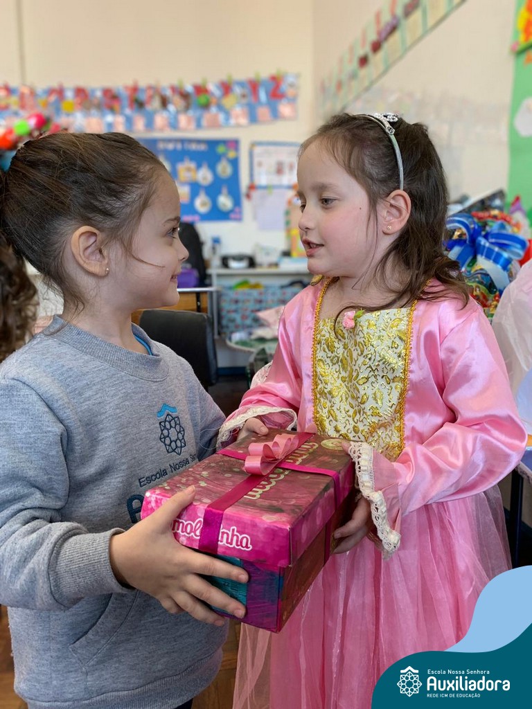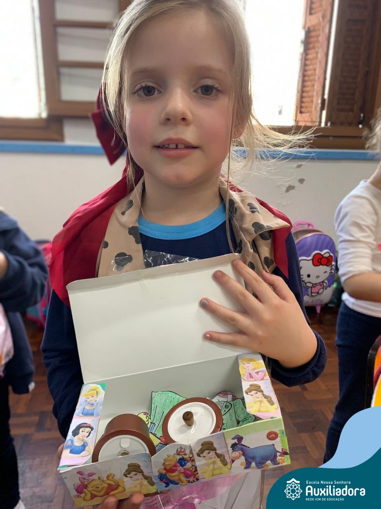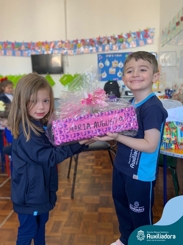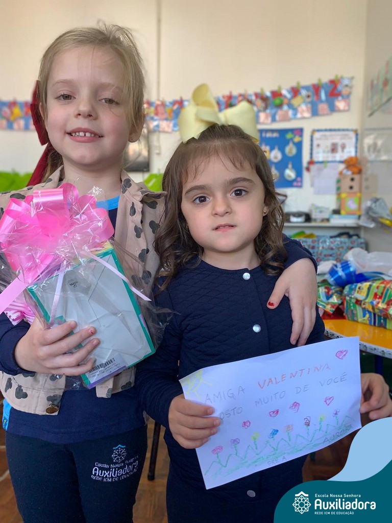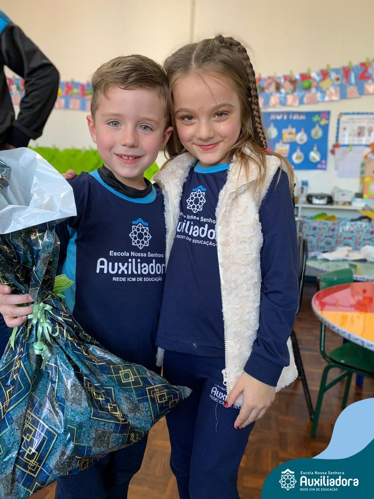 Neste dia do Amigo a turma do Pré 1 celebrou a amizade com uma deliciosa confraternização e também com a revelação de um divertido amigo secreto. Desta vez os presentes foram confeccionados pelos próprios alunos e famílias.