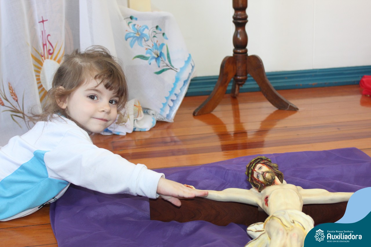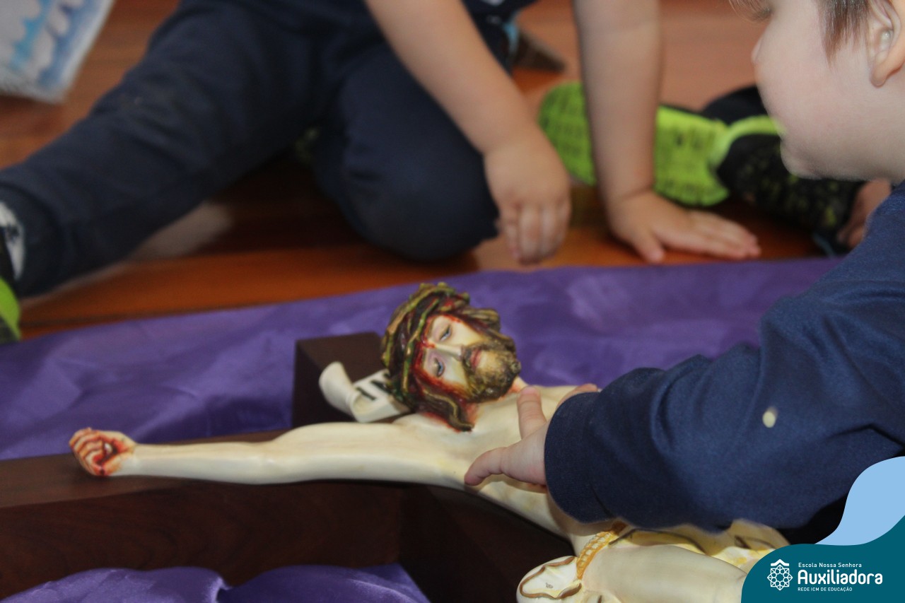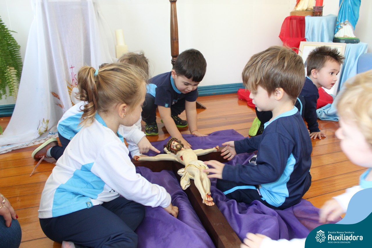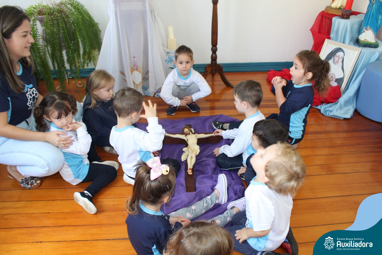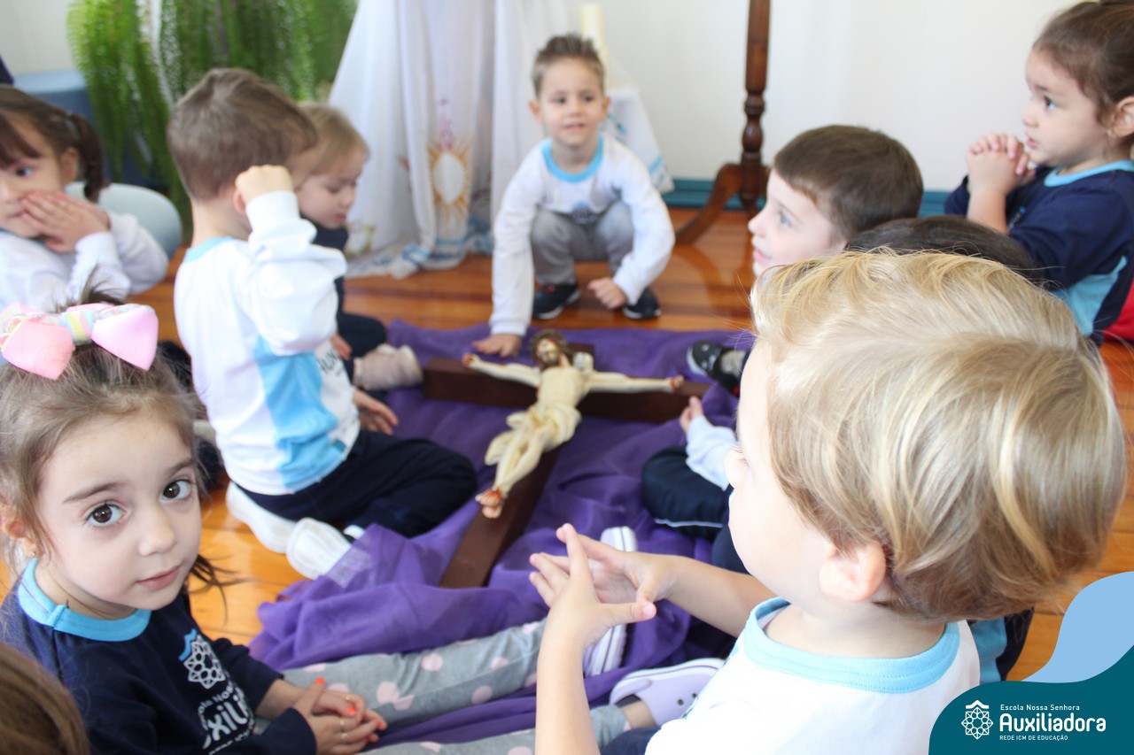 Celebrando o verdadeiro sentido da Páscoa. Muitas orações e reflexões na capela da escola.