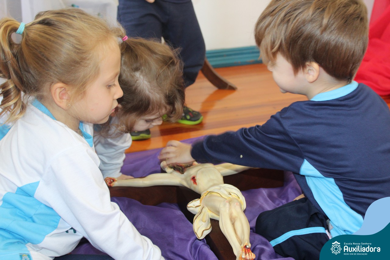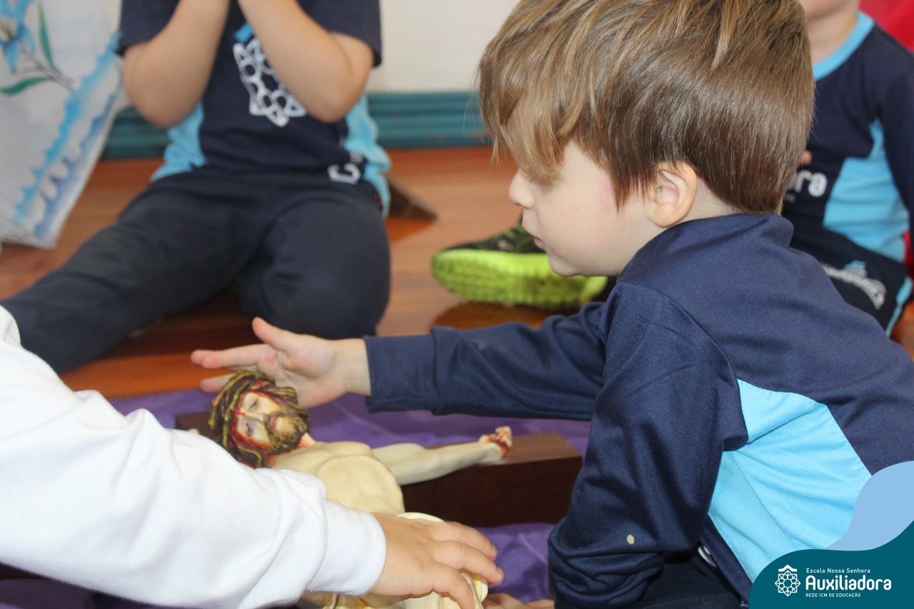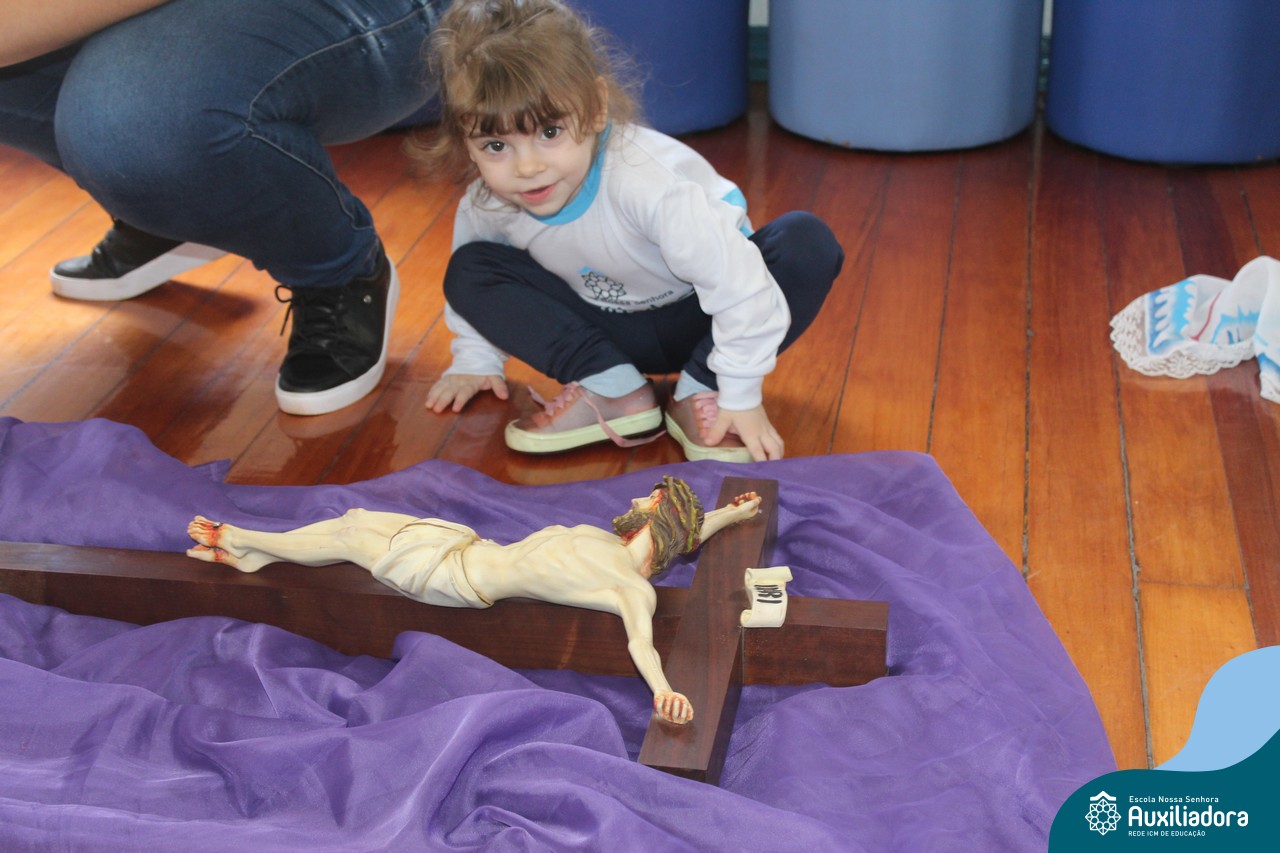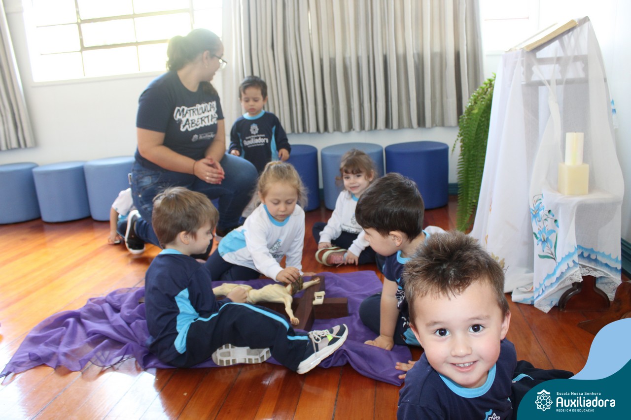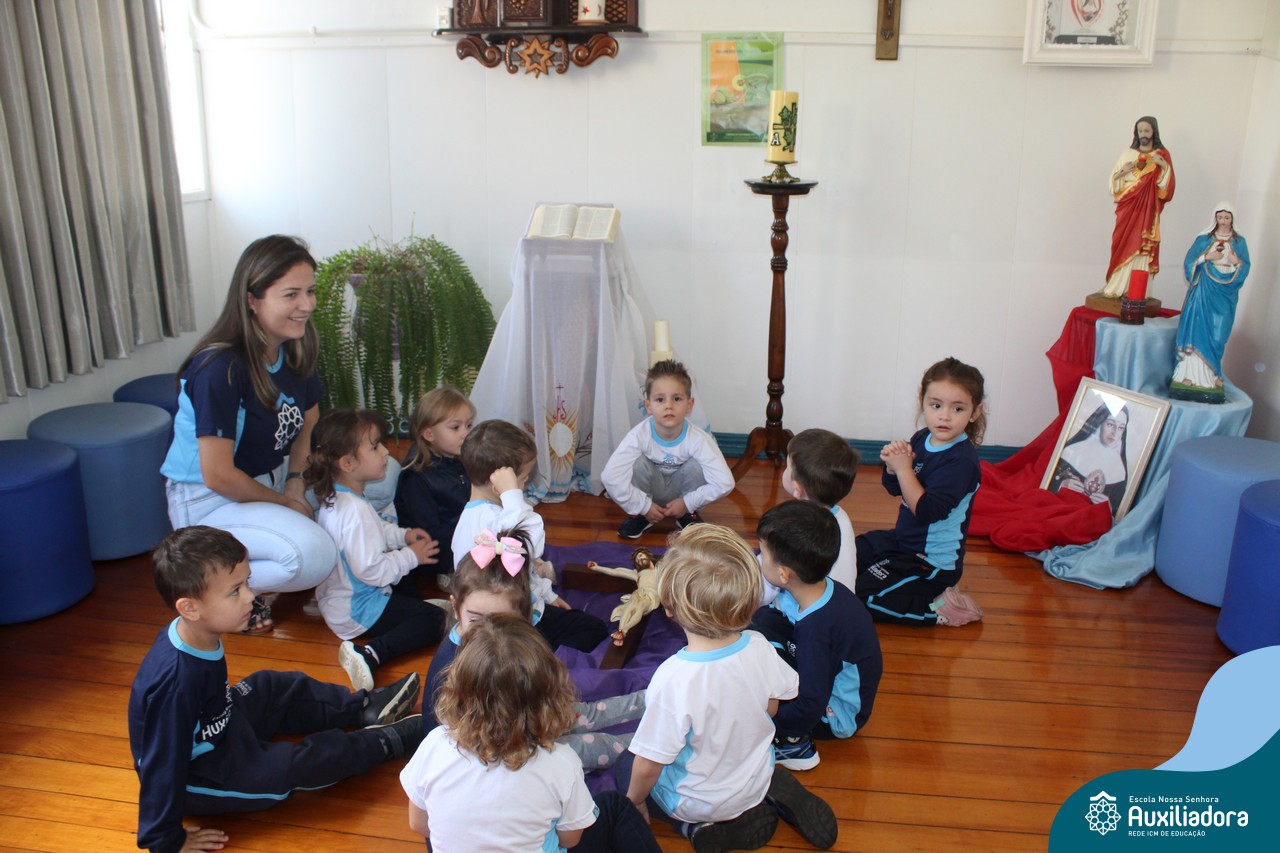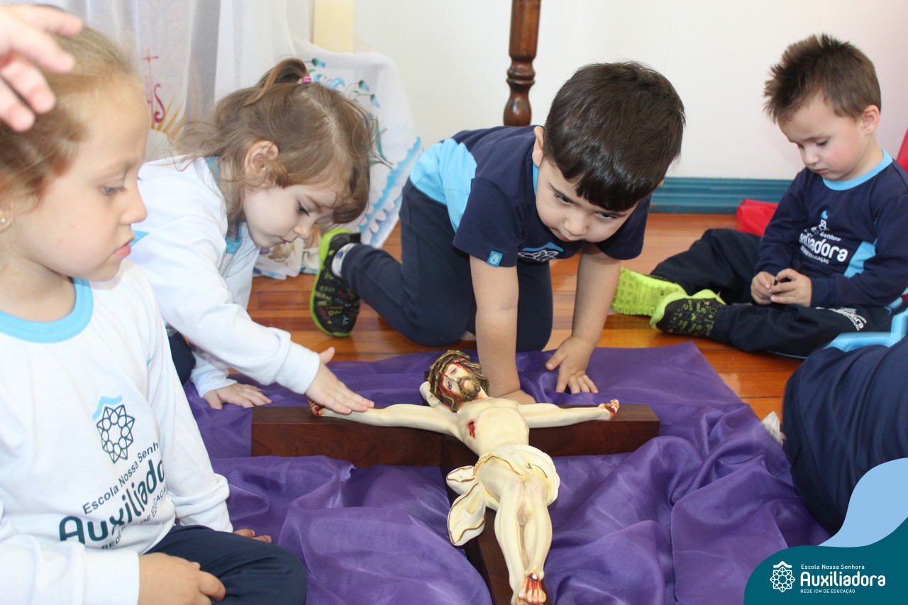 Celebrando o verdadeiro sentido da Páscoa. Muitas orações e reflexões na capela da escola.