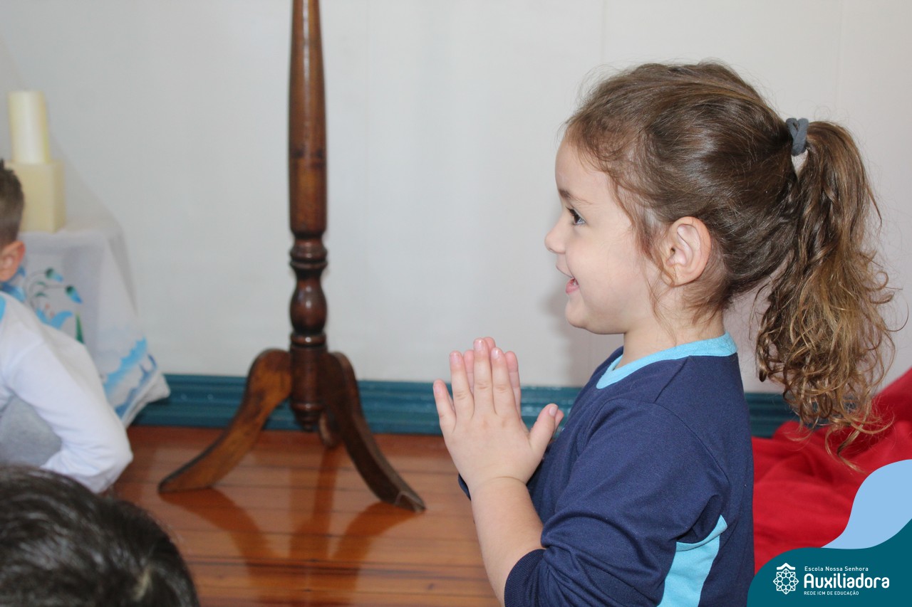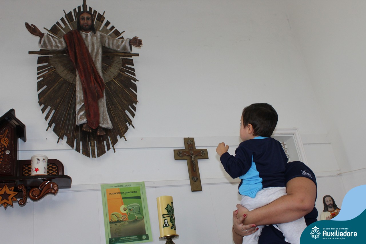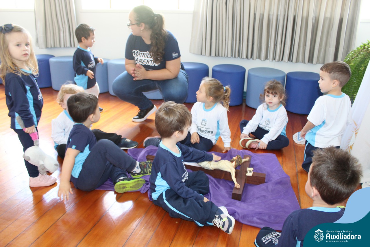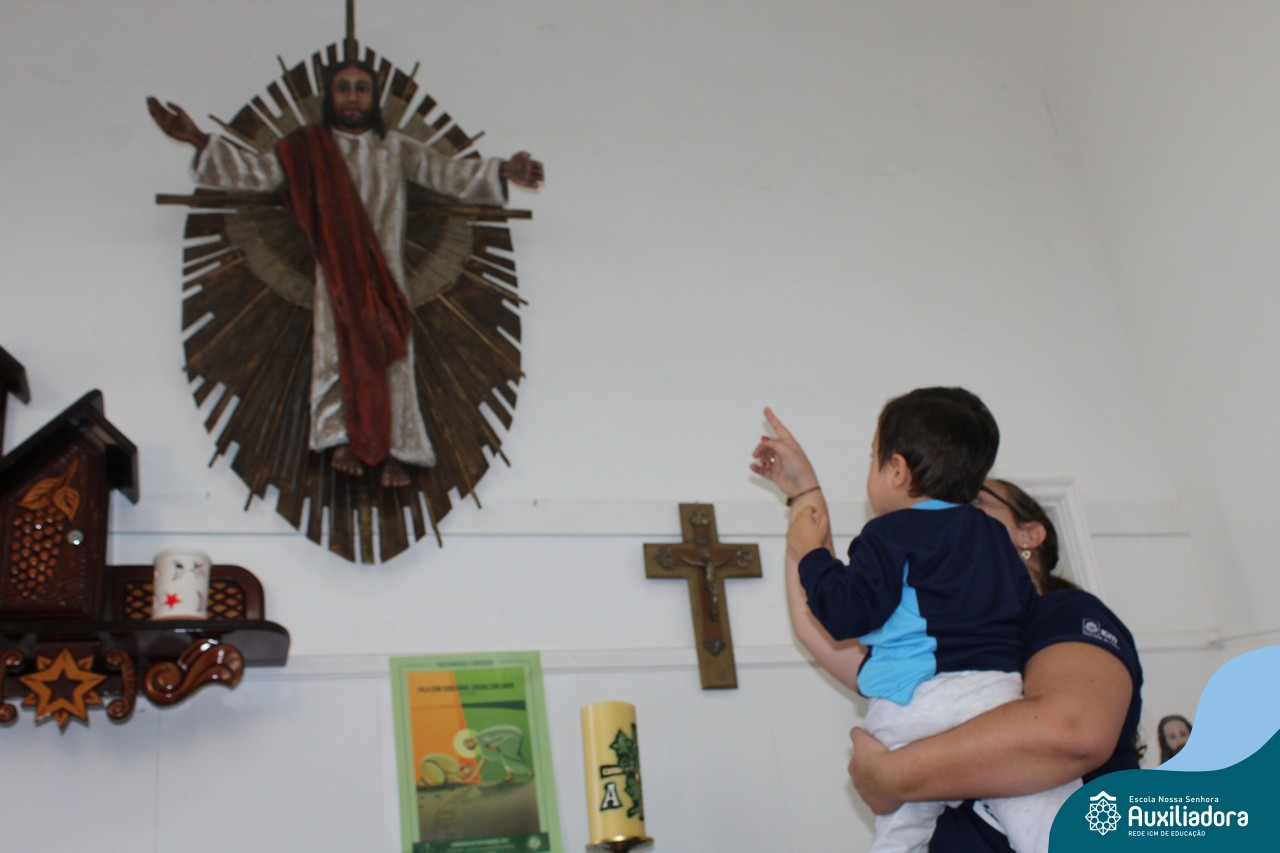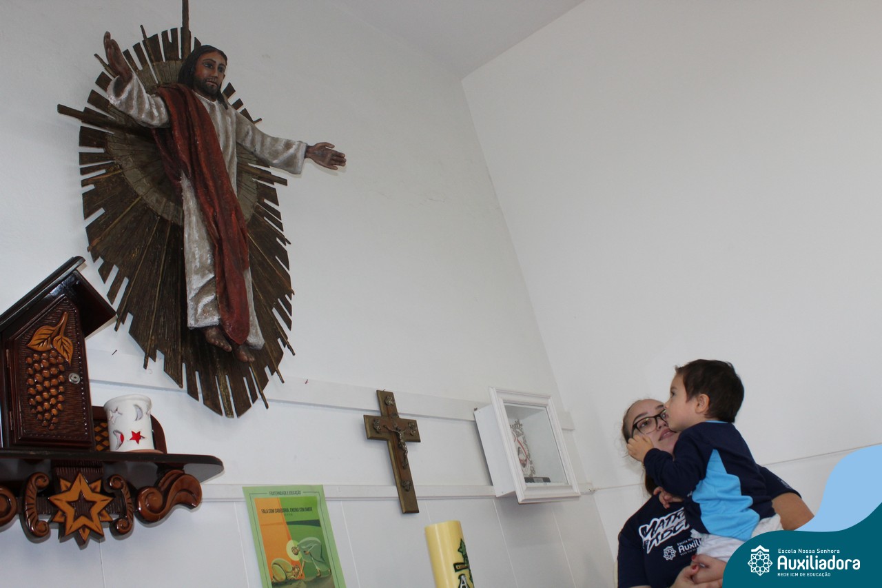 Celebrando o verdadeiro sentido da Páscoa. Muitas orações e reflexões na capela da escola.