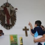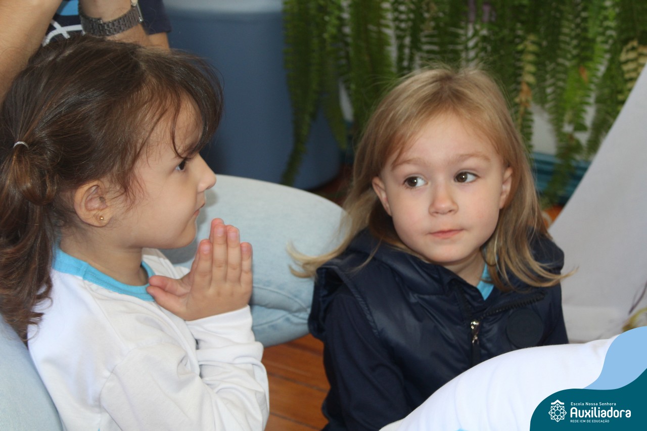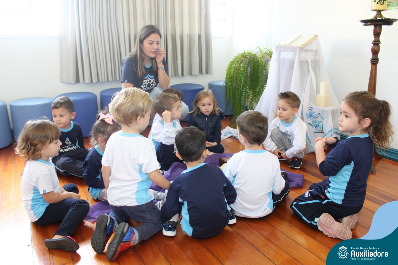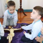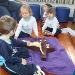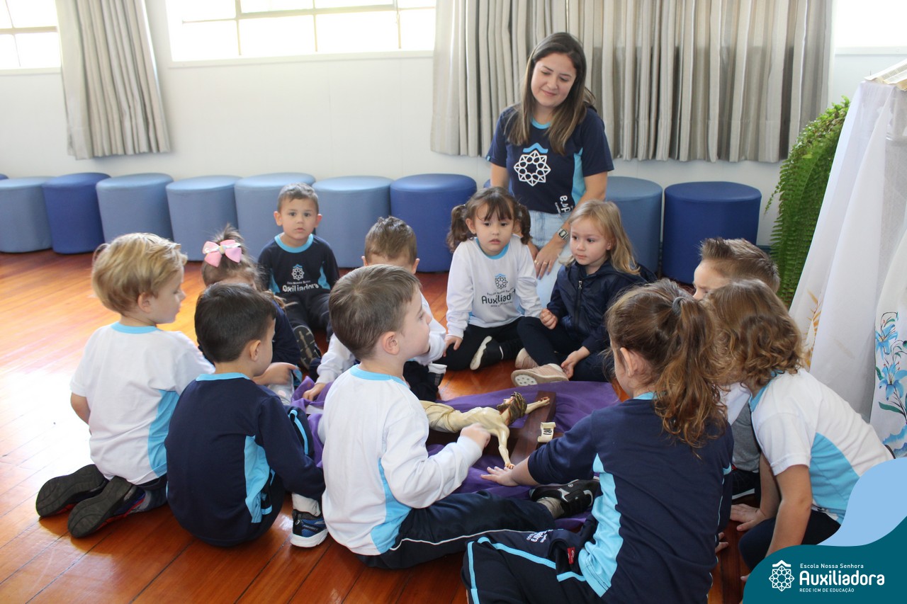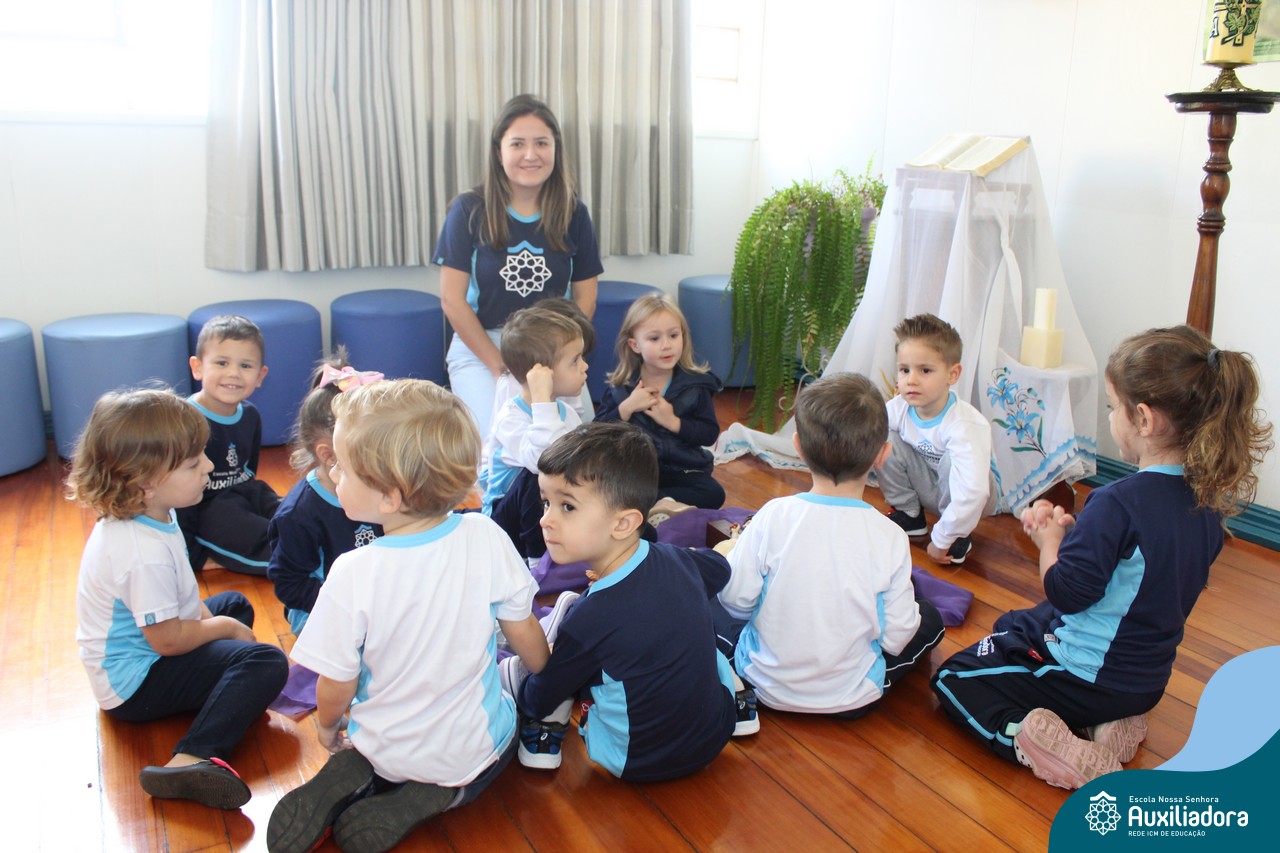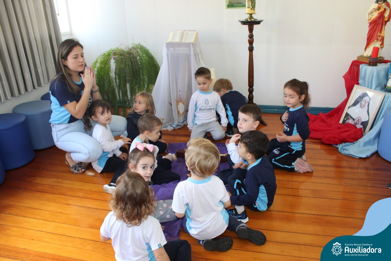 Celebrando o verdadeiro sentido da Páscoa. Muitas orações e reflexões na capela da escola.