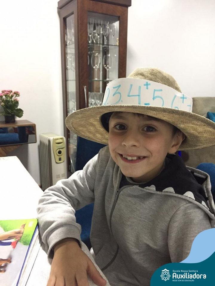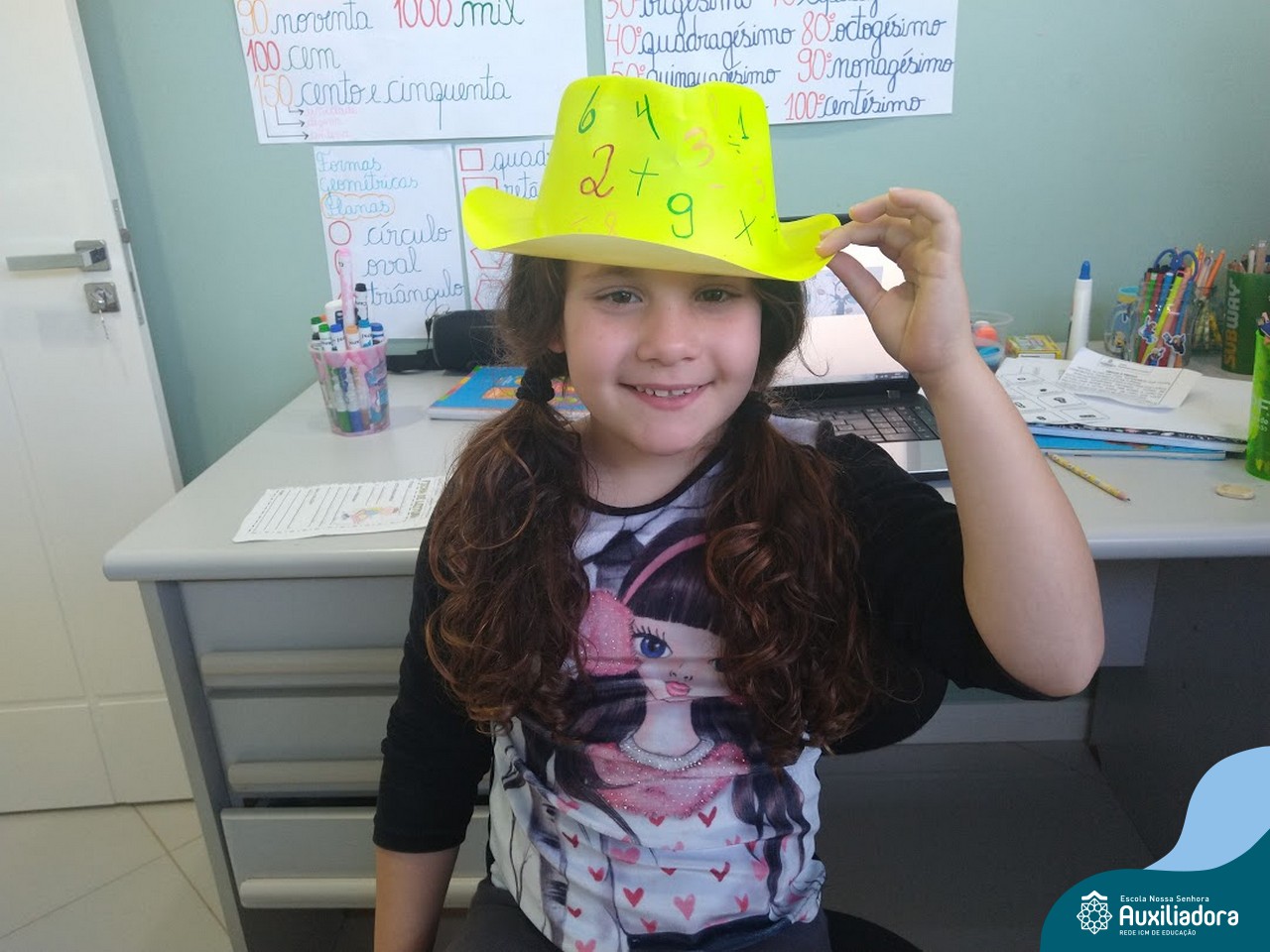 😍🎩No feriadão, a turma do 2º ano 21 recebeu a missão de confeccionar um chapéu matemático para o Quiz.