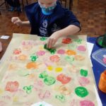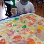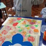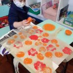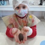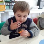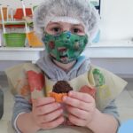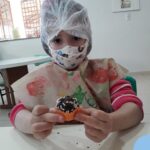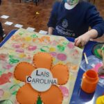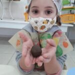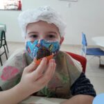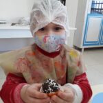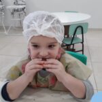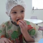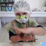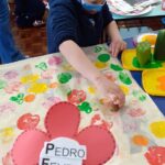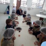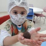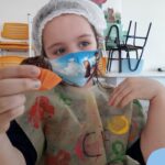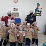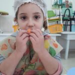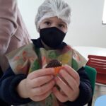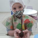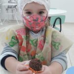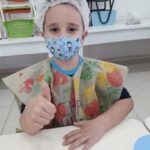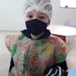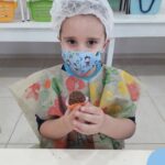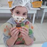 Em nosso projeto de Iniciação Científica 2021 dentre muitas frutas e legumes trabalhadas e investigadas (nomes, vogais, quantidades, classificações, texturas…) confeccionamos lindos aventais, utilizando frutas e legumes para realizarmos as decorações no avental com o intuito de usa-lo para a confecção dos docinhos de batata doce e para ajudar a mamãe em casa na preparação de alimentos saudáveis.