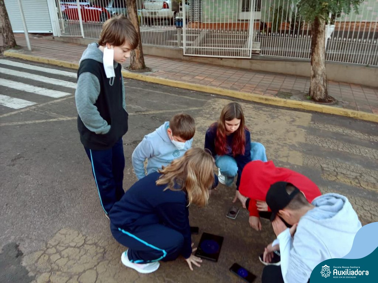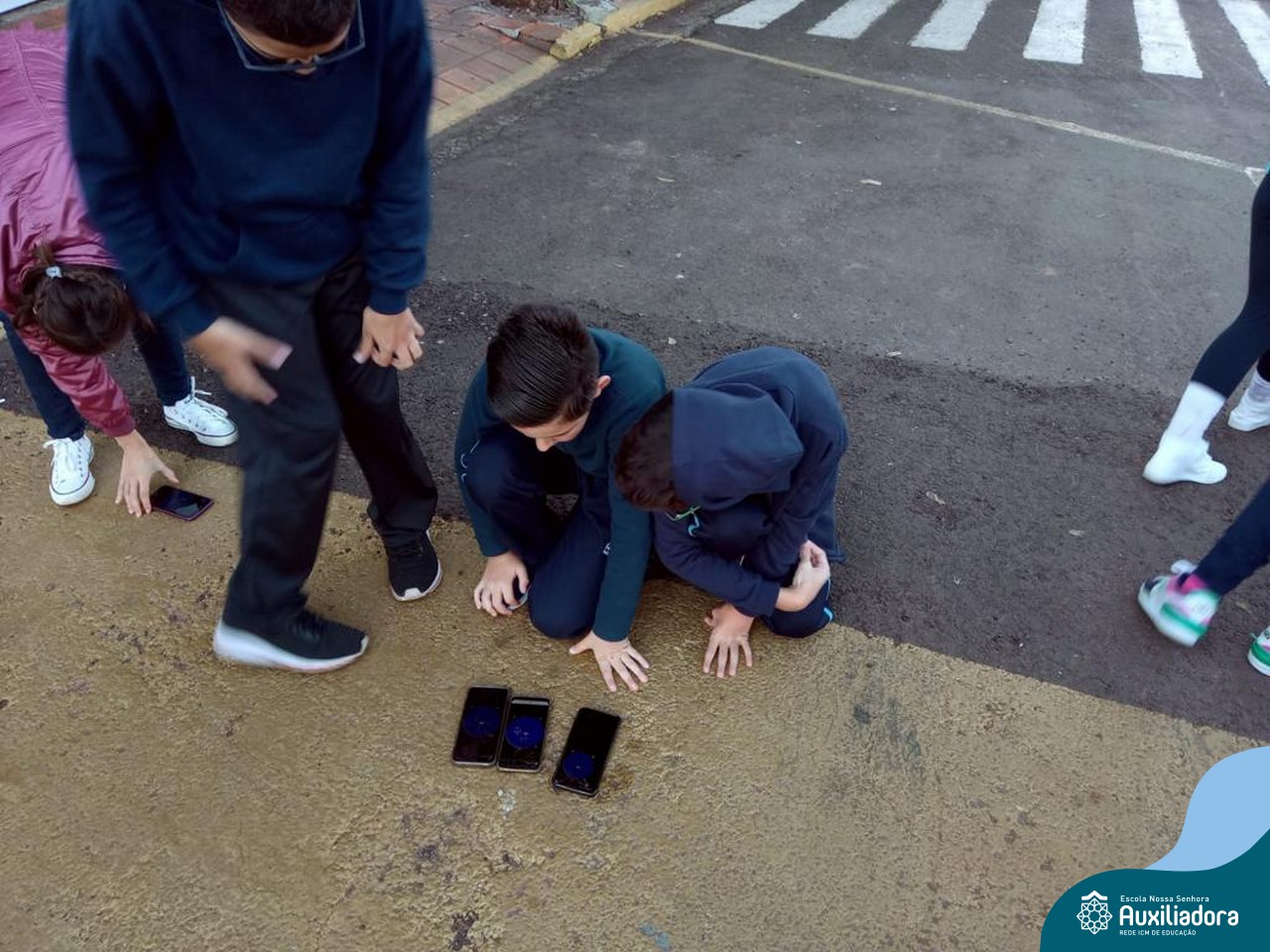 Para facilitar o processo de ensino aprendizagem, os alunos do 6° ano utilizaram o aplicativo Clinometer para introduzir os estudos sobre ângulos. Após realizarem um tour pelos entornos da escola foi possível visualizar na prática as inclinações das rampas e da rua do acesso principal. Essa prática auxilia o aluno no momento de interpretar uma situação problema e até mesmo para resolver problemas de seu dia a dia.