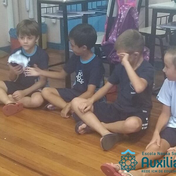 Ao conhecerem a história do coelho Felpo Filva as turmas do 3º ano visualizaram o quanto precisamos de empatia e respeito às diferenças nos relacionamentos com os colegas, amigos e familiares. Com a realização de uma dinâmica, cada aluno pode expressar situações em que se sentiu triste, magoado e solitário e, dessa forma, compartilhar do sentimento com o protagonista da história.