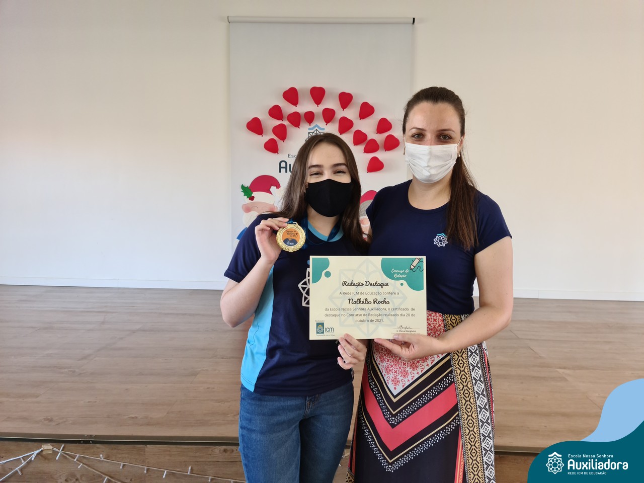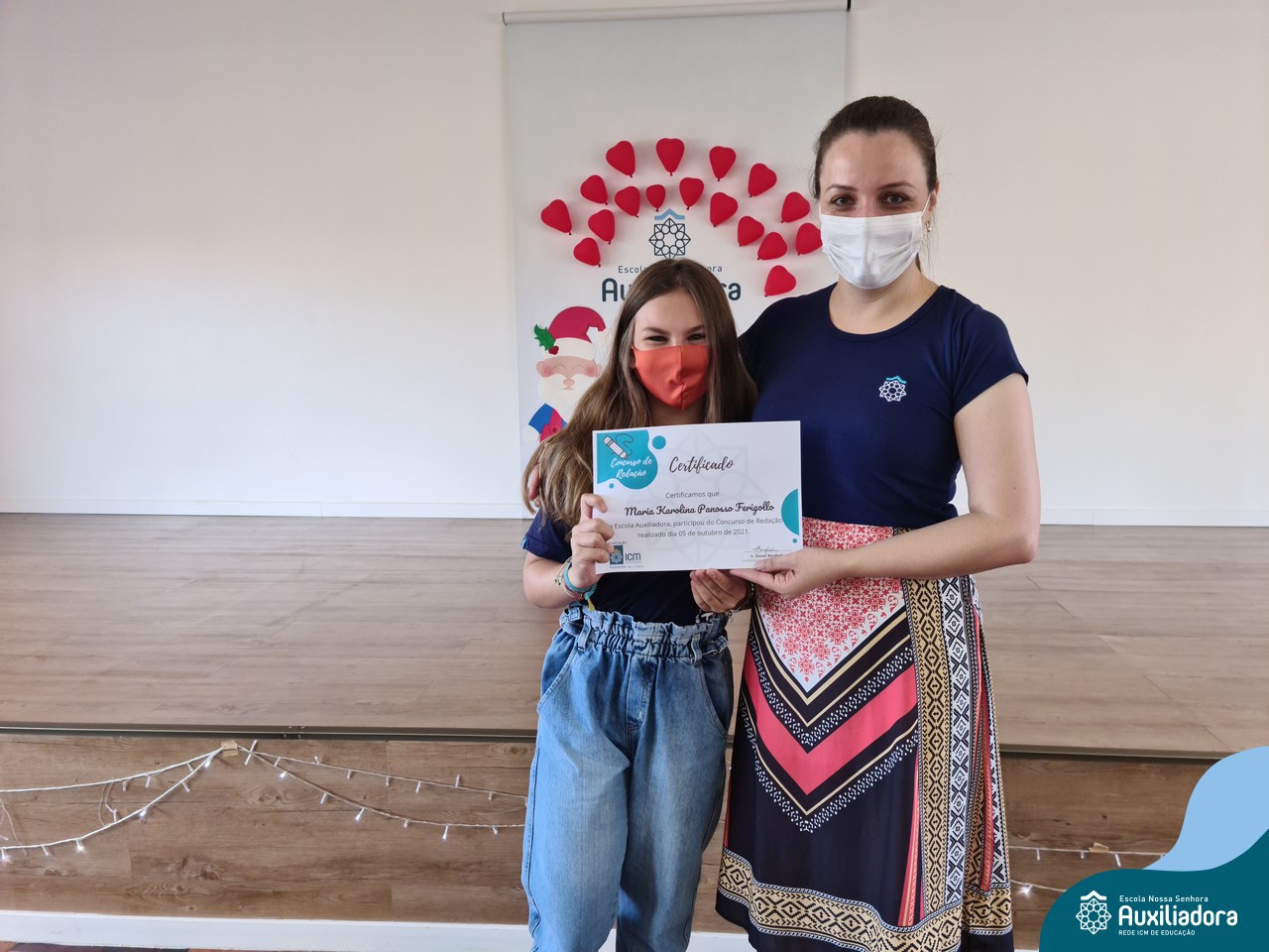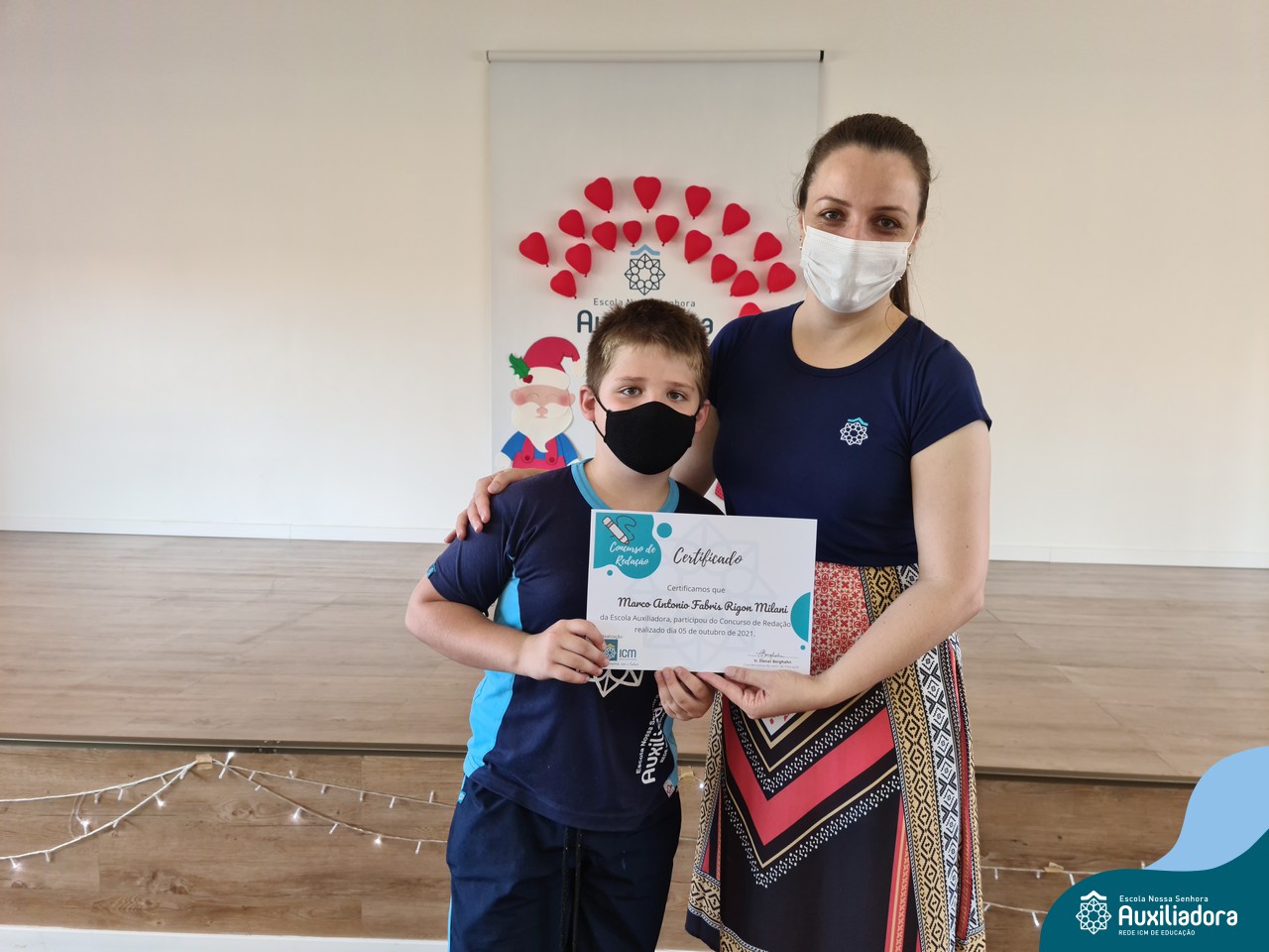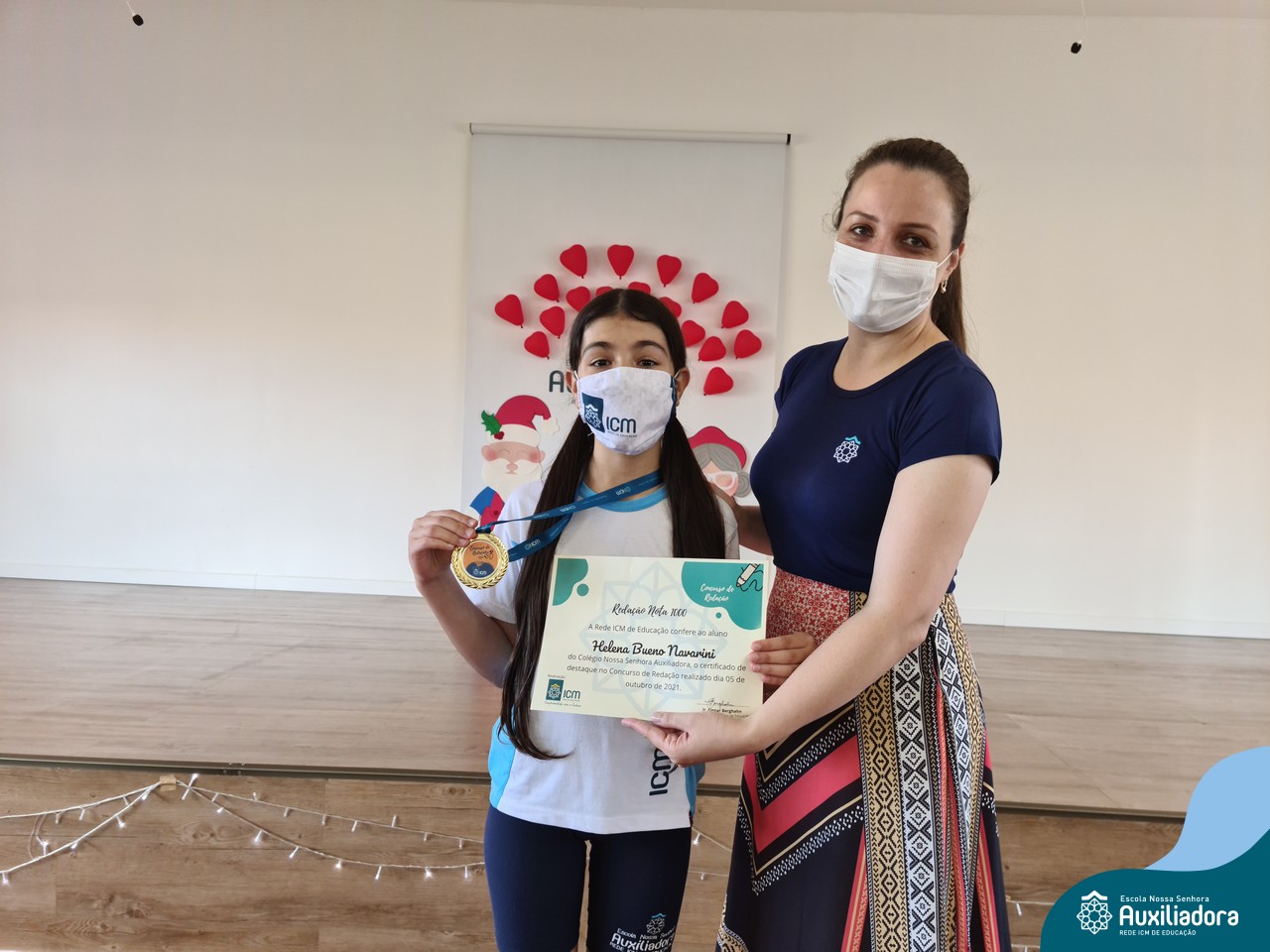 Nas turmas de 5º ano da Escola Nossa Senhora Auxiliadora, a aluna Lívia Maria Piaia recebeu medalha de destaque e a aluna Helena Bueno Navarini, recebeu nota mil dos professores avaliadores.