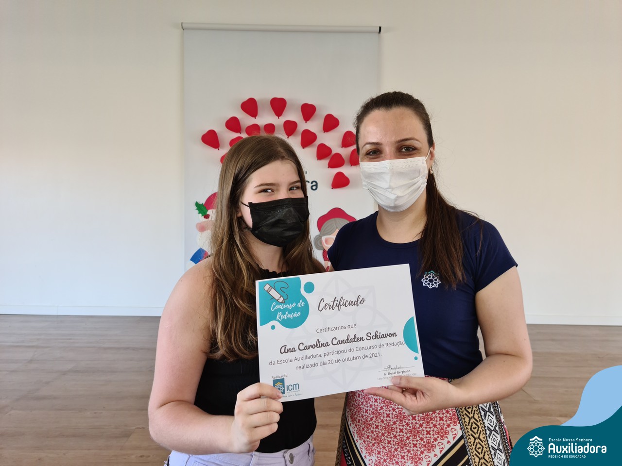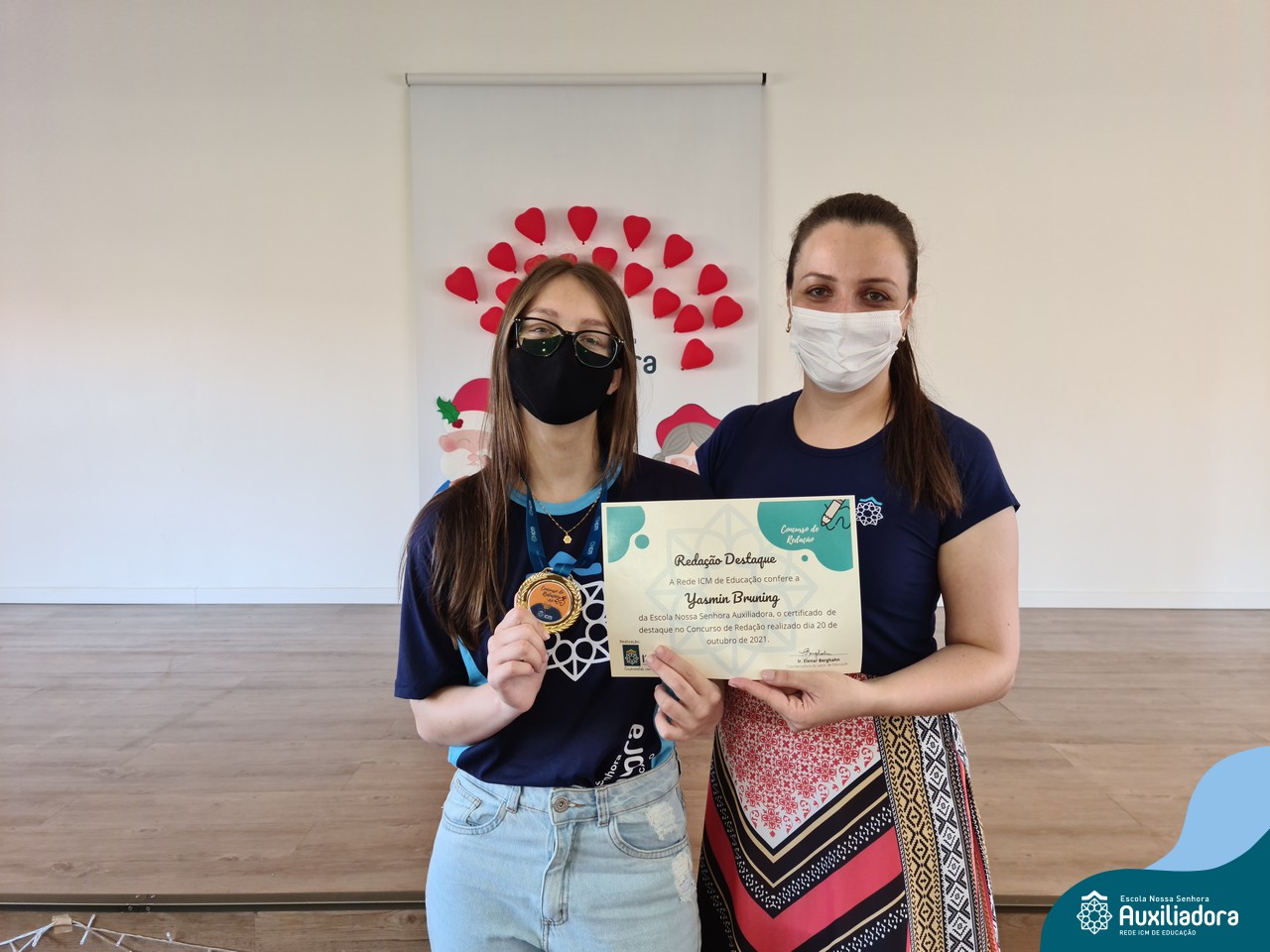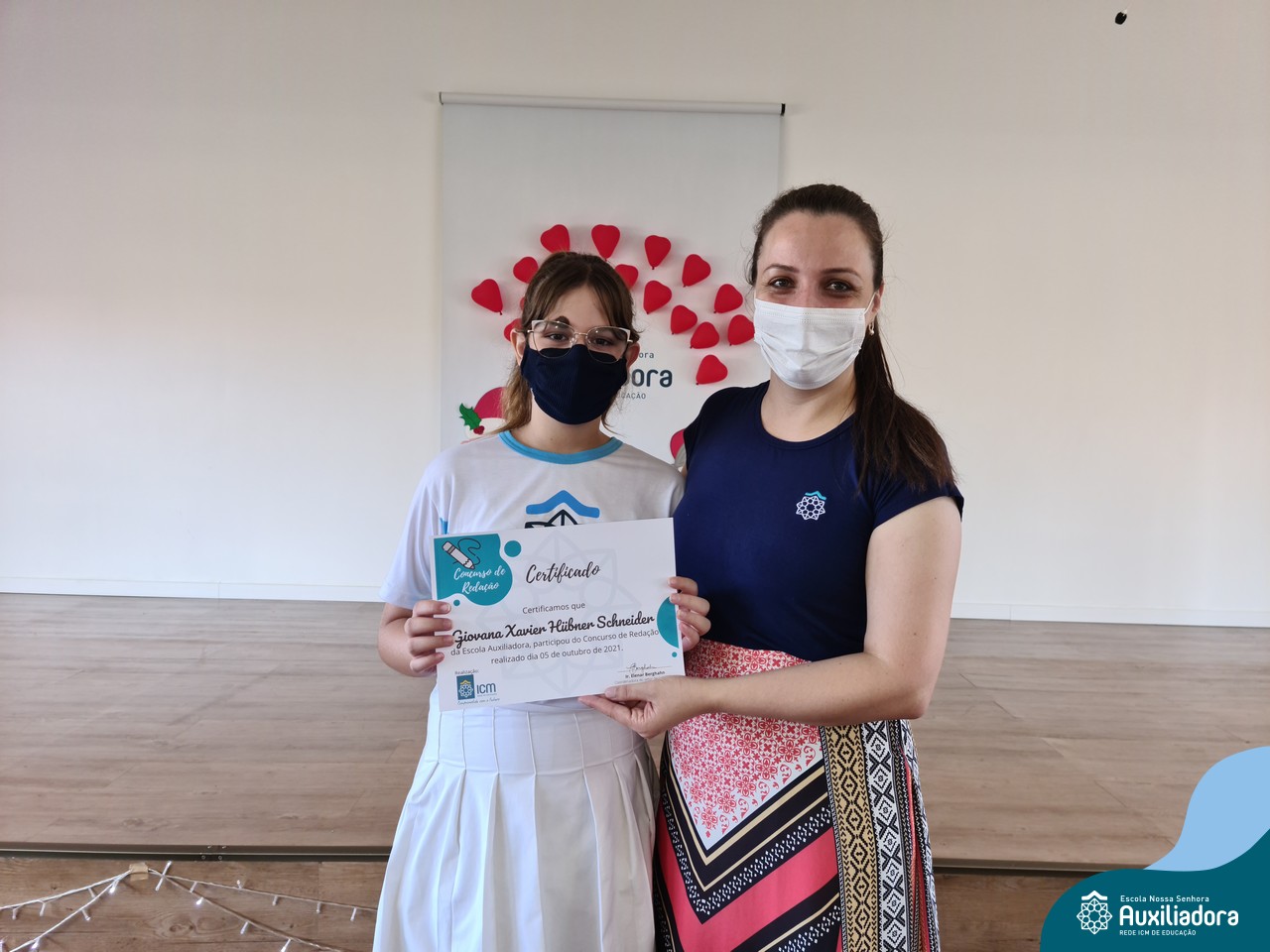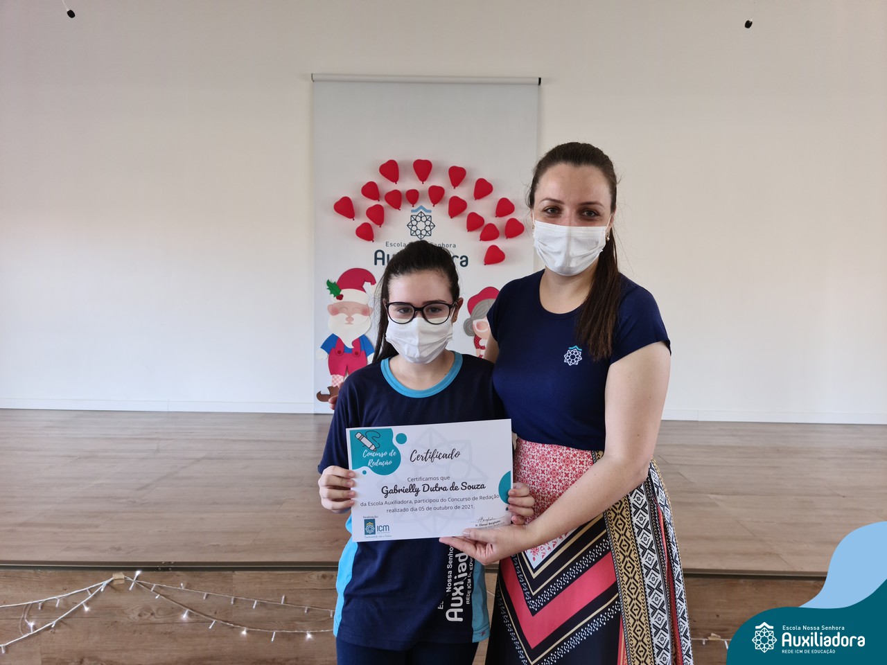 Nas turmas de 5º ano da Escola Nossa Senhora Auxiliadora, a aluna Lívia Maria Piaia recebeu medalha de destaque e a aluna Helena Bueno Navarini, recebeu nota mil dos professores avaliadores.