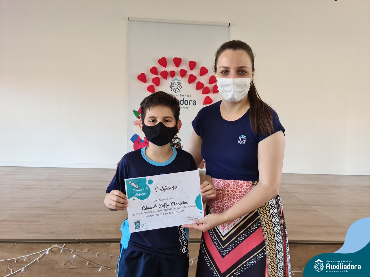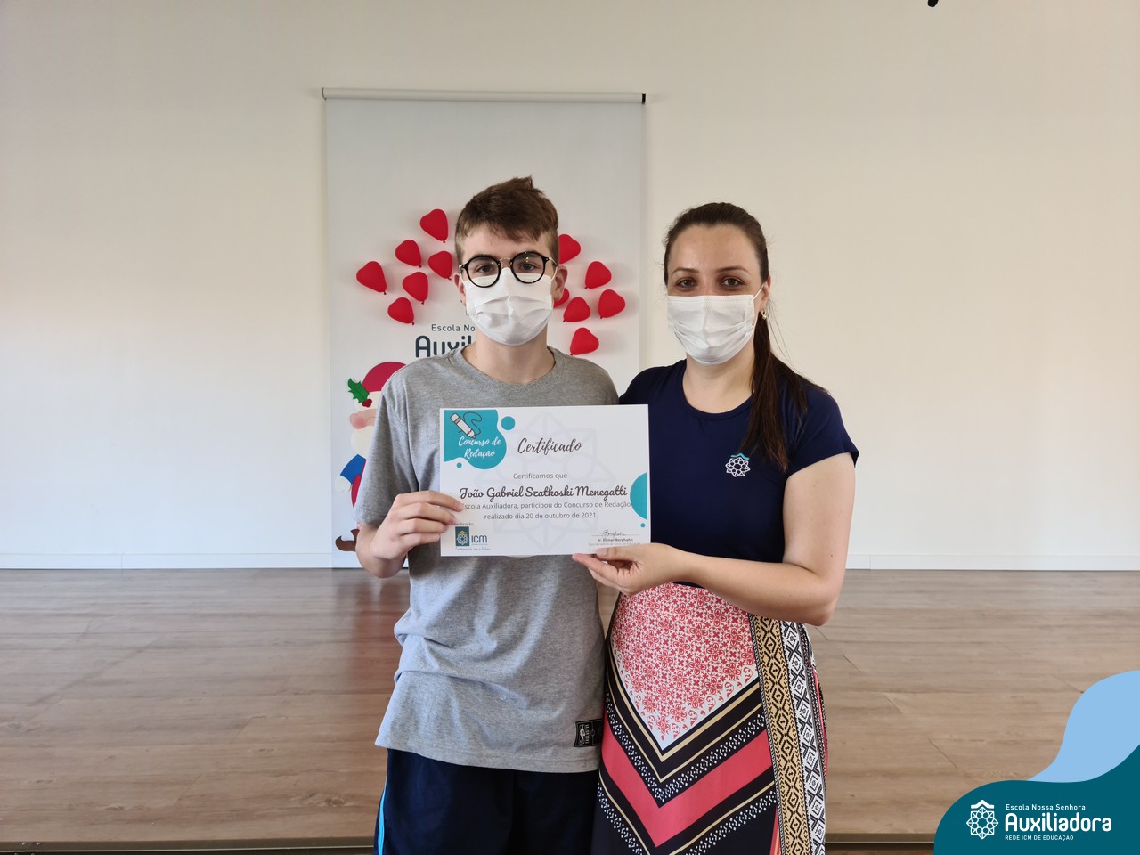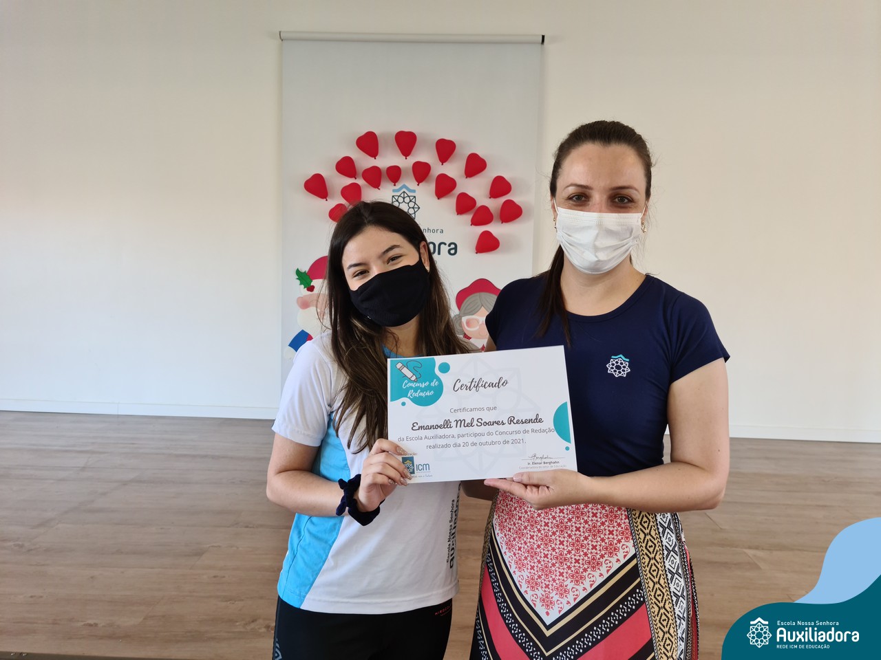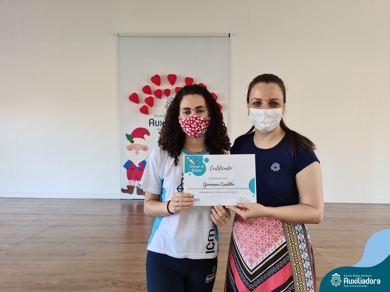 Nas turmas de 5º ano da Escola Nossa Senhora Auxiliadora, a aluna Lívia Maria Piaia recebeu medalha de destaque e a aluna Helena Bueno Navarini, recebeu nota mil dos professores avaliadores.