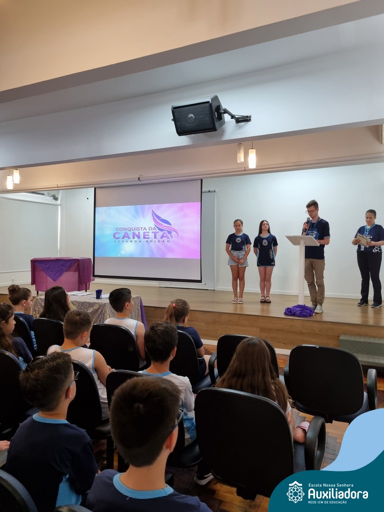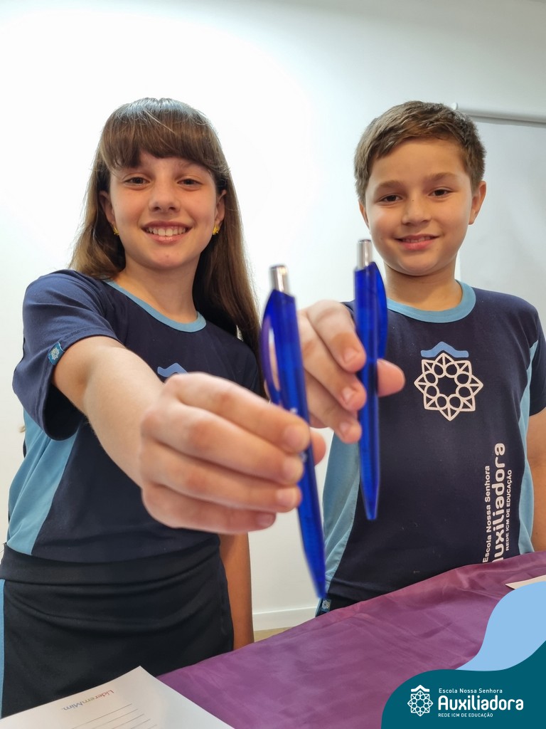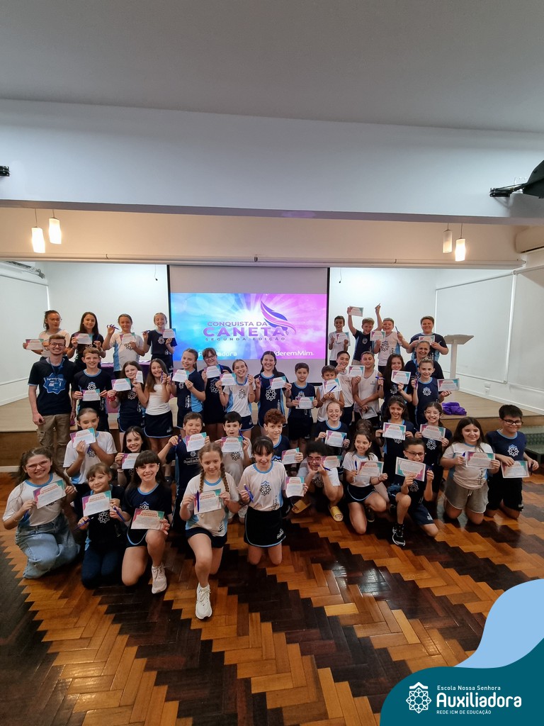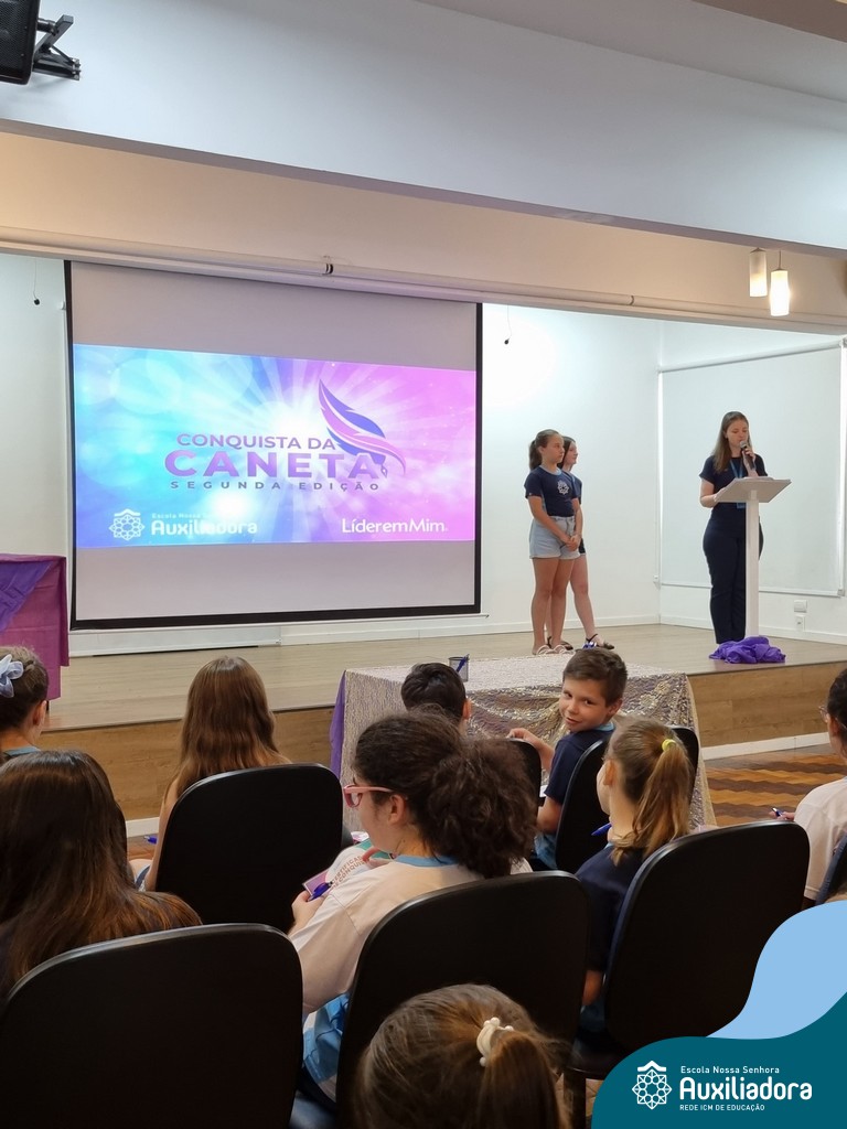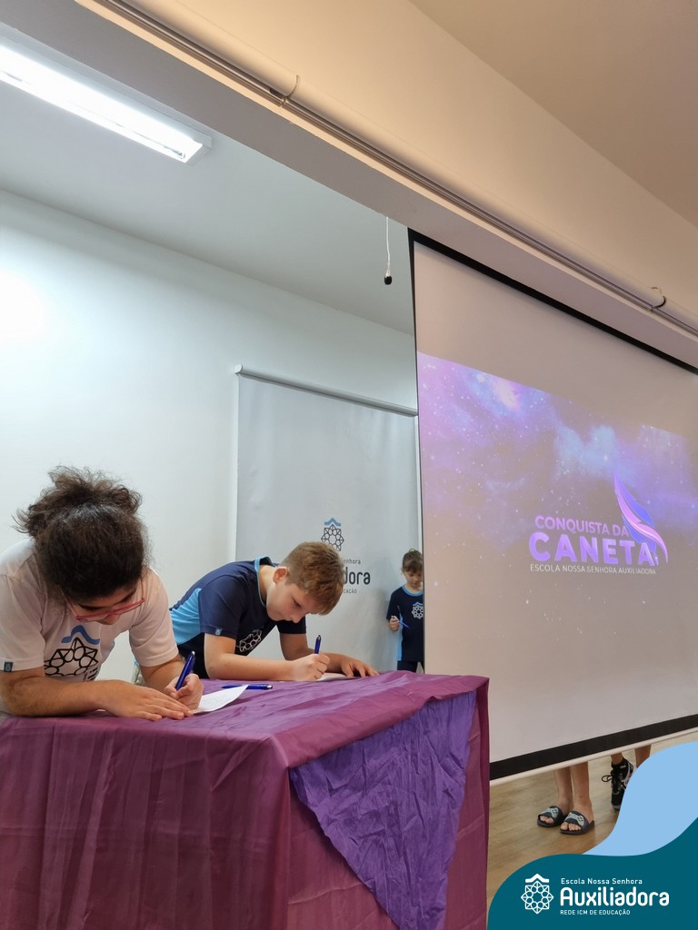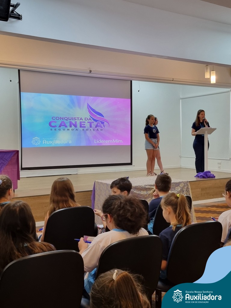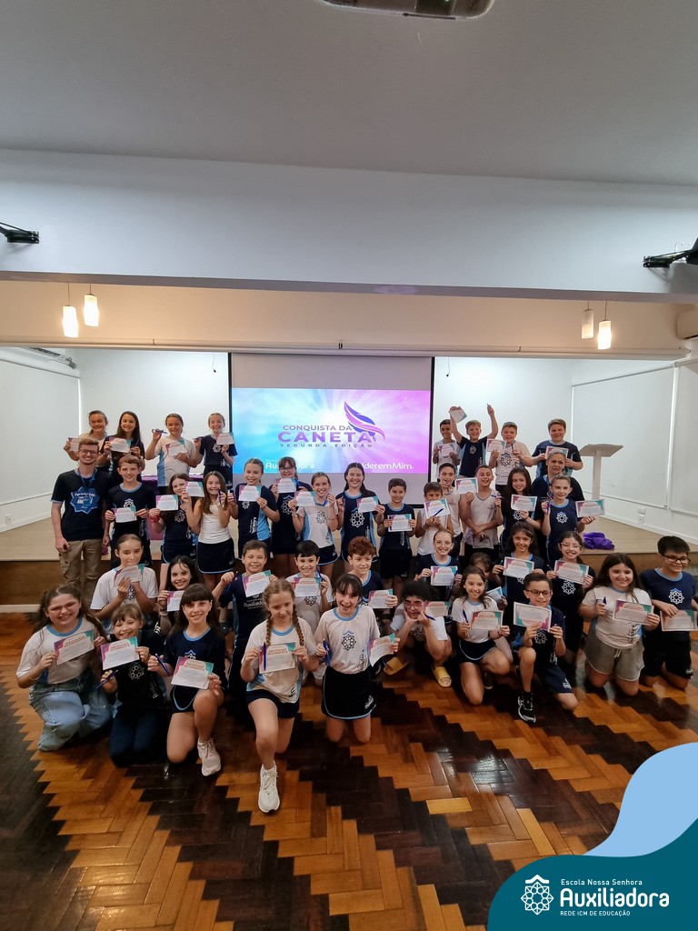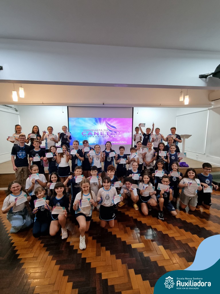 Na segunda-feira, 18 de novembro, o auditório da Escola Nossa Senhora Auxiliadora foi palco de um momento especial: a segunda edição da Solenidade de Conquista da Caneta. Neste evento marcante, os alunos do 4º ano celebraram a transição do lápis para a caneta, simbolizando mais um passo em sua jornada de aprendizado. Com palavras inspiradoras dos professores, a entrega das canetas e a assinatura simbólica, o momento foi gravado na memória de todos os presentes. Parabéns aos alunos por essa importante conquista!