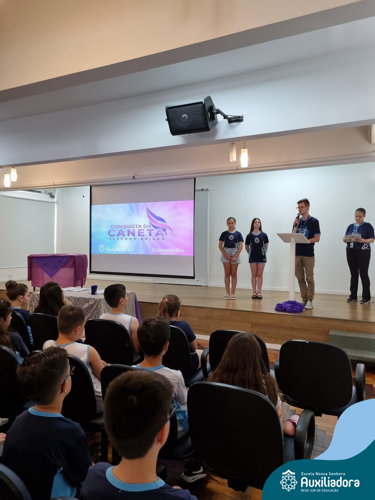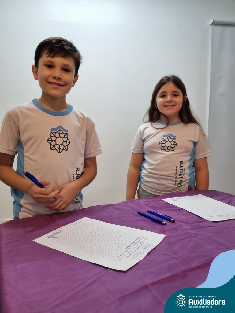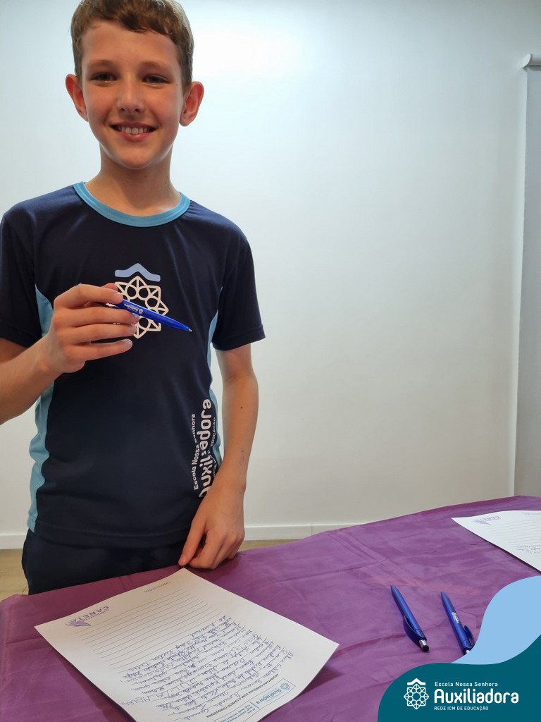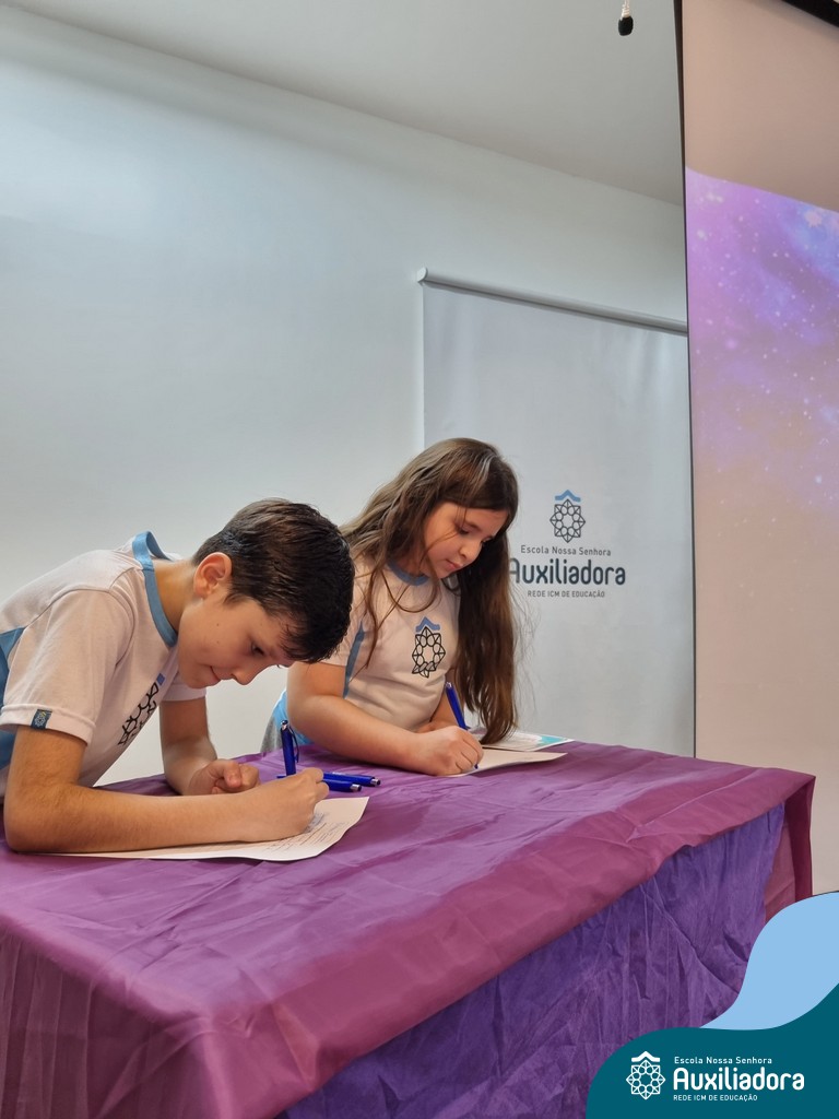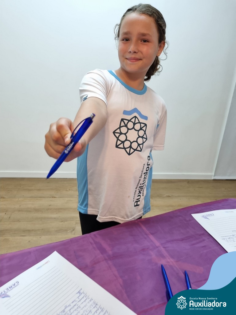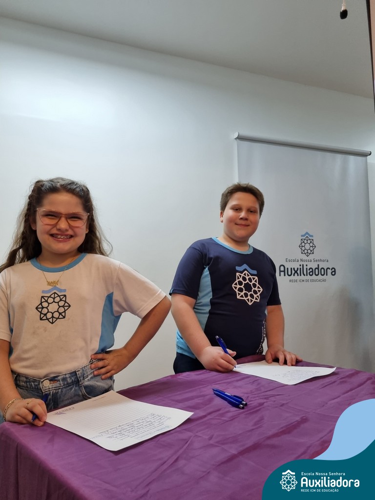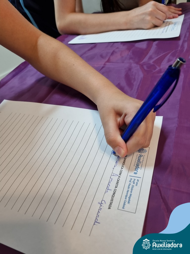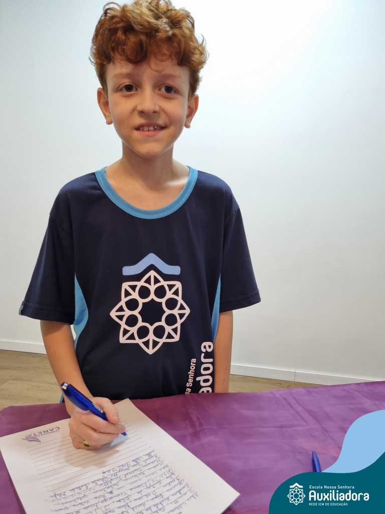 Na segunda-feira, 18 de novembro, o auditório da Escola Nossa Senhora Auxiliadora foi palco de um momento especial: a segunda edição da Solenidade de Conquista da Caneta. Neste evento marcante, os alunos do 4º ano celebraram a transição do lápis para a caneta, simbolizando mais um passo em sua jornada de aprendizado. Com palavras inspiradoras dos professores, a entrega das canetas e a assinatura simbólica, o momento foi gravado na memória de todos os presentes. Parabéns aos alunos por essa importante conquista!