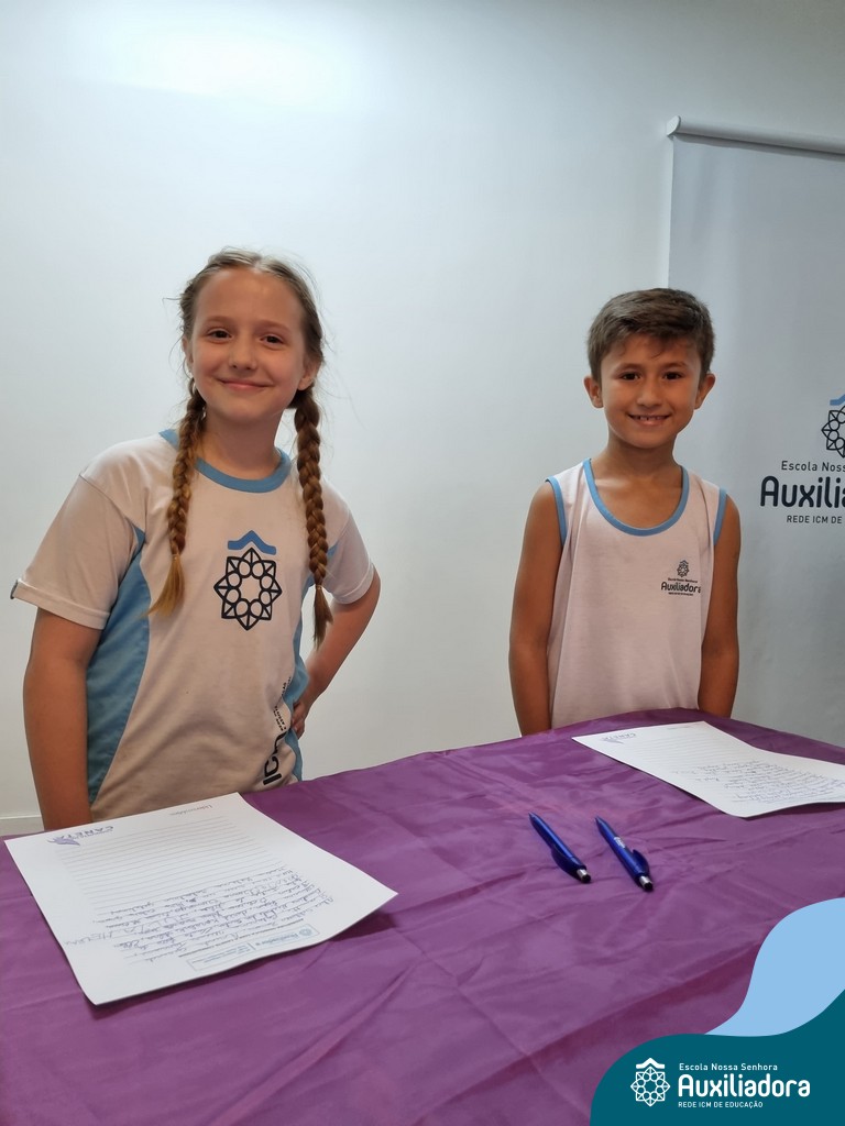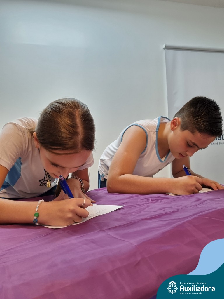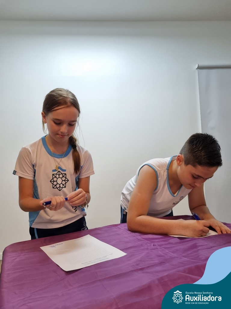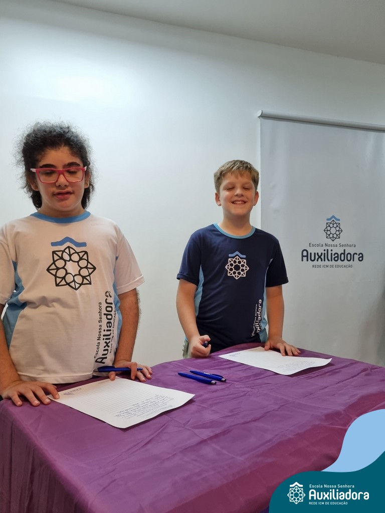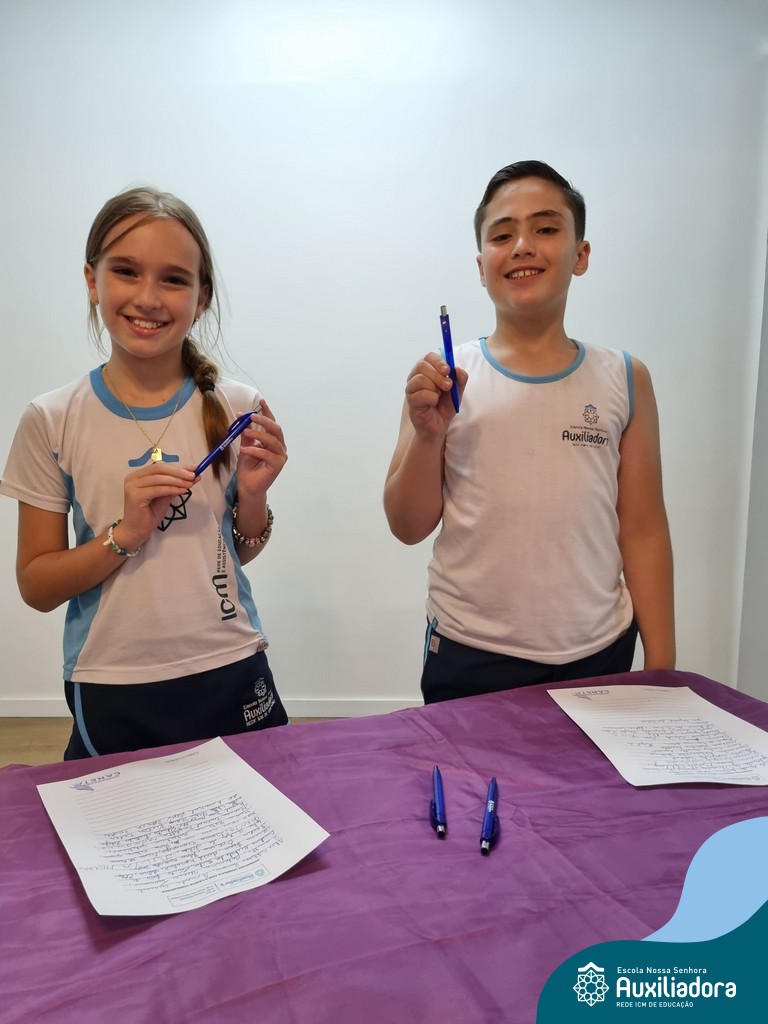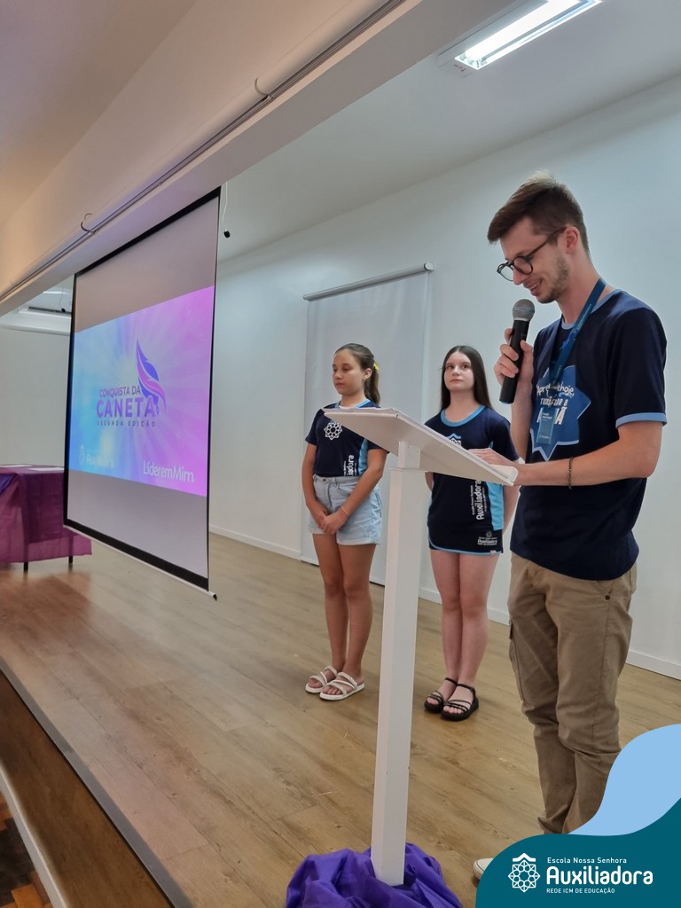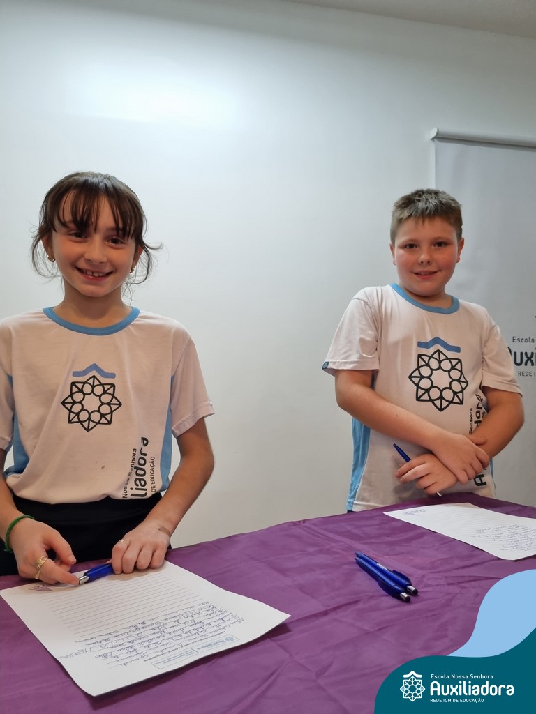 Na segunda-feira, 18 de novembro, o auditório da Escola Nossa Senhora Auxiliadora foi palco de um momento especial: a segunda edição da Solenidade de Conquista da Caneta. Neste evento marcante, os alunos do 4º ano celebraram a transição do lápis para a caneta, simbolizando mais um passo em sua jornada de aprendizado. Com palavras inspiradoras dos professores, a entrega das canetas e a assinatura simbólica, o momento foi gravado na memória de todos os presentes. Parabéns aos alunos por essa importante conquista!