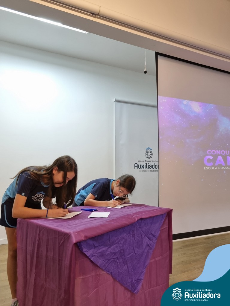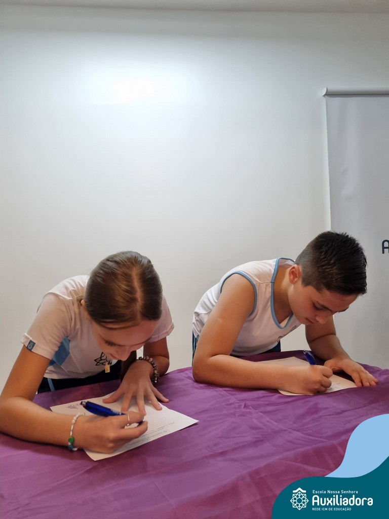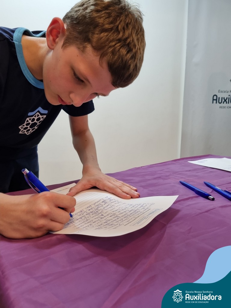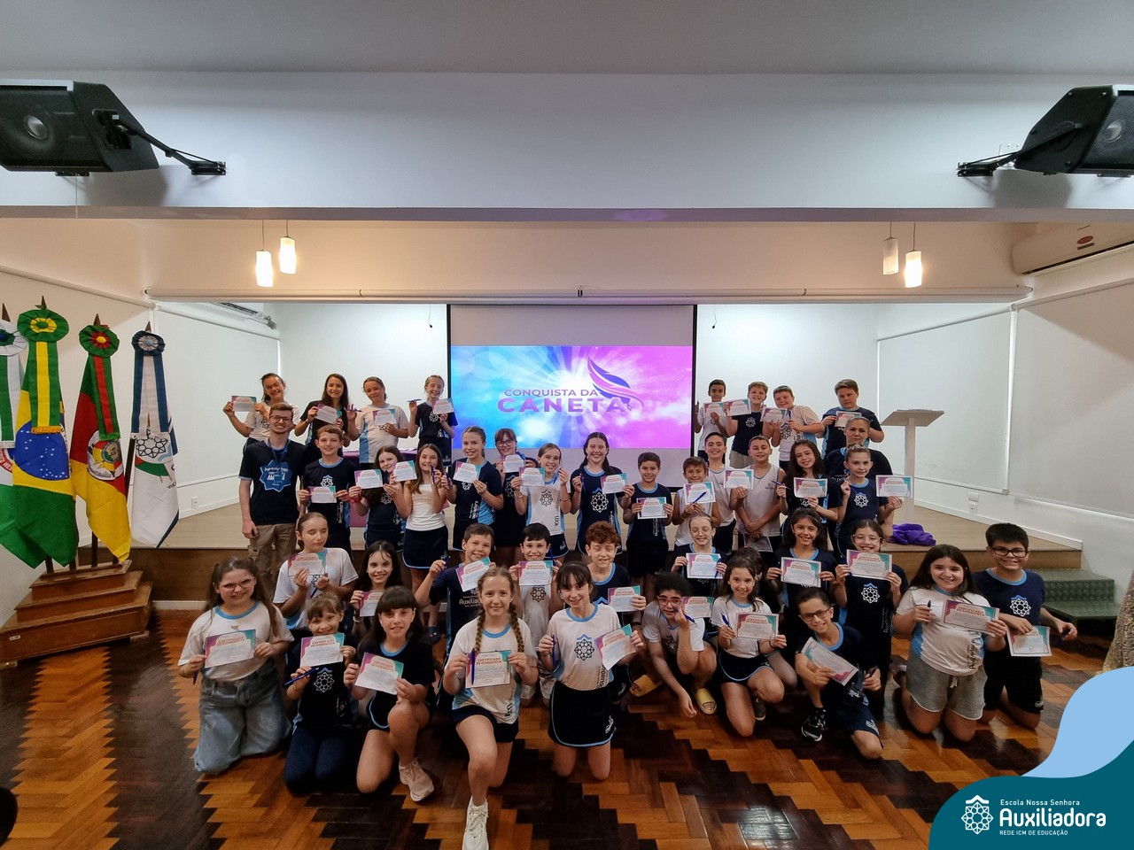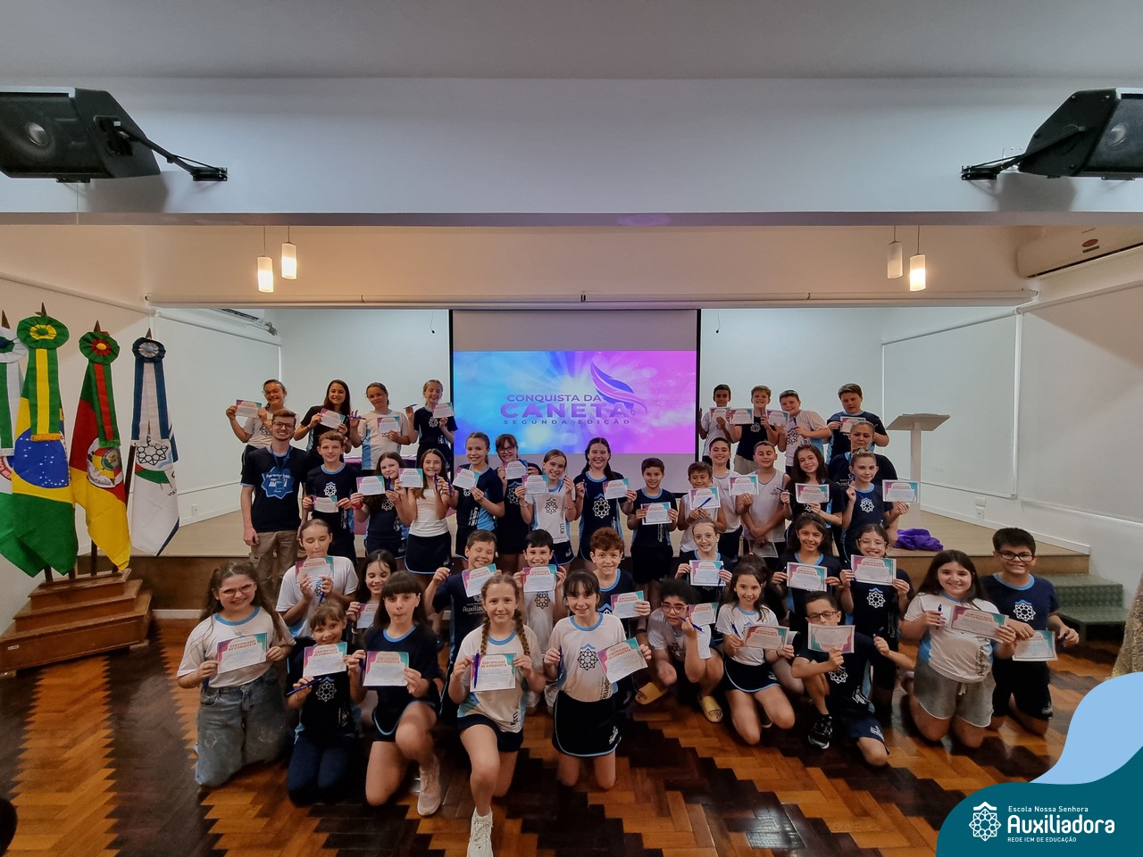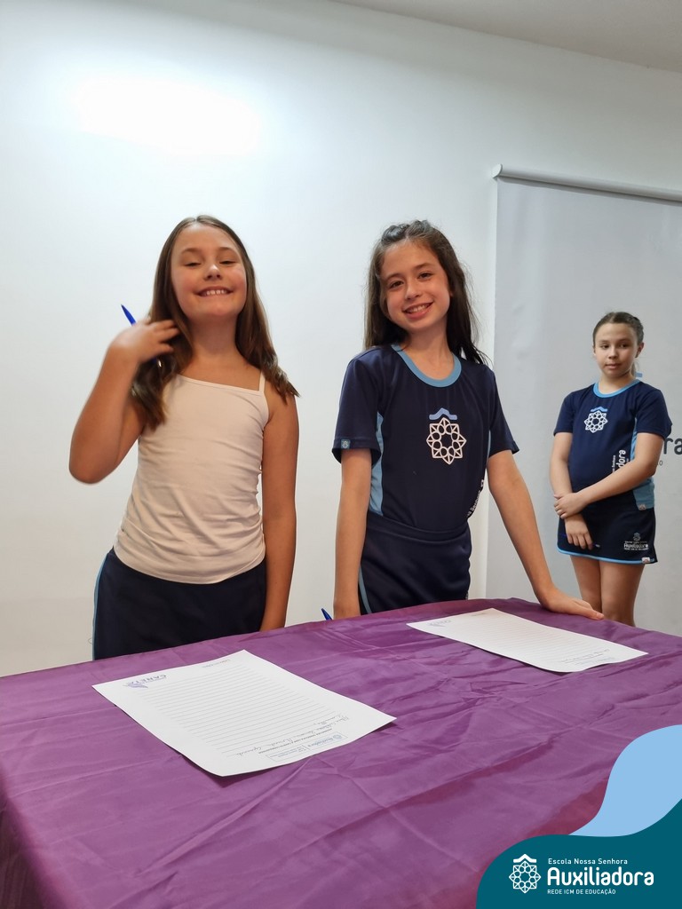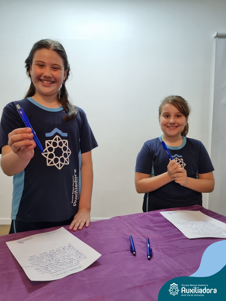 Na segunda-feira, 18 de novembro, o auditório da Escola Nossa Senhora Auxiliadora foi palco de um momento especial: a segunda edição da Solenidade de Conquista da Caneta. Neste evento marcante, os alunos do 4º ano celebraram a transição do lápis para a caneta, simbolizando mais um passo em sua jornada de aprendizado. Com palavras inspiradoras dos professores, a entrega das canetas e a assinatura simbólica, o momento foi gravado na memória de todos os presentes. Parabéns aos alunos por essa importante conquista!