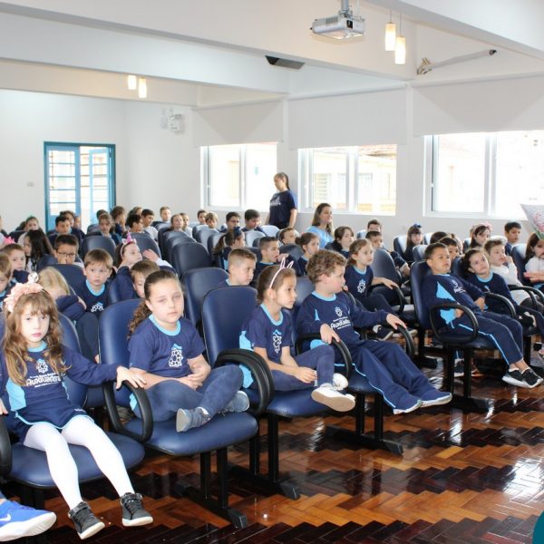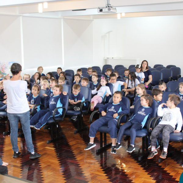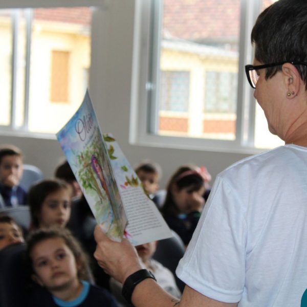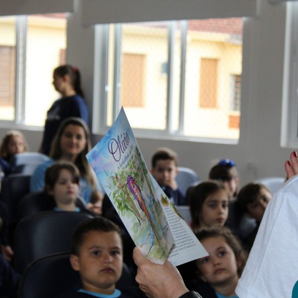 Momento de encantamento e pura magia descrevem a de contação de história realizado pela professora e escritora Angela Maria Paloski.