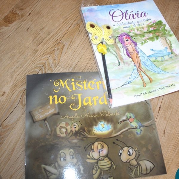 A escritora apresentou obras de sua autoria: Olivia a borboletinha que tinha medo de voar e Mistério no Jardim.