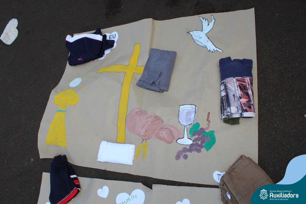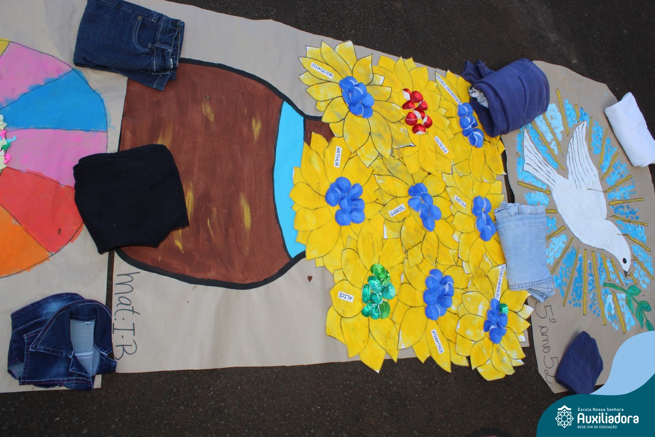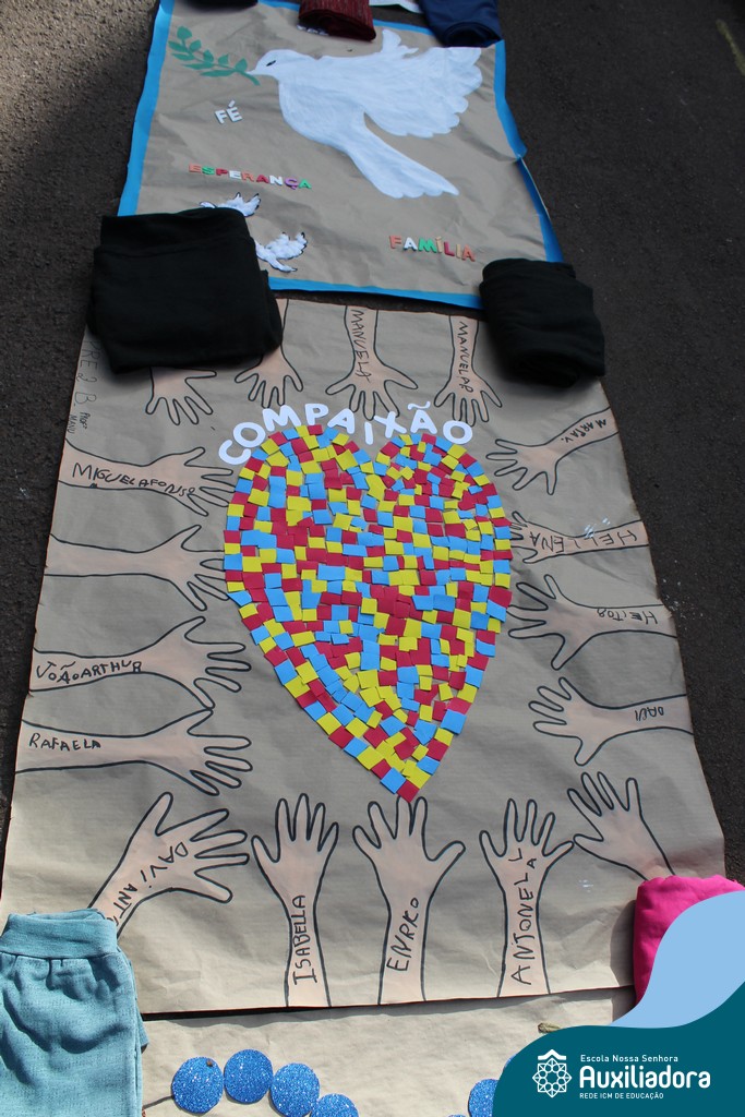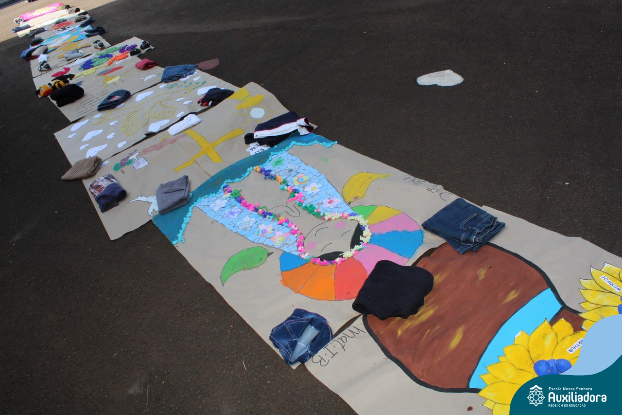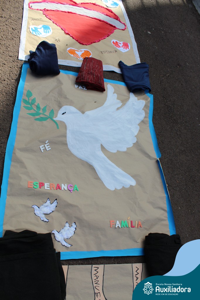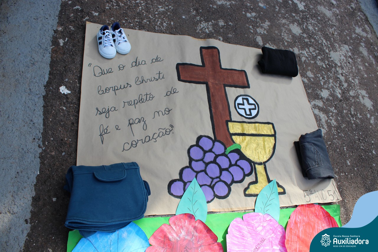 Com muita alegria e fé, os alunos das 25 turmas da Escola Nossa Senhora Auxiliadora, elaboraram os tradicionais tapetes da solidariedade celebrando o Dia de Corpus Christi vivenciando o Espírito de partilha lembrando que “A força da Eucaristia nos transforma em portadores de Deus”.