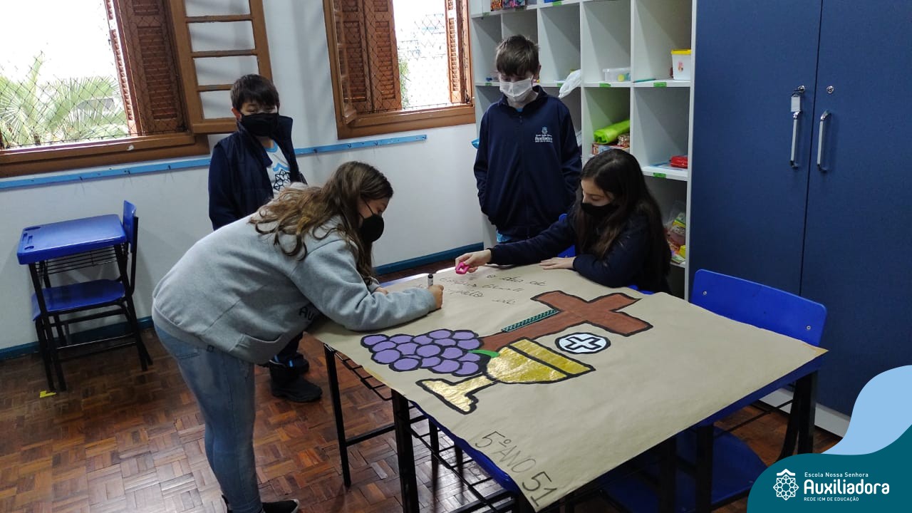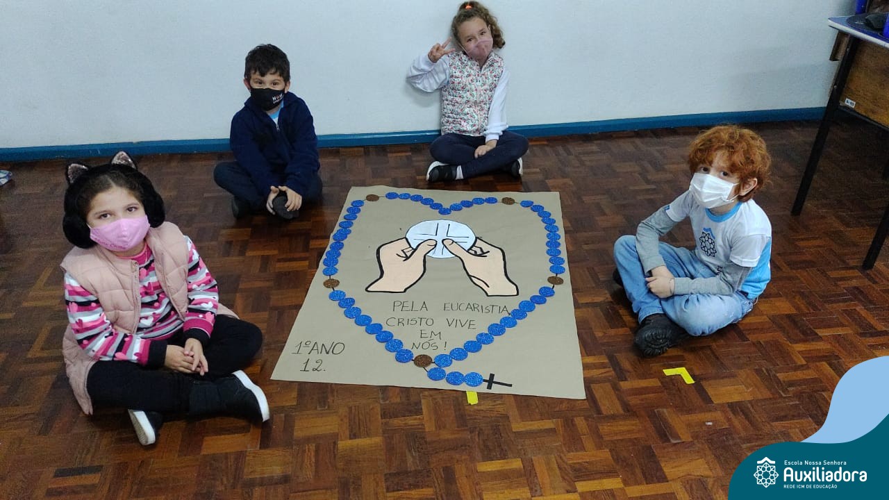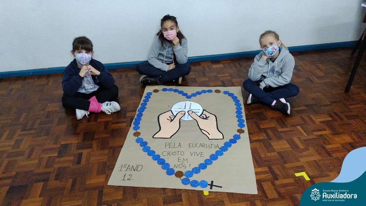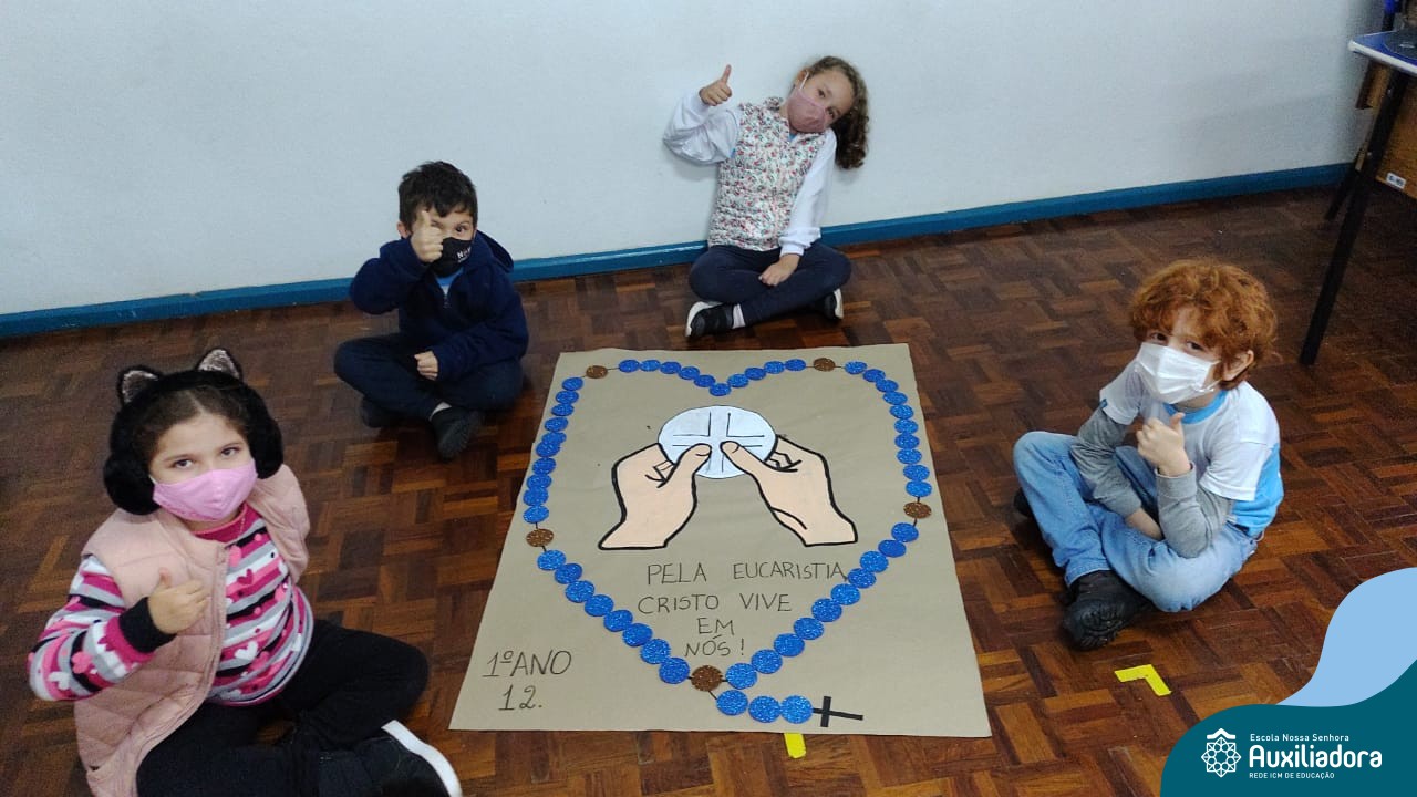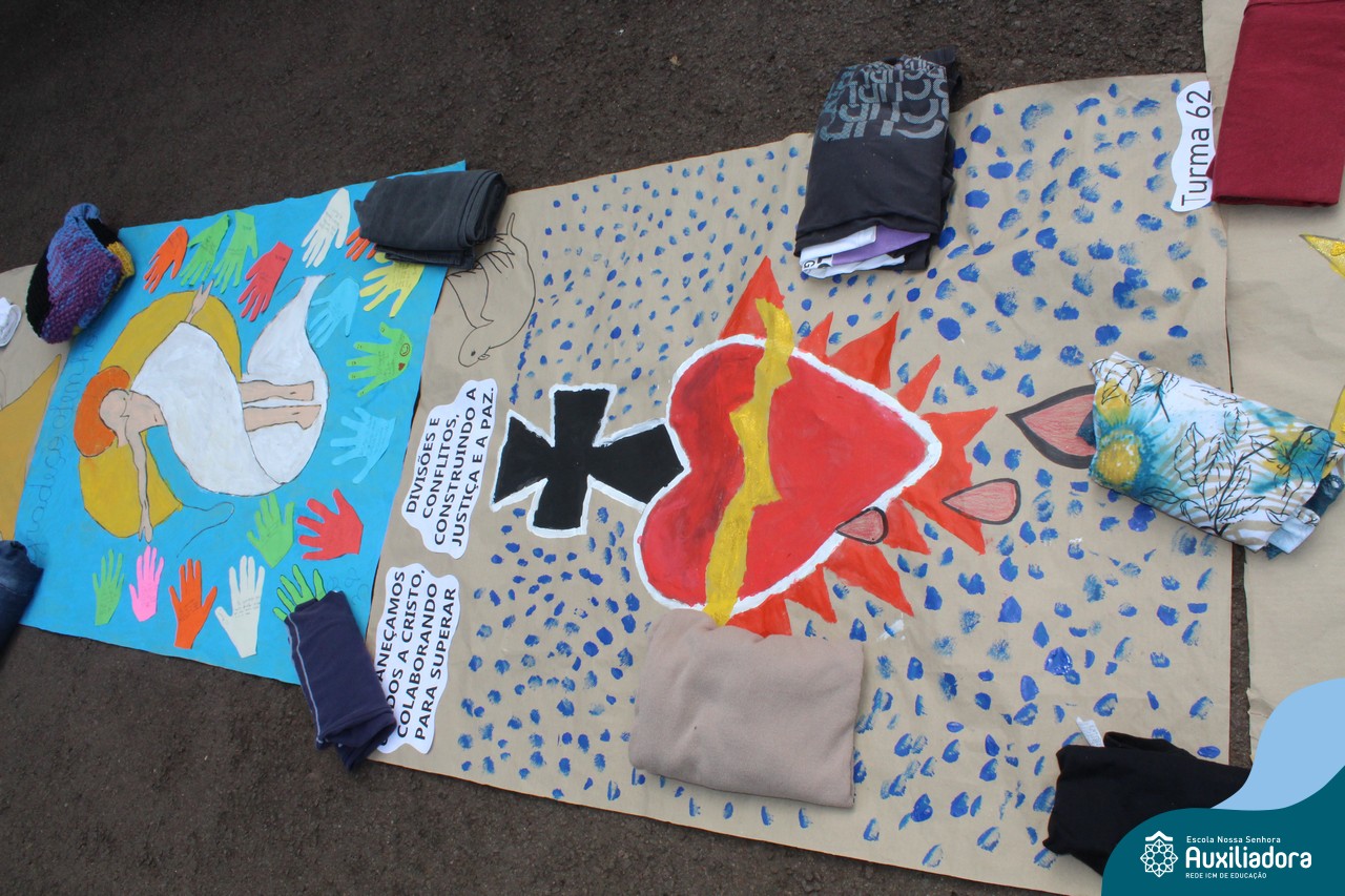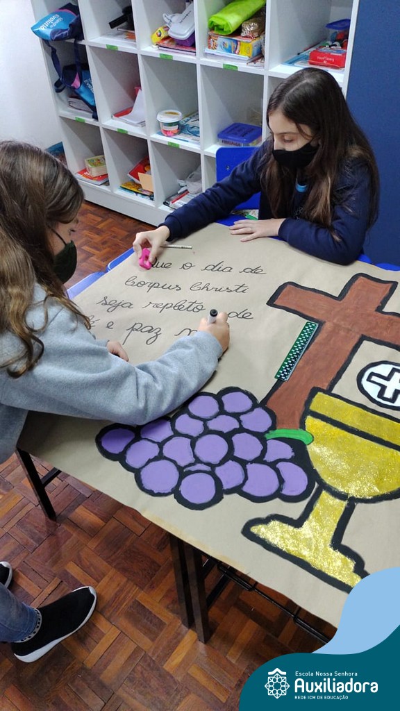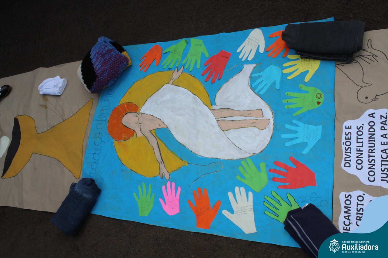 Com muita alegria e fé, os alunos das 25 turmas da Escola Nossa Senhora Auxiliadora, elaboraram os tradicionais tapetes da solidariedade celebrando o Dia de Corpus Christi vivenciando o Espírito de partilha lembrando que “A força da Eucaristia nos transforma em portadores de Deus”.