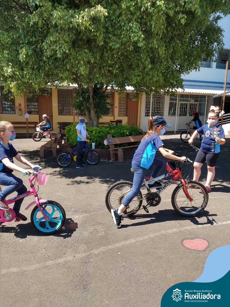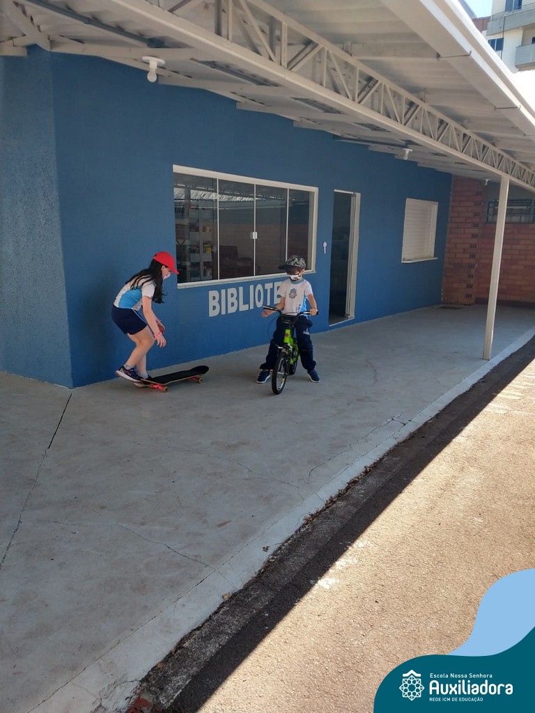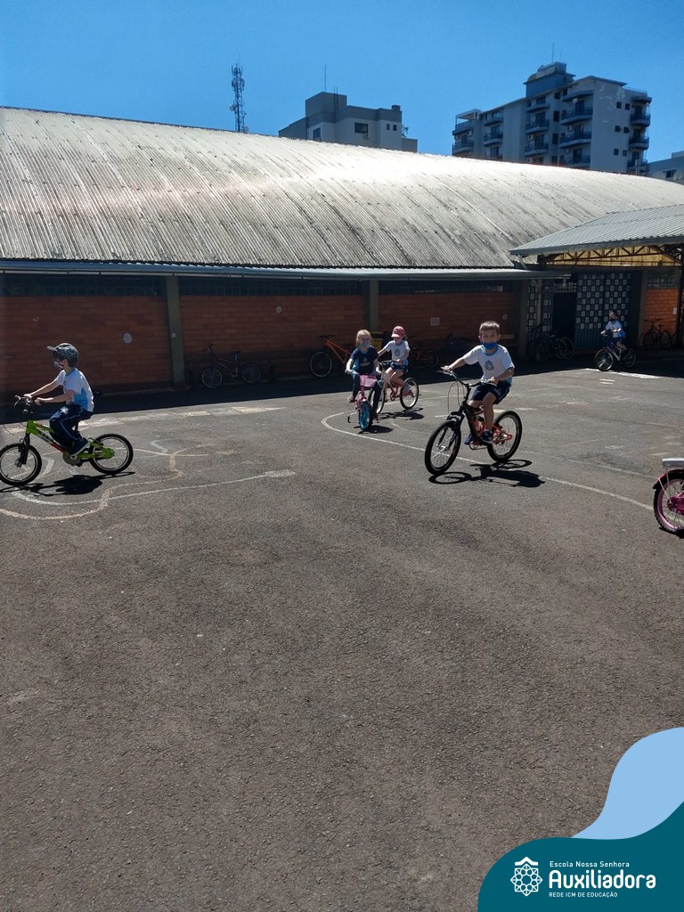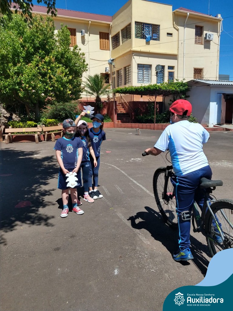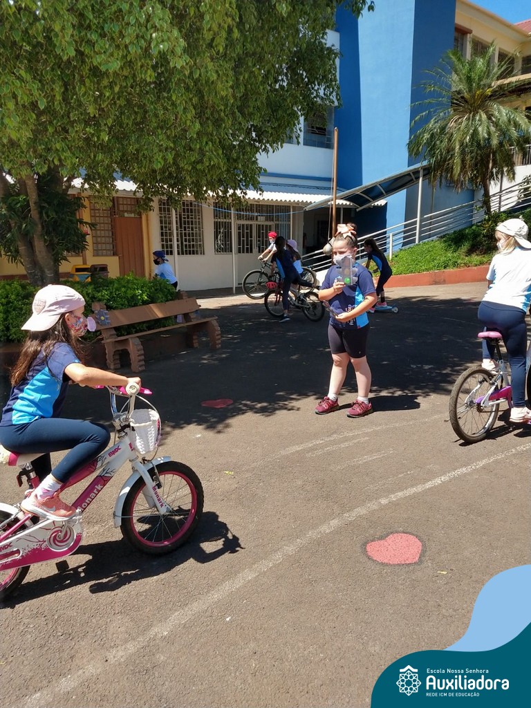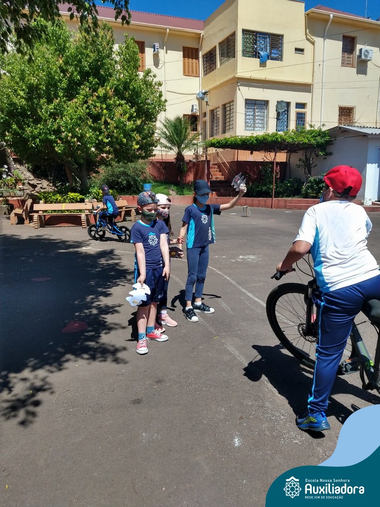 Finalizando os conhecimentos sobre a educação e o respeito no trânsito e o estudo dos meios de transporte, as turmas do 2° ano vivenciaram uma experiência em que puderam ser motoristas e pedestres, observando e respeitando as placas de trânsito, além de explorar o equilíbrio e motricidade ampla.