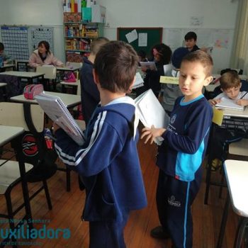 A turma do 2° ano 22 se divertiu e aprendeu realizando um ditado interativo. 😊 😊Procuraram os nomes de diversas árvores frutíferas, que estavam coladas nas costas dos amigos, preenchendo nos números respectivos. 👩🏫 Profe Susi.